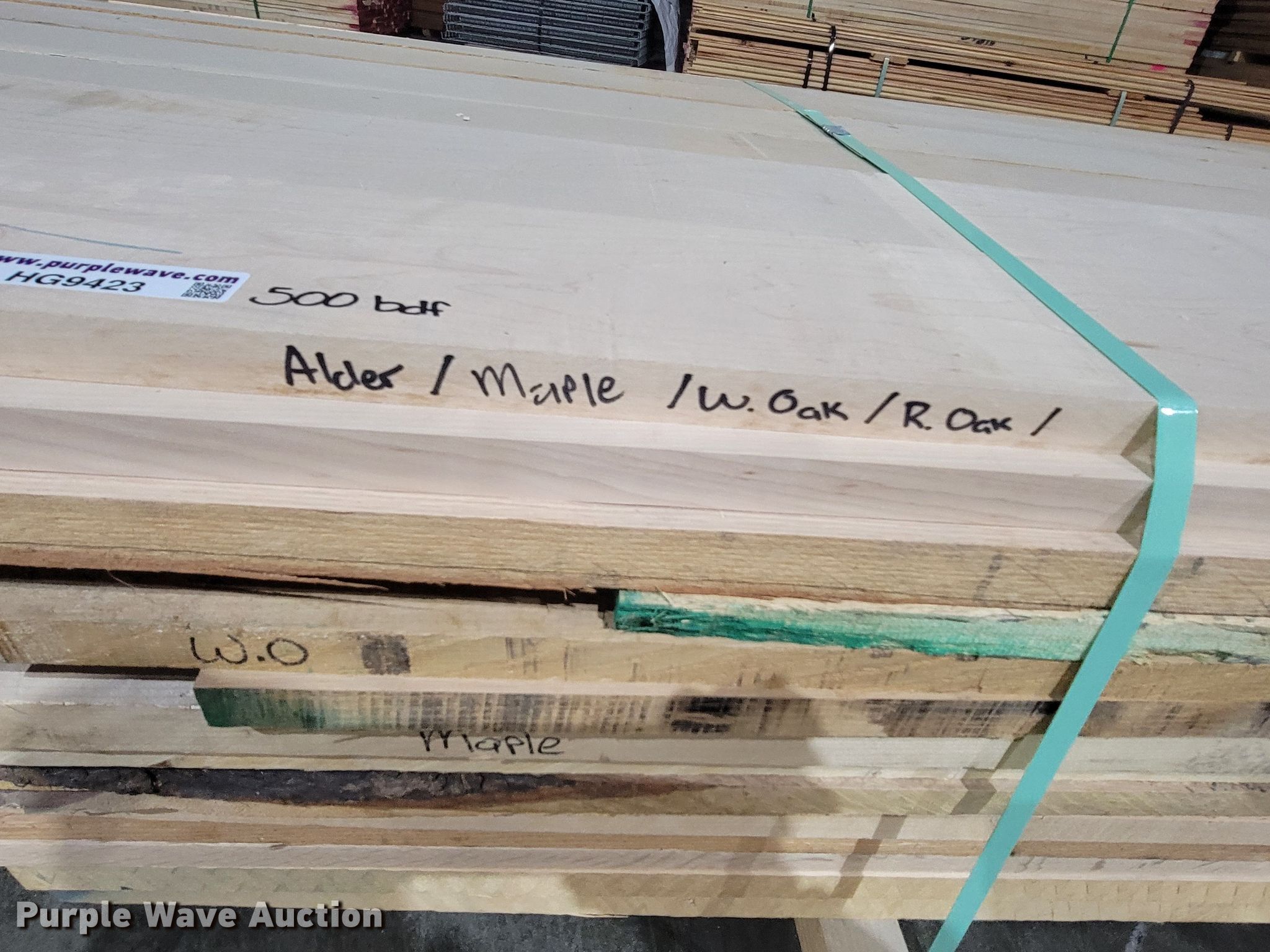 Purple Wave is selling a used Building Materials in Kansas. This item is a Approximately 500' of lumber with the following: Alder, Maple, Red oak, White oak