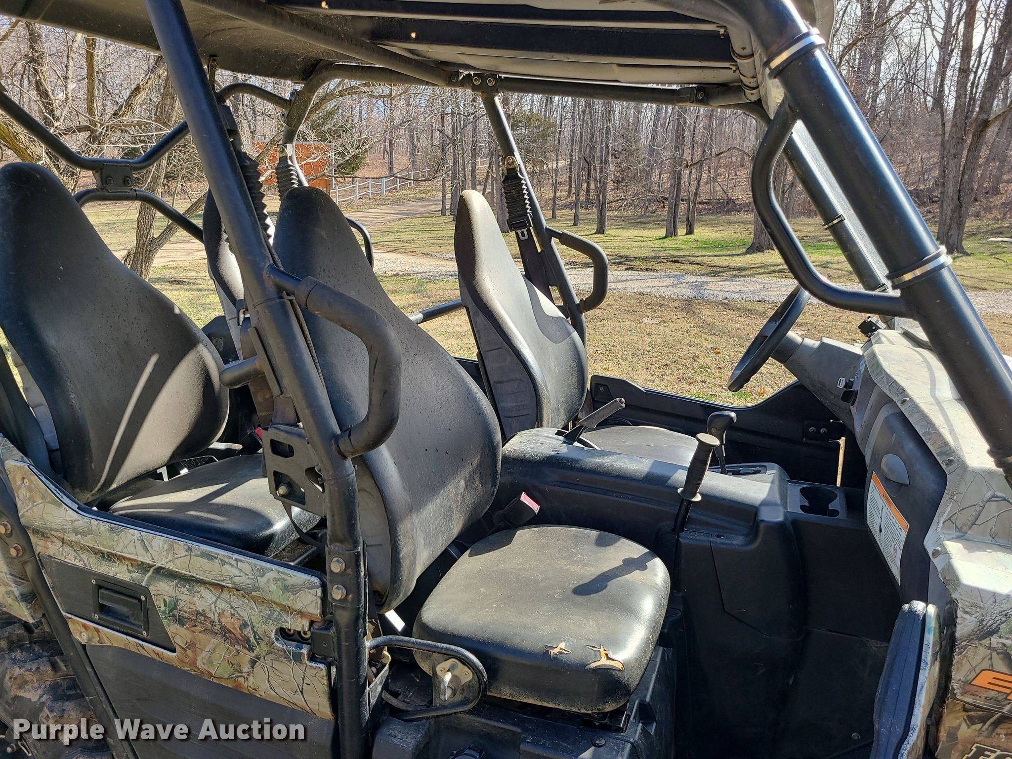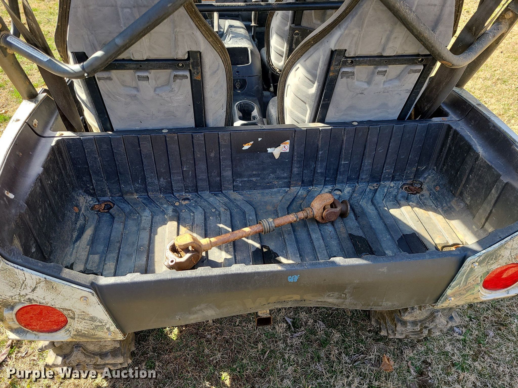 2014 Kawasaki Teryx4 utility vehicle. Miles: 5,009 on odometer, Hours: 887 on meter, VIN: JKBRTCD15EB500241. Engine Displacement: 783 cc, Cylinders: 2, Fuel type: Gas. Transmission CVT. Chassis Four wheel drive. Operators station Canopy, Passengers: 4. Features Winch, Receiver hitch, Box bed 18" L x 48" W. Tires Size: 30x10.00-14. Notes Rear drive shaft removed, binds up while driving. Transfer of ownership documentation will be a bill of sale. Fatty's UTV. Campground Road. Buffalo Township, MO 65037