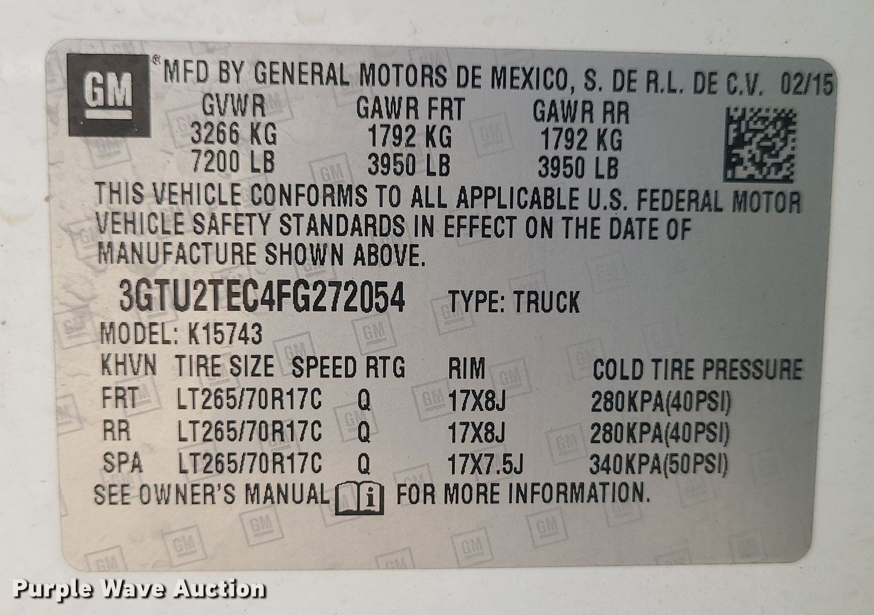 - VIN: 3GTU2TEC4FG272054