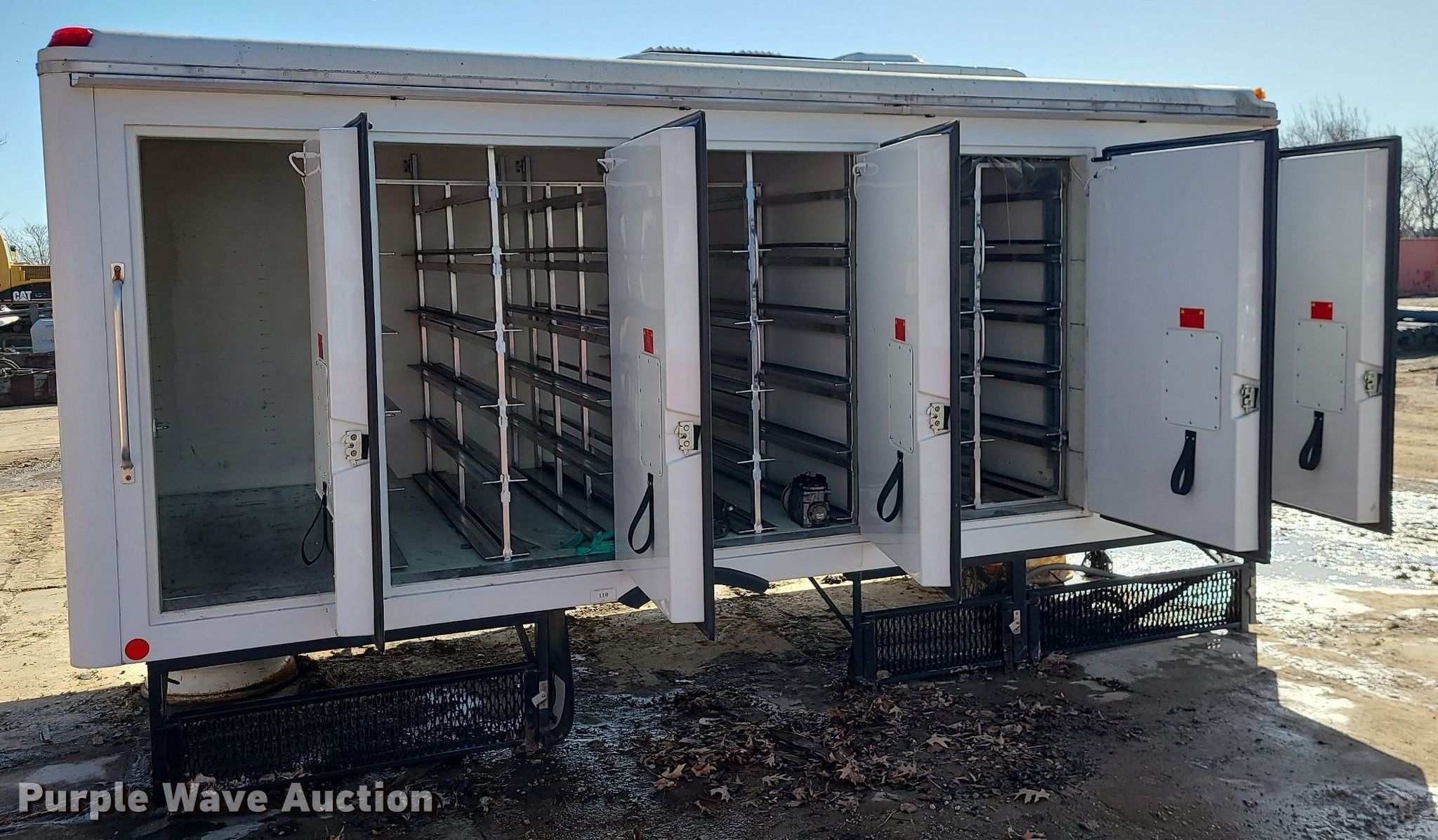 Johnson R-Series referigerated truck body. 16' 6" L x 92" W. Features Thermoking Spectrum V-520RT refrigeration unit, Guardian T-Series AC unit, Truck compressor and cables. Freeman Concrete Construction, LLC. 8357 Monticello Road. Lenexa, KS 66227