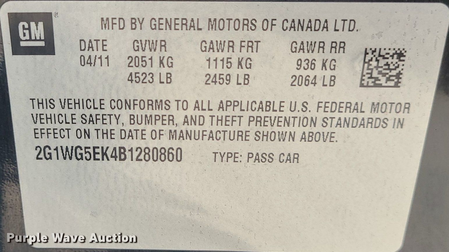 Purple Wave is selling a used Passenger Vehicle in Missouri. This item is a 2011 Chevrolet Impala LT with the following: Miles: 159,802 on odometer, VIN: 2G1WG5EK4B1280860