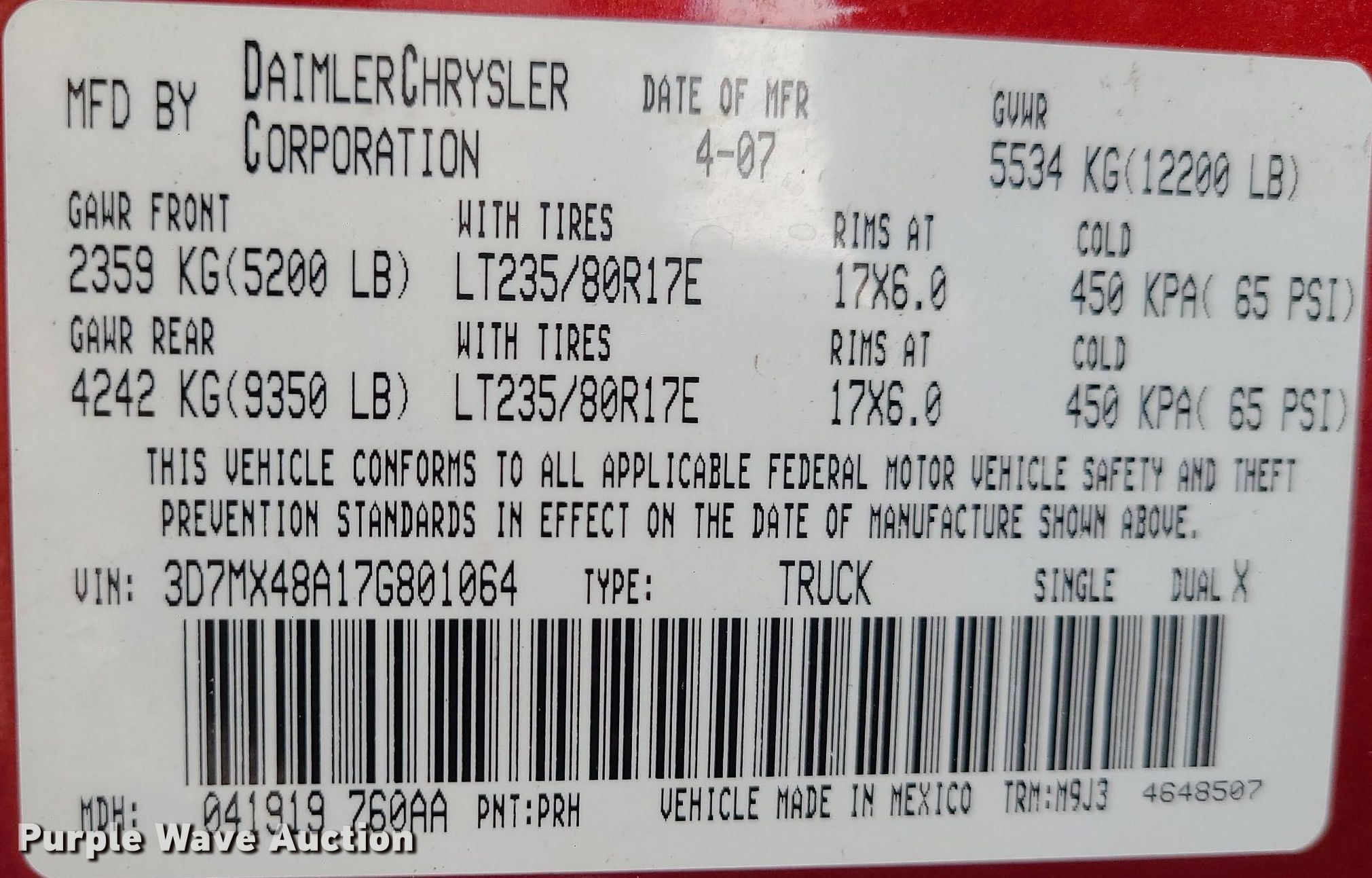 - VIN: 3D7MX48A17G801064