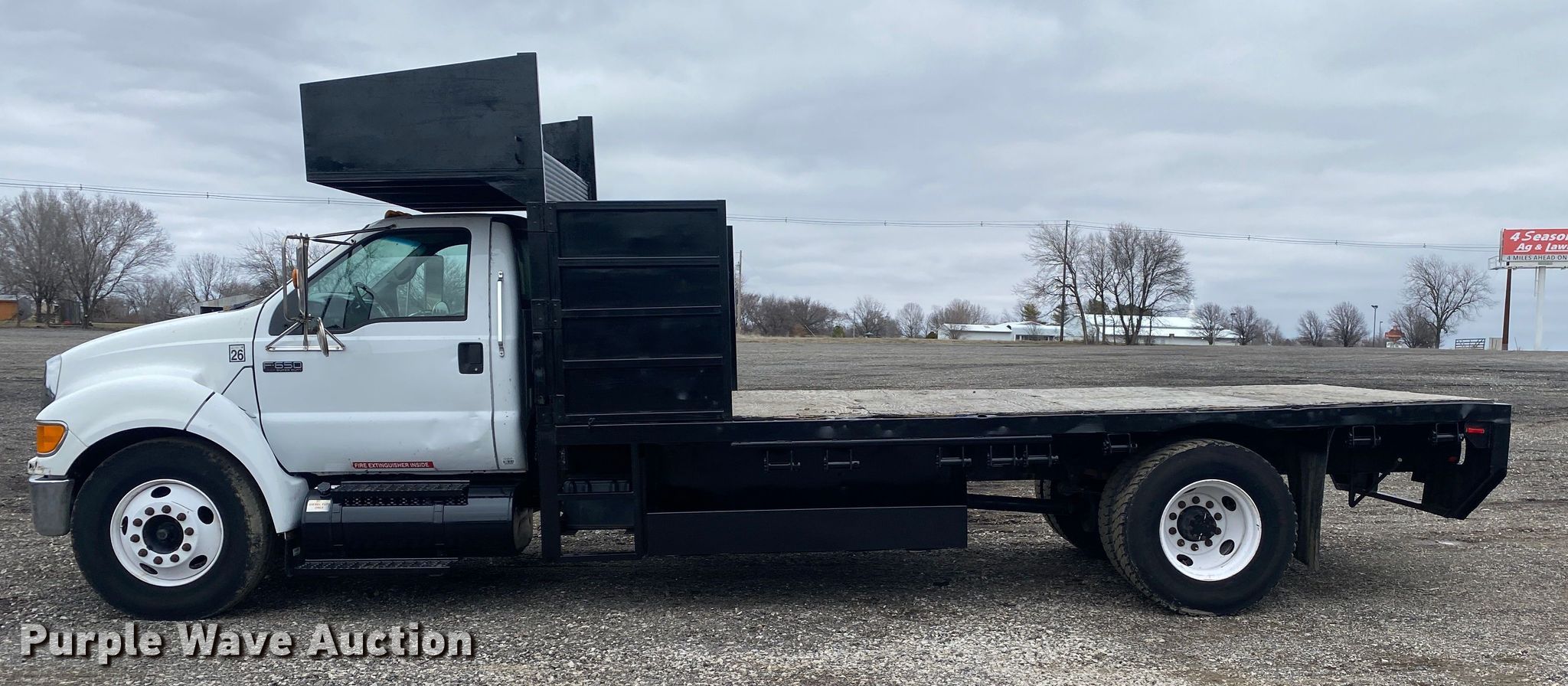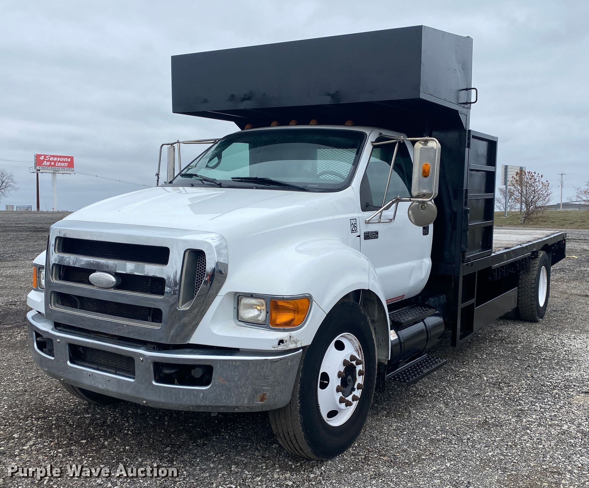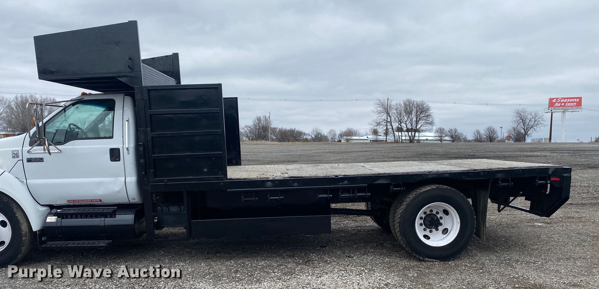 This 2008 Ford F650 Super Duty flatbed truck will sell to the highest bidder regardless of price.