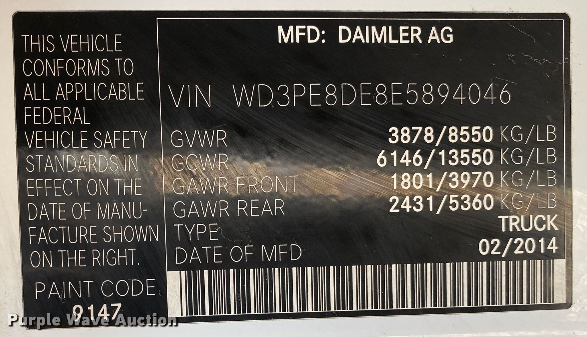 2014 Mercedes Benz Sprinter 2500 van. Miles: 445,677 on odometer, VIN: WD3PE8DE8E5894046. Engine Displacement: 3.0L, Cylinders: 6, Fuel type: Diesel. Transmission Automatic. Interior AC, Heat, Power windows, Backup camera. Tires Size: LT245/75R16. Notes Dash warning indicator: TPMS. Oklahoma title. Title distribution may be delayed up to 14 days from verification of funds. 15107 North 137th East Avenue. Collinsville, OK 74021