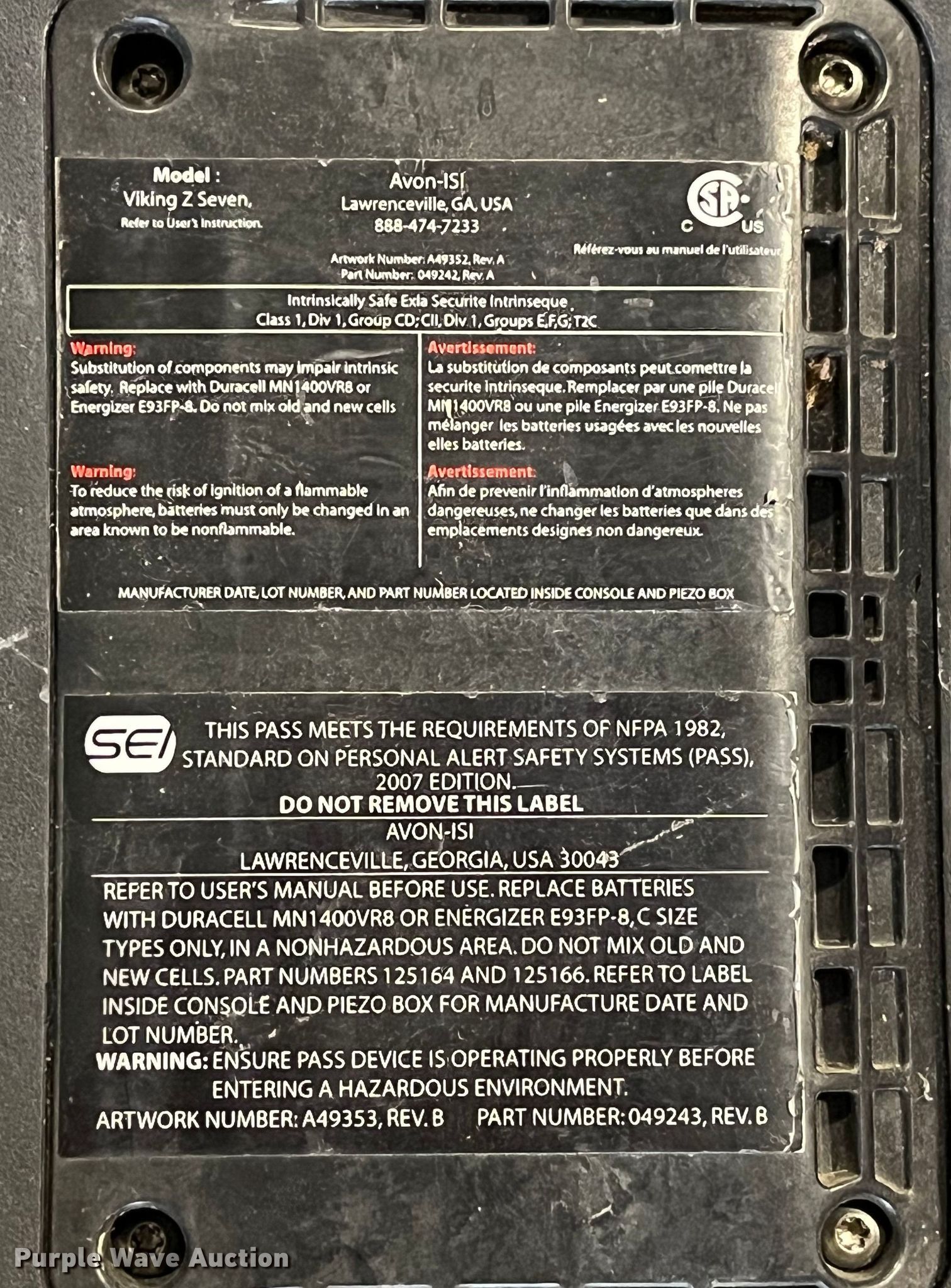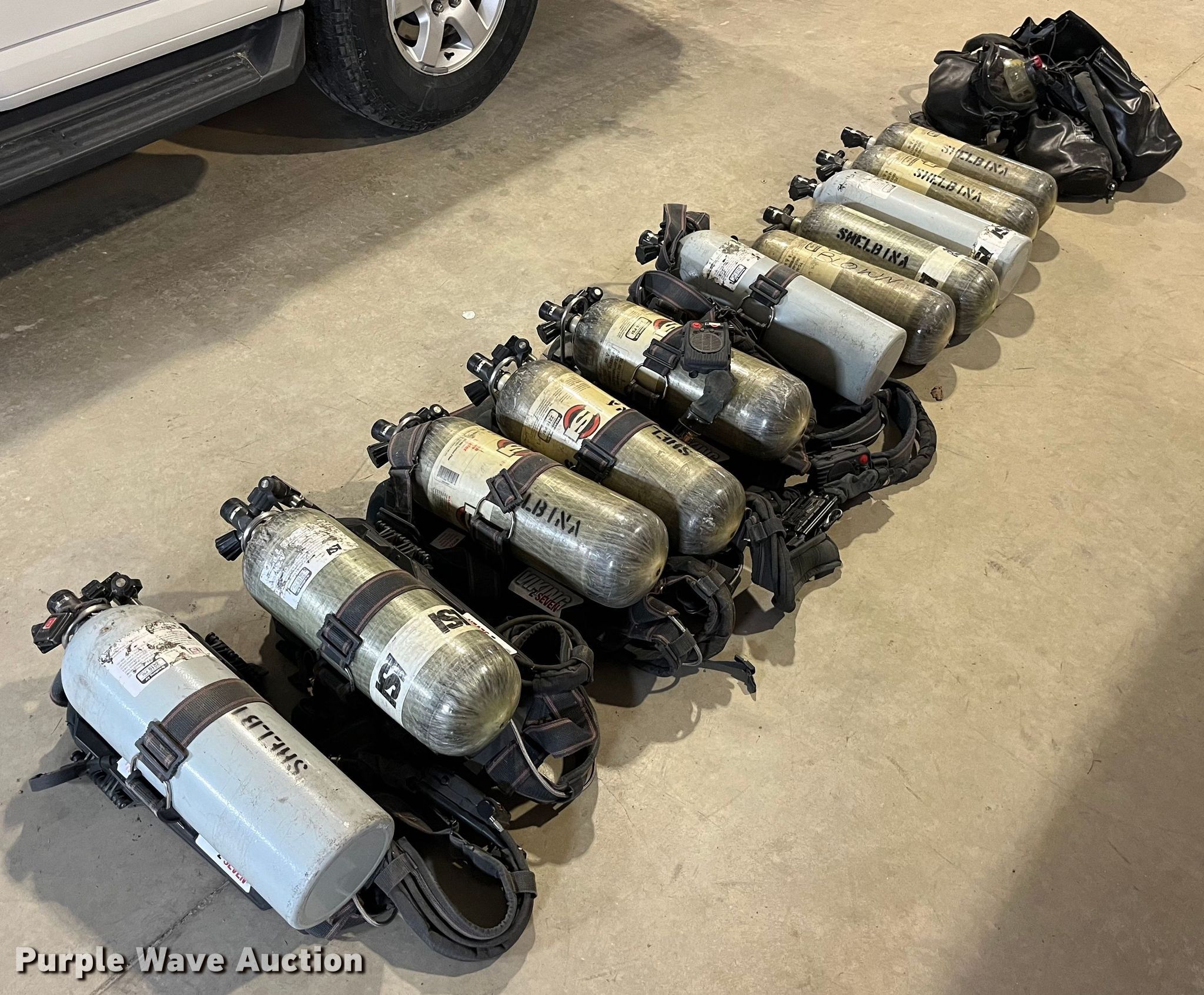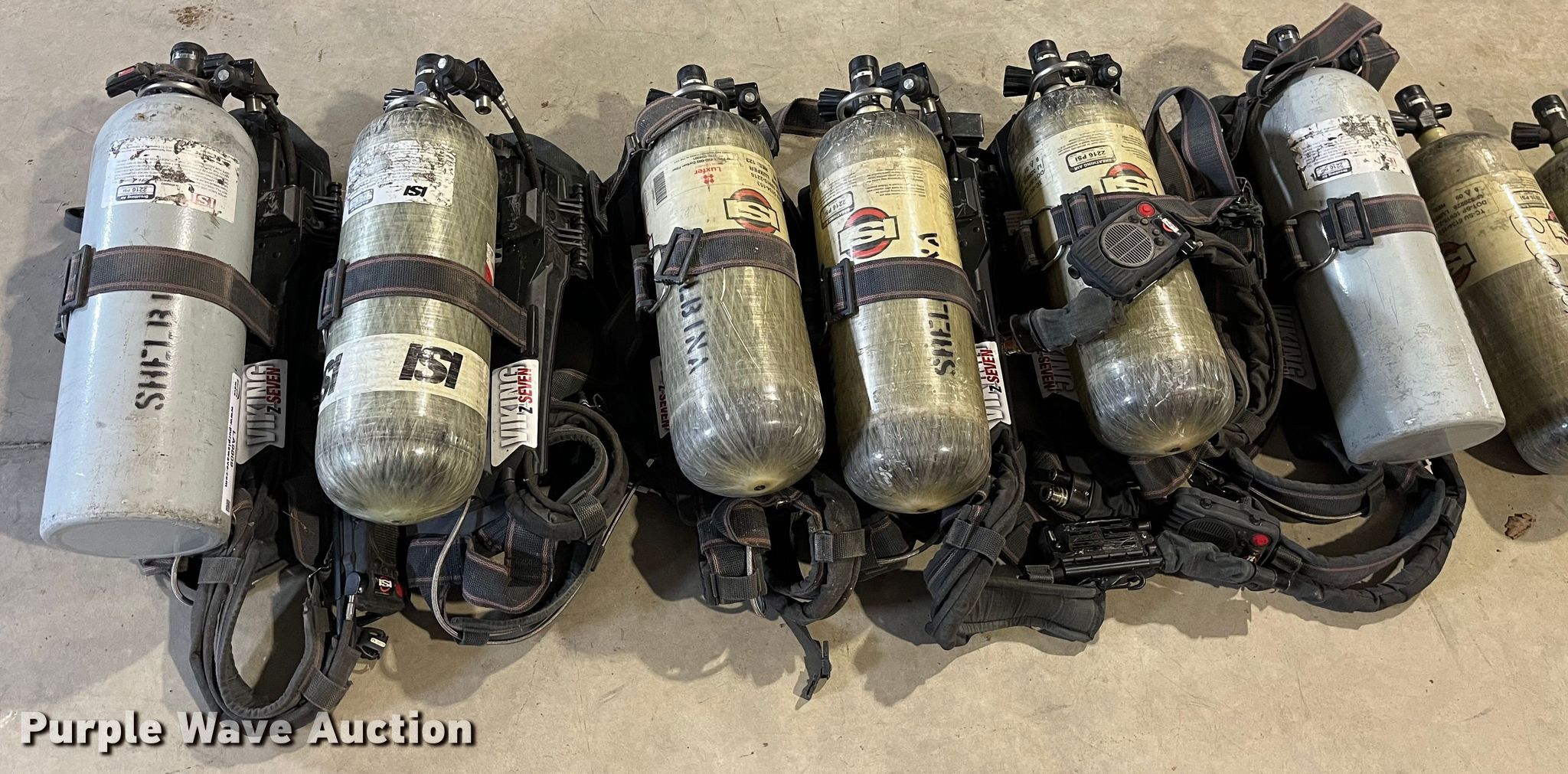 Purple Wave is selling a used Tools in Missouri. This item is a Rescue equipment with the following: Approx. 11 Avon ISI oxygen tanks, Approx. 6 Avon ISI Viking Z respiratory packs, Approx. 7 Avon ISI respirator mask