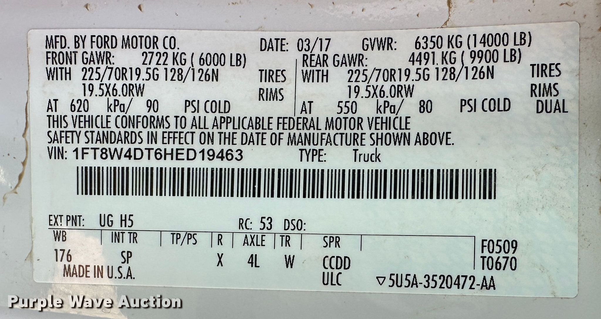 - VIN: 1FT8W4DT6HED19463