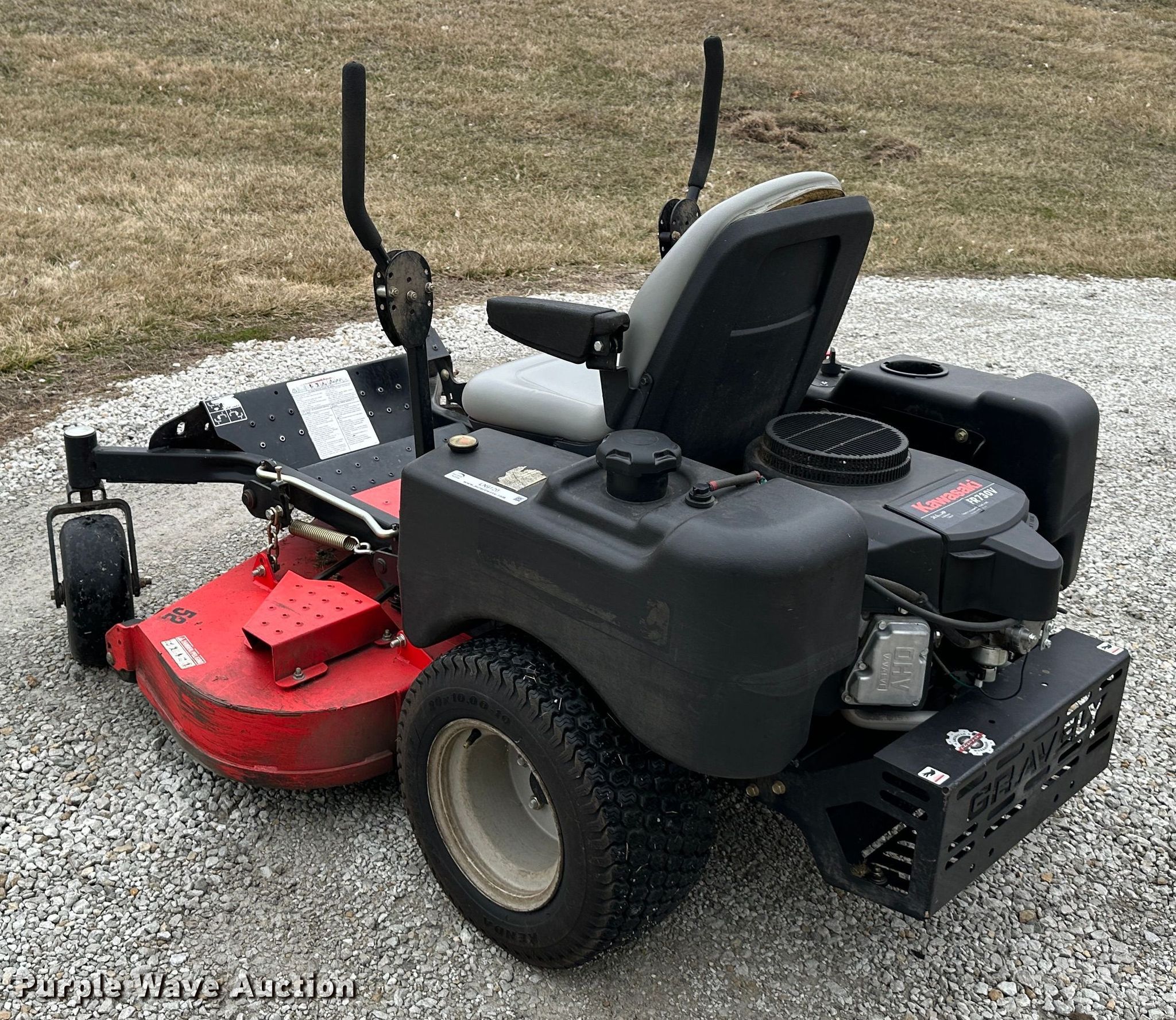 Gravely 991083 ZTR lawn mower. Hours: 904 on meter, Cutting width: 52". Engine Kawasaki FR730V, Cylinders: 2, Fuel type: Gas, HP: 24. Transmission Hydrostatic. Tires Front: 13x5.00-6, Rear: 20x10.00-10. Agency, MO 64401