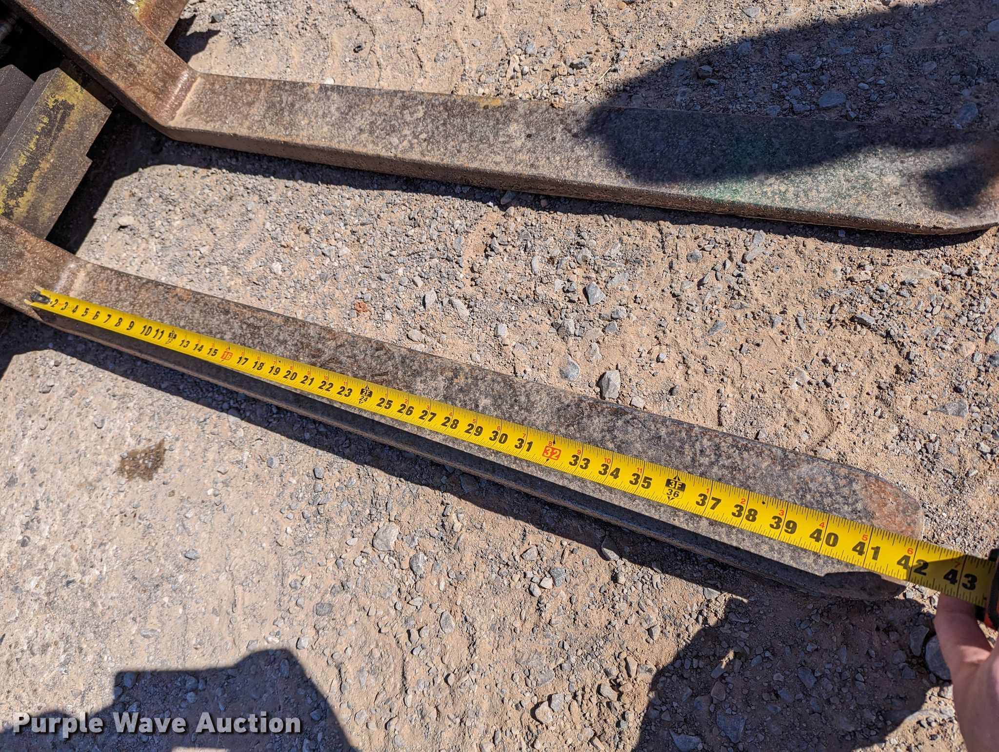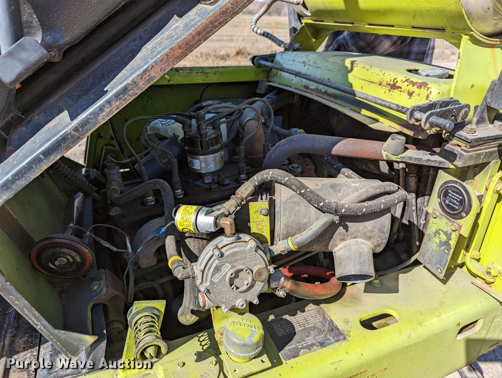 Clark C500-Y30 forklift. Hours: 293 on meter, Serial: Y235-100-5595. Engine Cylinders: 4, Fuel type: LPG LP bottle: Not included. Transmission Powershift. Operators station Canopy. Features Maximum lift capacity: 2,750 lbs, Maximum lift height: 130", Mast stages: 2, Side shift, Mast tilt, Fork length: 42". Tires Front: 21x8-9 NHS, Rear: 18x7-8 NHS. 3549 County Street 2940. Bradley, OK 73011