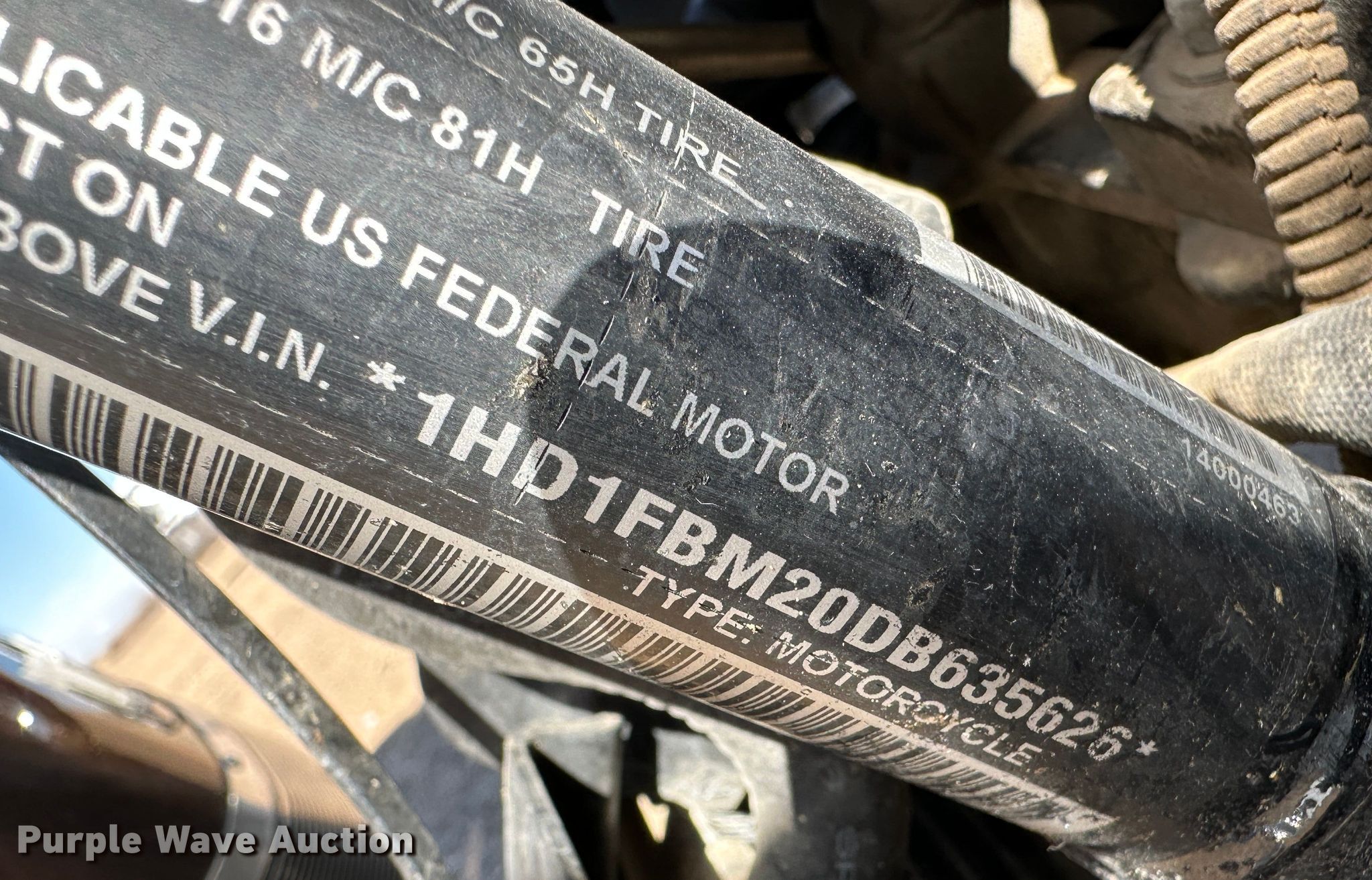 Purple Wave is selling a used Motorcycle in Kansas. This item is a 2013 Harley Davidson Road King 110th Anniversary Edition motorcycle with the following: Miles: 20,957 on odometer, VIN: 1HD1FBM20DB635626, Vehicle No: 955/1750