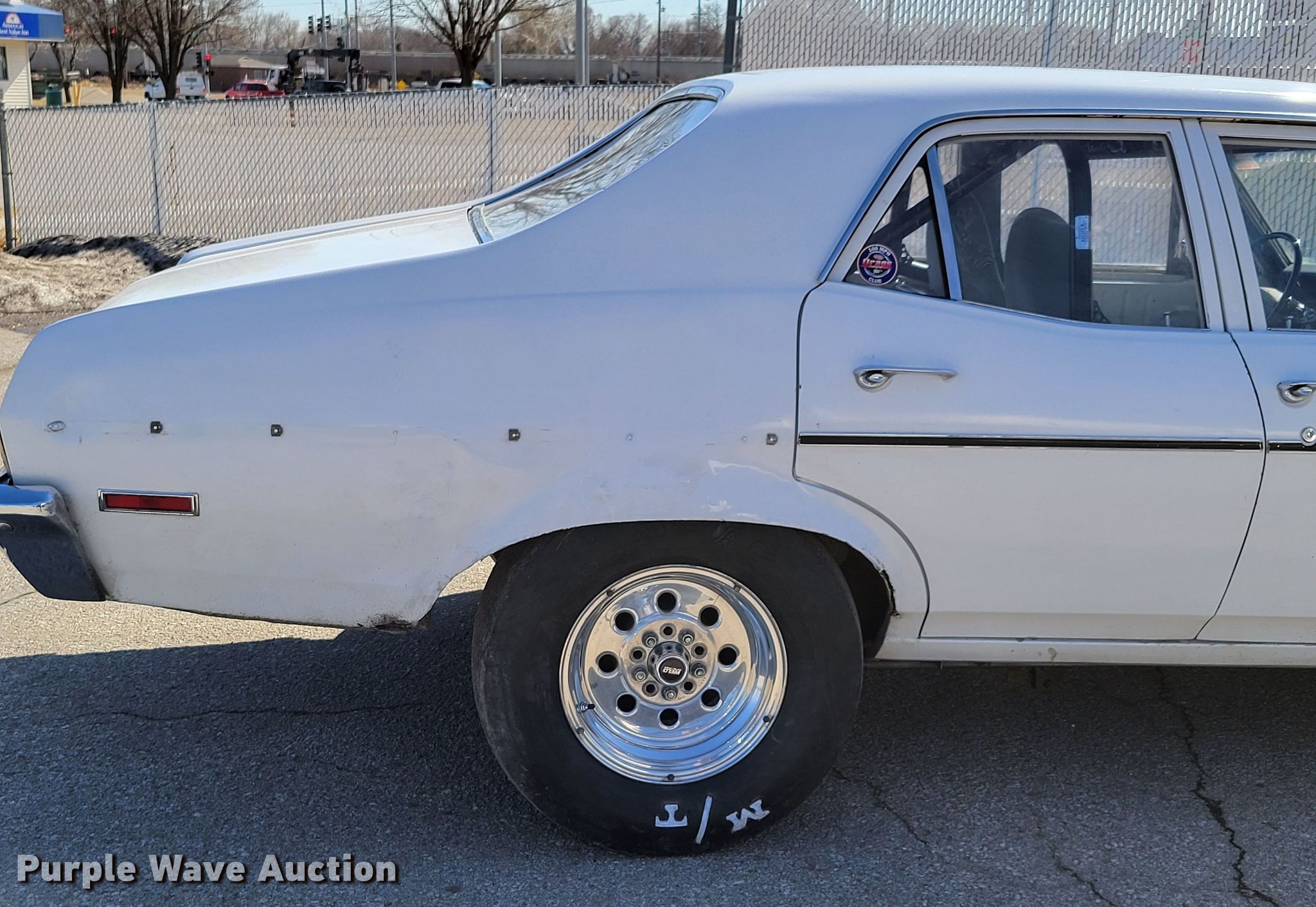 1971 Chevrolet Nova. Miles: Unknown, VIN: 114691W143315. Engine Cylinders: 8, Fuel type: Gas. Transmission Automatic. Features Roll cage Serial: A092577. Tires Front: 185/65R15, Rear: 28.0/10-15S. Nebraska title. Title distribution may be delayed up to 14 days from verification of funds. Blended Collision Center. 4511 North 56th Street. Lincoln, NE 68504