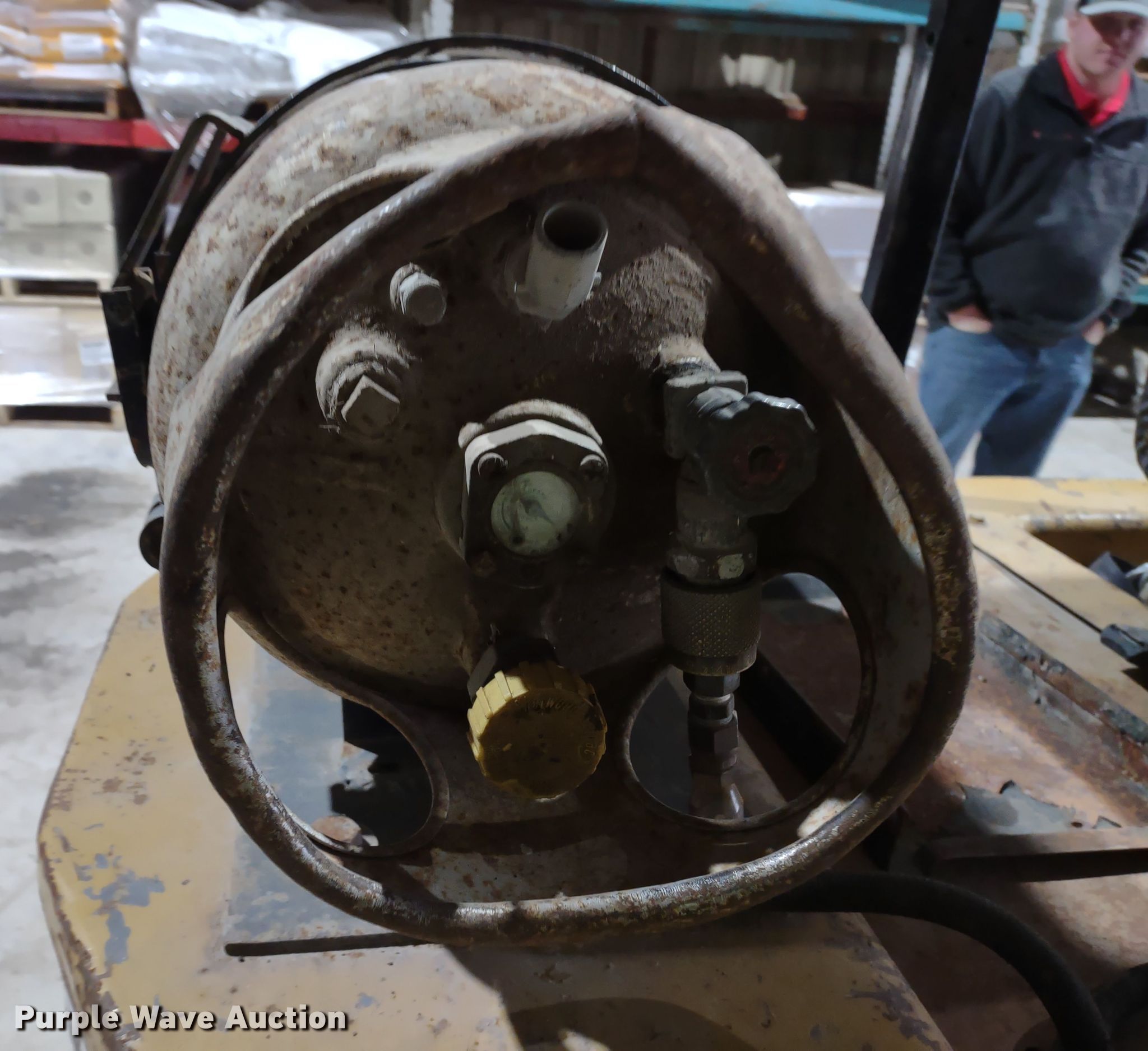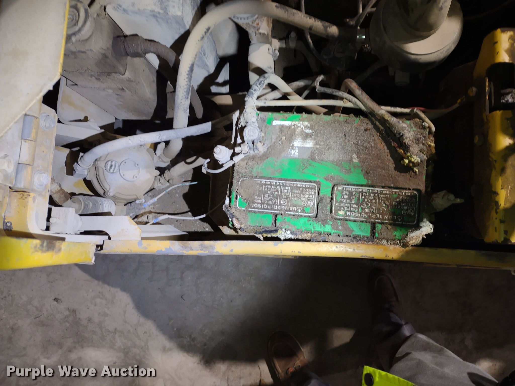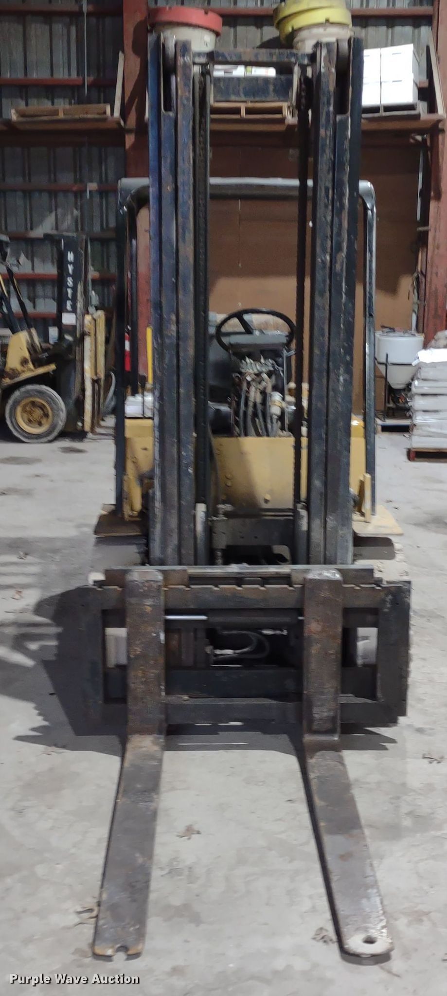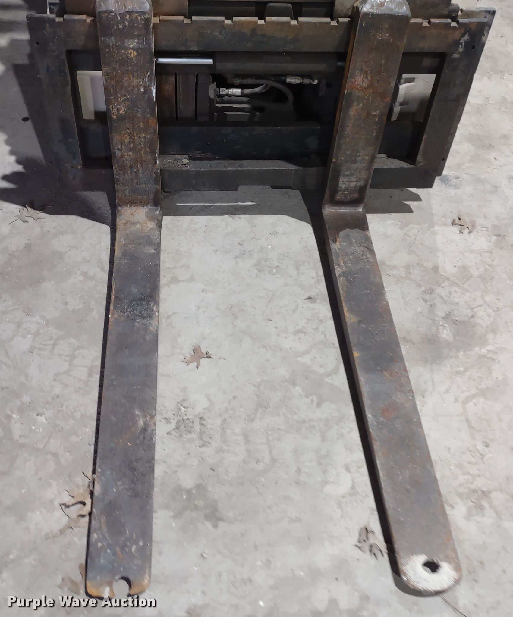 Caterpillar VC60D forklift. Hours: 757 on meter. Engine Caterpillar, Cylinders: 4, Fuel type: LPG LP bottle: Included. Transmission Powershift. Operators station Canopy. Features Mast stages: 2, Side shift, Mast tilt, Fork length: 48". Tires Front: 8.15-15, Rear: 6.00-9, Solid. AG Choice Hepler. Moran, KS 66755