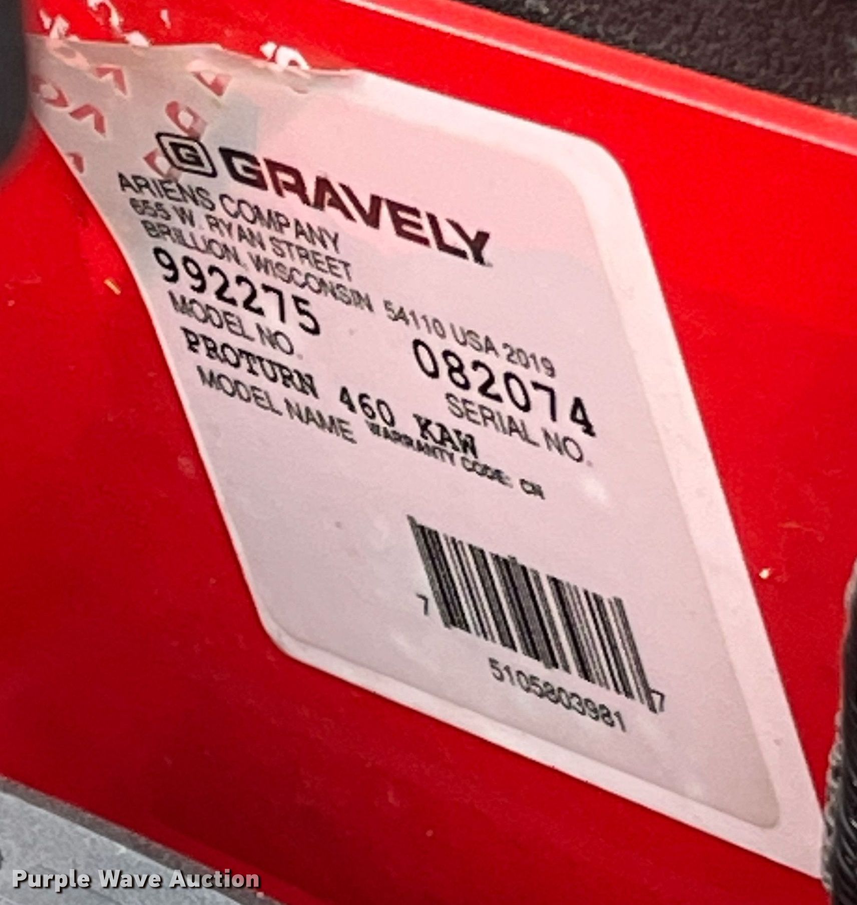 Purple Wave is selling a used Commercial Turf Mower in Kansas. This item is a Gravely Pro-Turn 460 ZTR lawn mower with the following: Hours: 1,353 on meter, Cutting width: 60", Serial: 082074