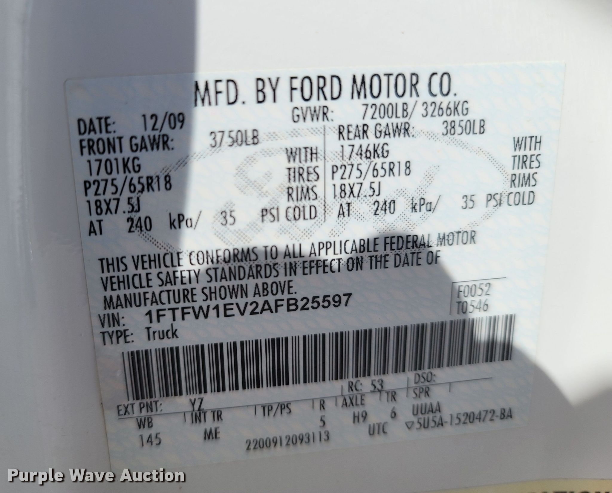 Purple Wave is selling a used 1/2 Ton Pickup or Van in Missouri. This item is a 2010 Ford F150 SuperCrew pickup truck with the following: Miles: 117,307 on odometer, VIN: 1FTFW1EV2AFB25597