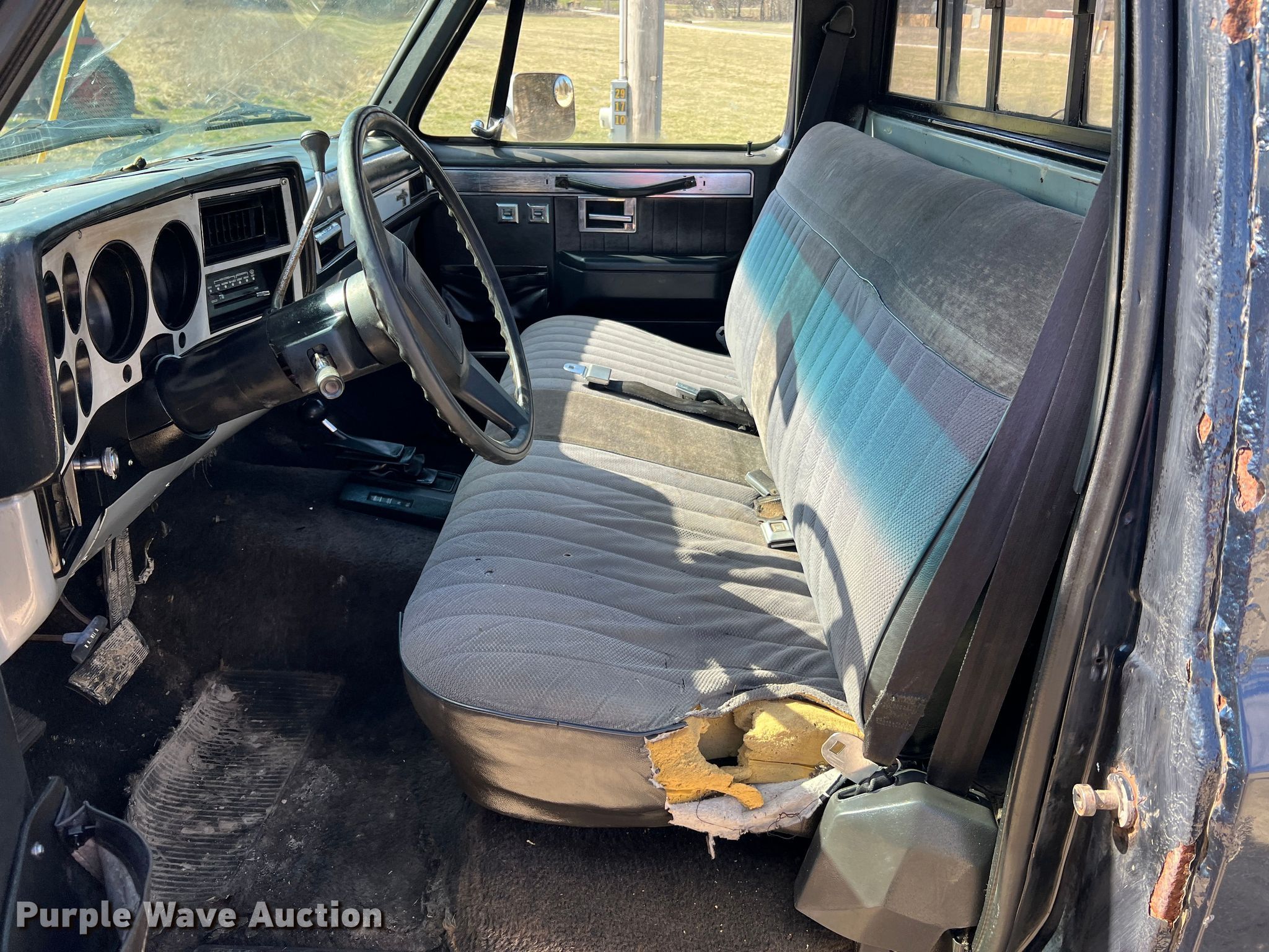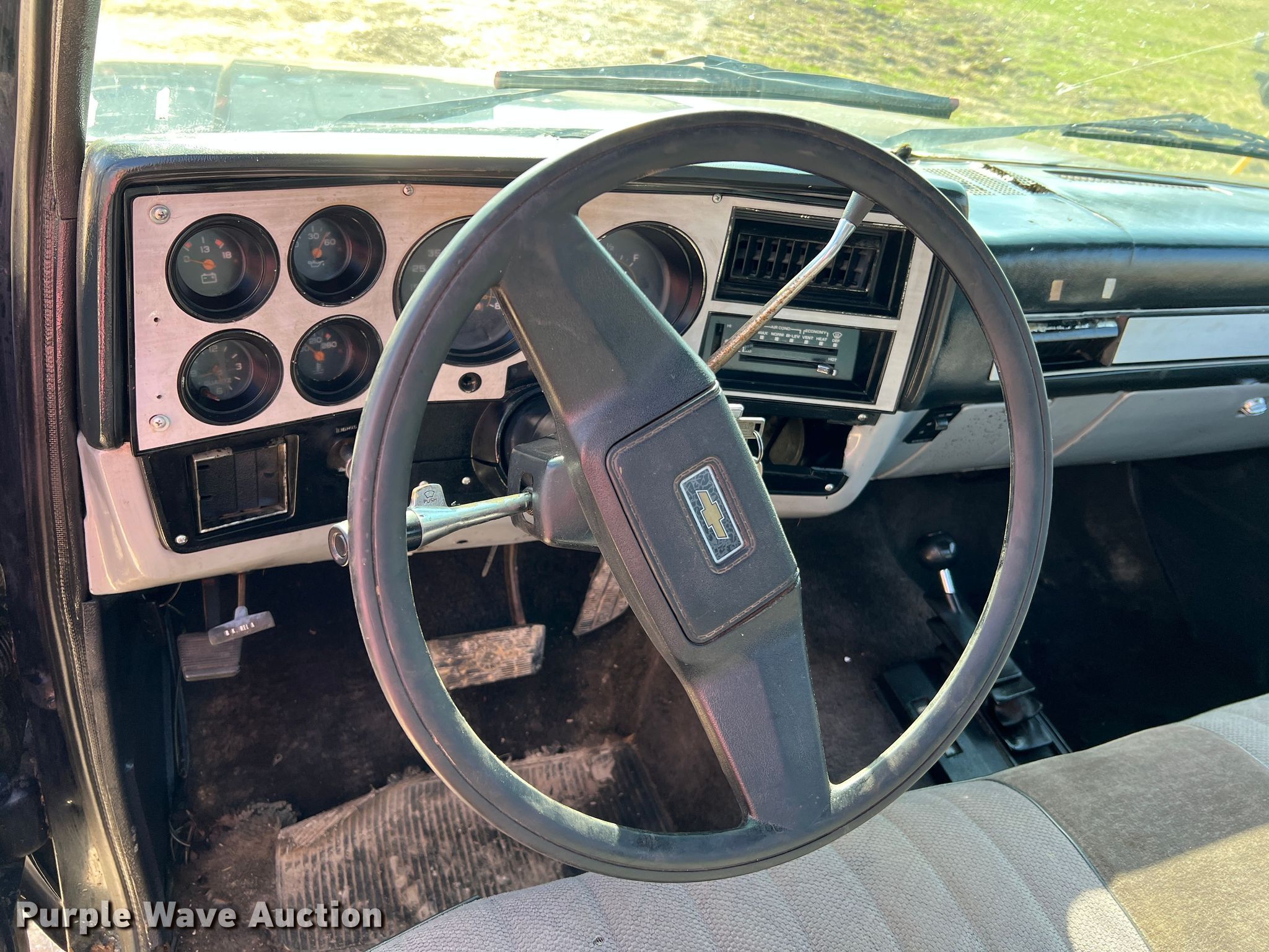This 1984 Chevrolet K20 pickup truck cab and chassis will sell to the highest bidder regardless of price.