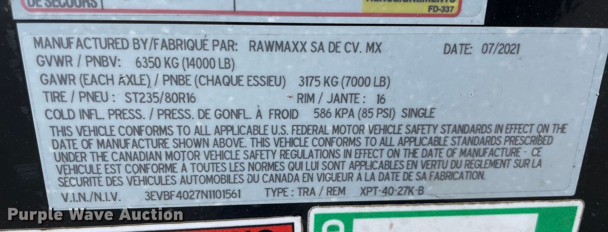 Purple Wave is selling a used Oilfield Trailer in Oklahoma. This item is a 2022 RawMaxx XPT-40-27K-B pipe trailer with the following: VIN: 3EVBF4027N1101561