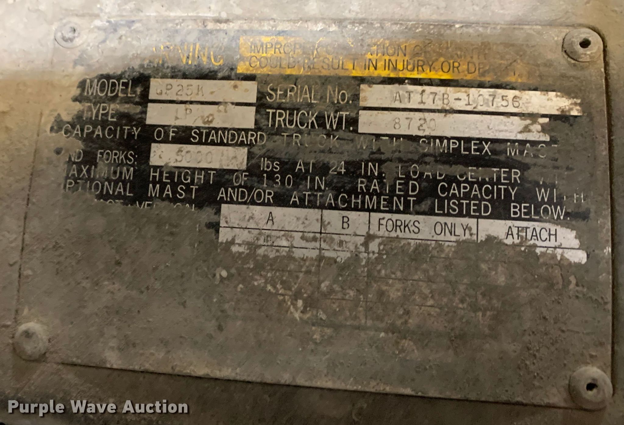 Purple Wave is selling a used Cushion Tire or Pneumatic Forklift in Arkansas. This item is a Caterpillar GP25K forklift with the following: Hours: 7,931 on meter, Miles or hours may vary, unit still in use, Serial: AT17B-10756