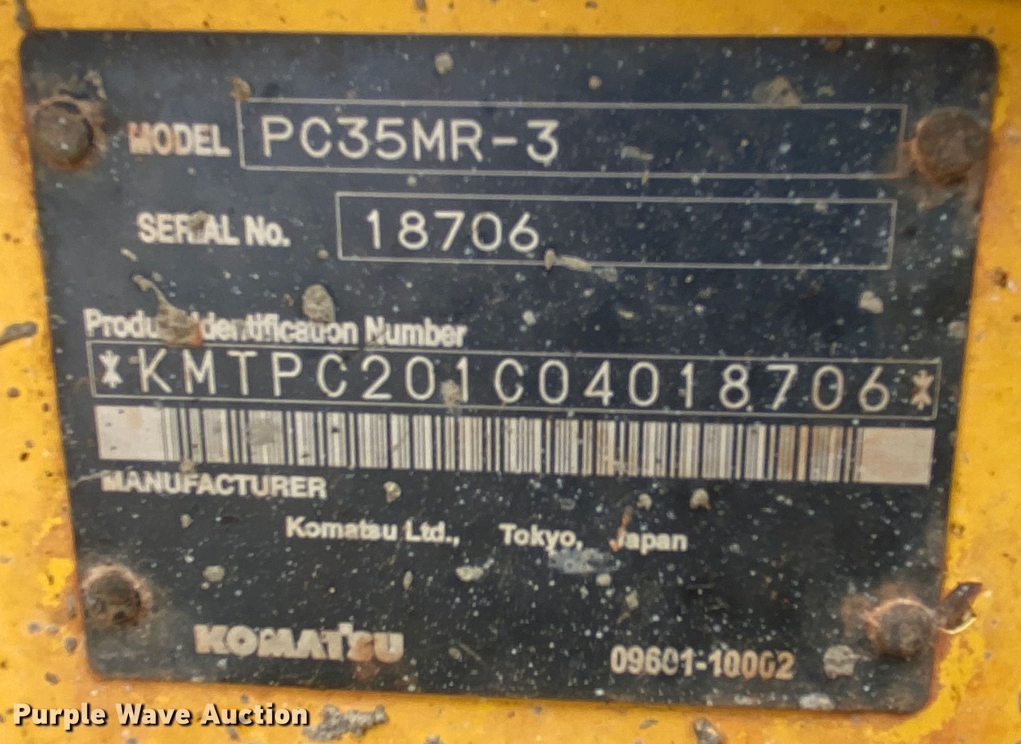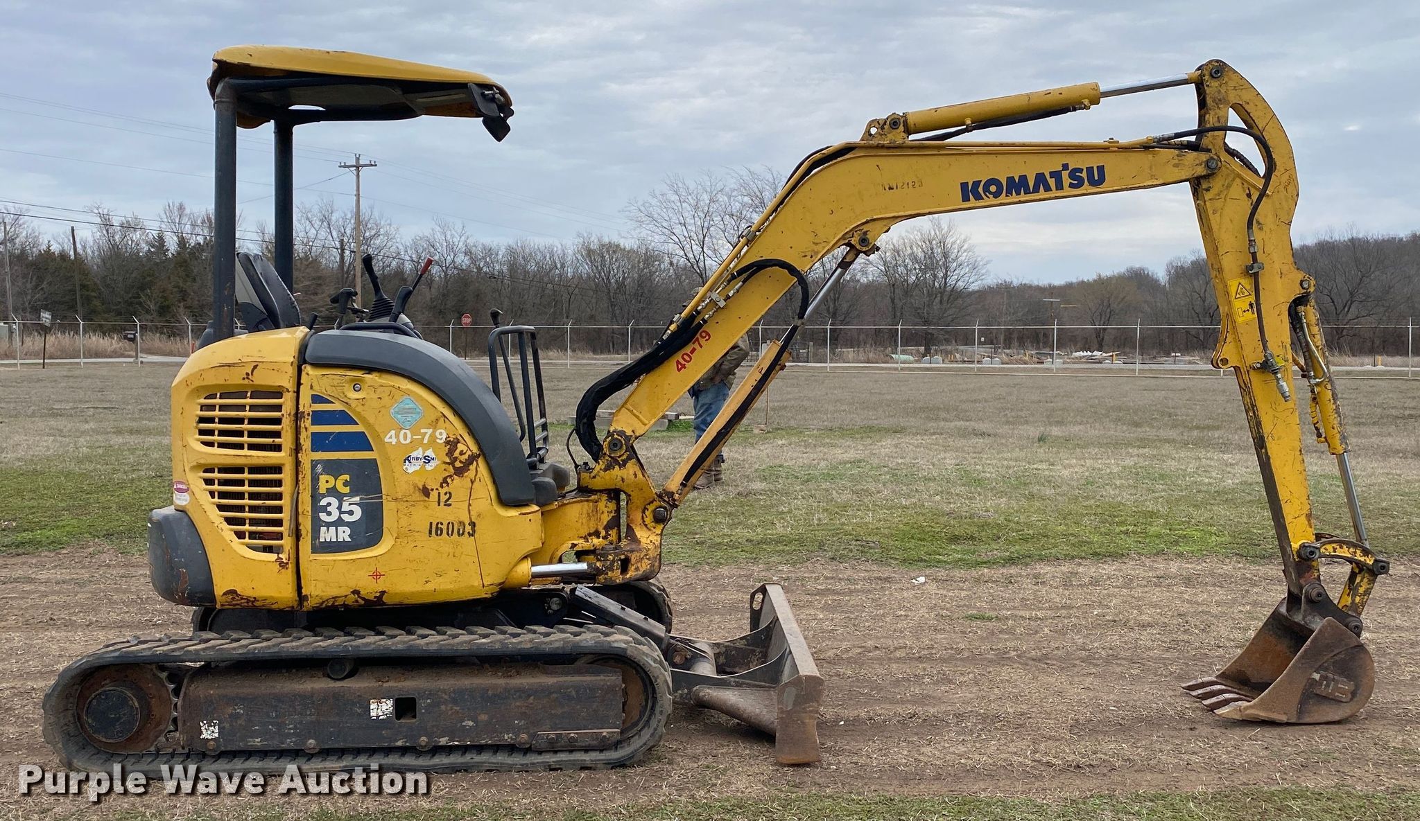 Purple Wave is selling a used Mini Excavator in Oklahoma. This item is a 2012 Komatsu PC35MR-3 mini excavator with the following: Hours: 4,334 on meter, Serial: KMTPC201C04018706, Unit #: 40-79