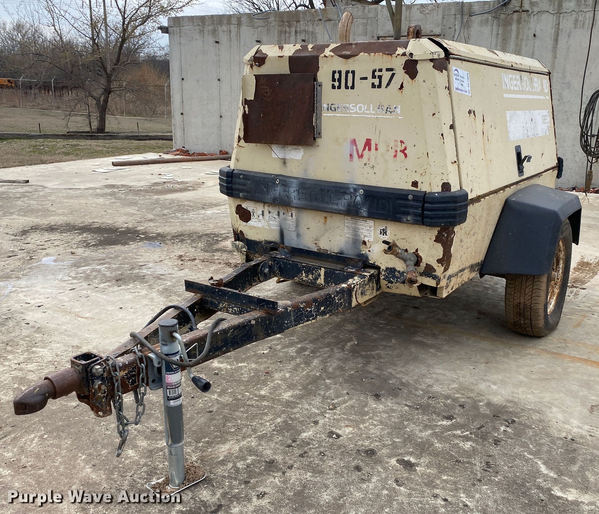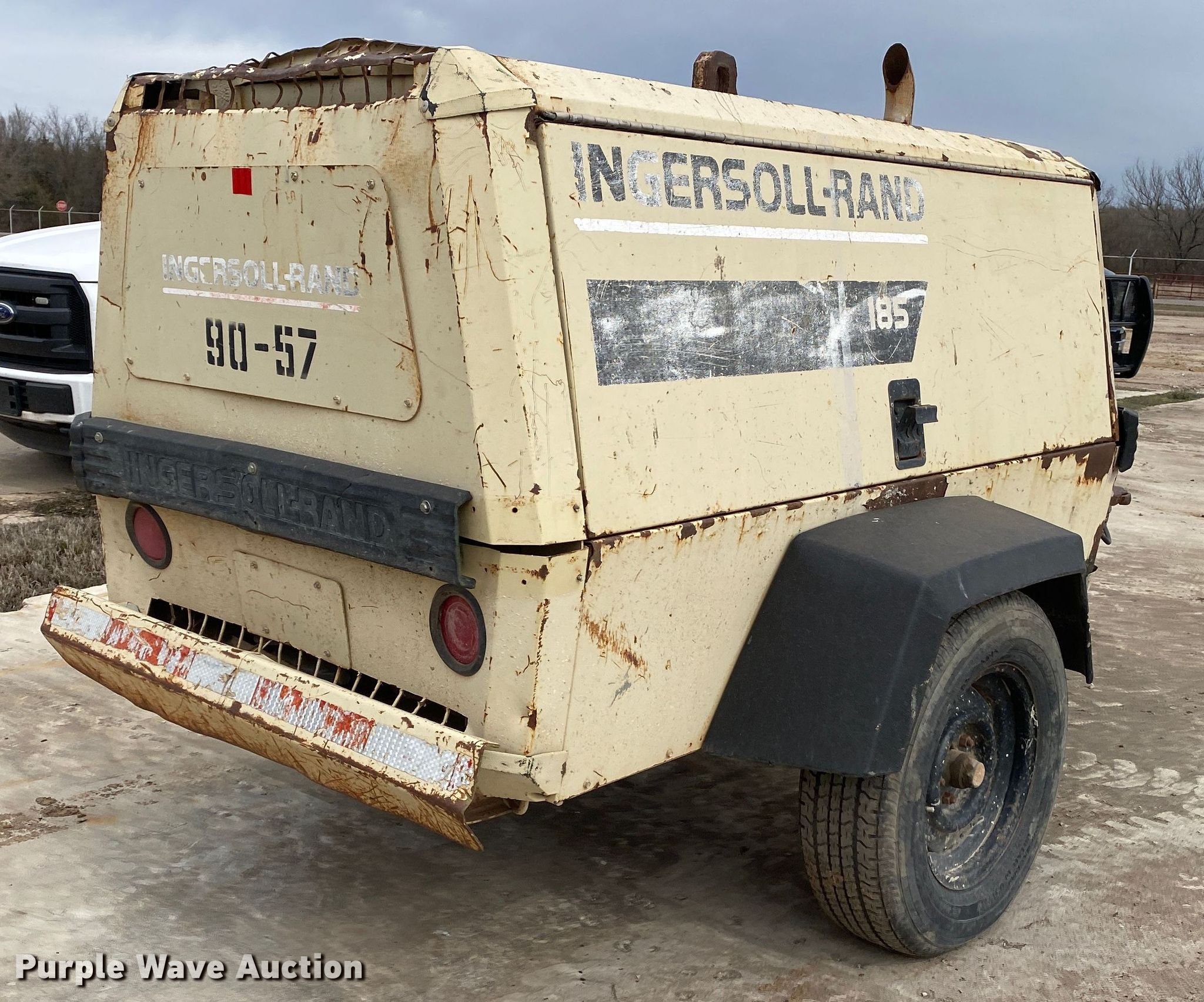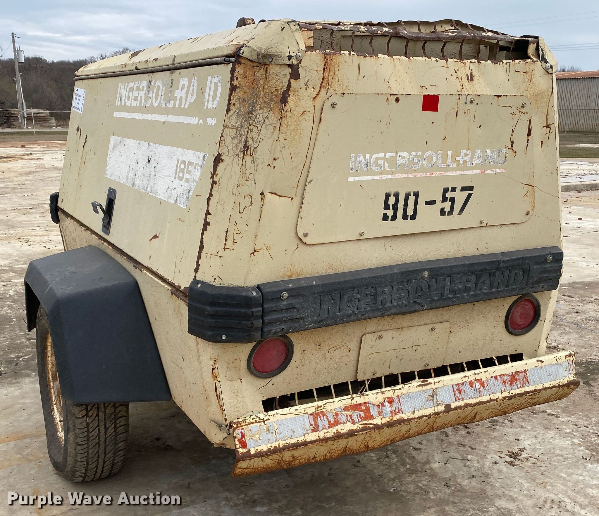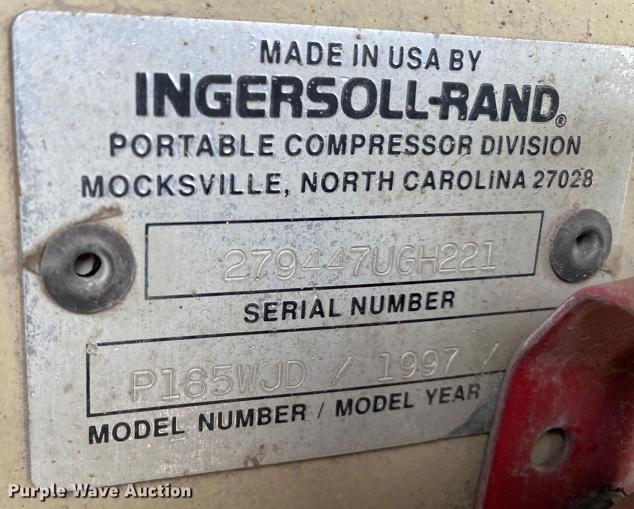 Purple Wave is selling a used Air Compressor in Oklahoma. This item is a 1997 Ingersoll Rand P185WJD air compressor with the following: Hours: Unknown, Serial: 279447UGH221, Unit #: 90-57