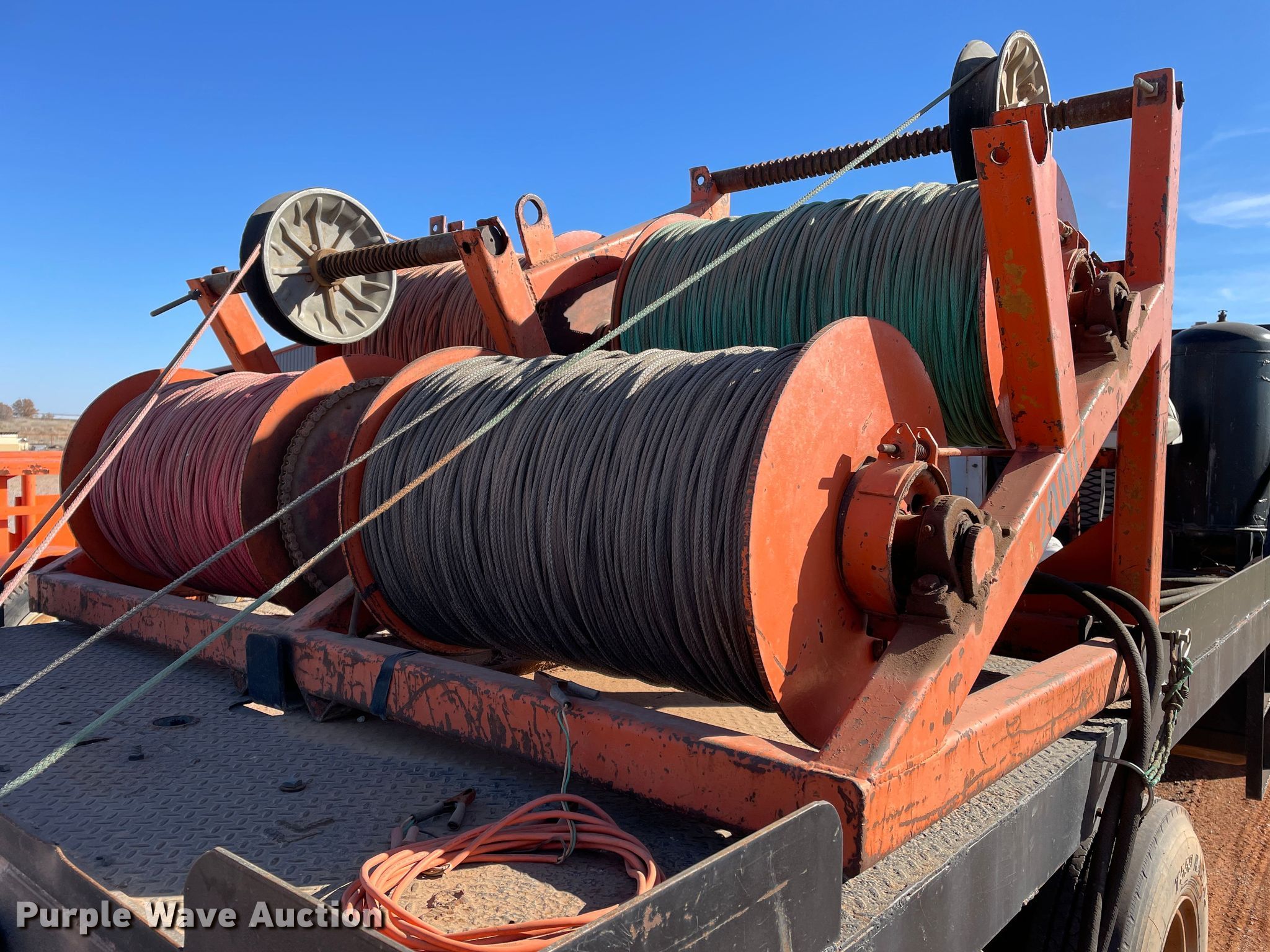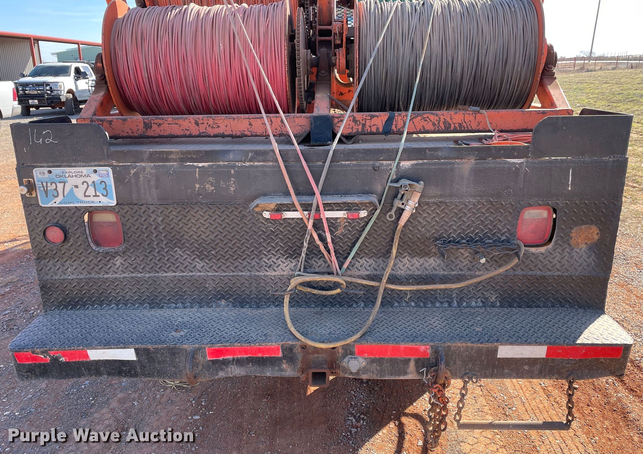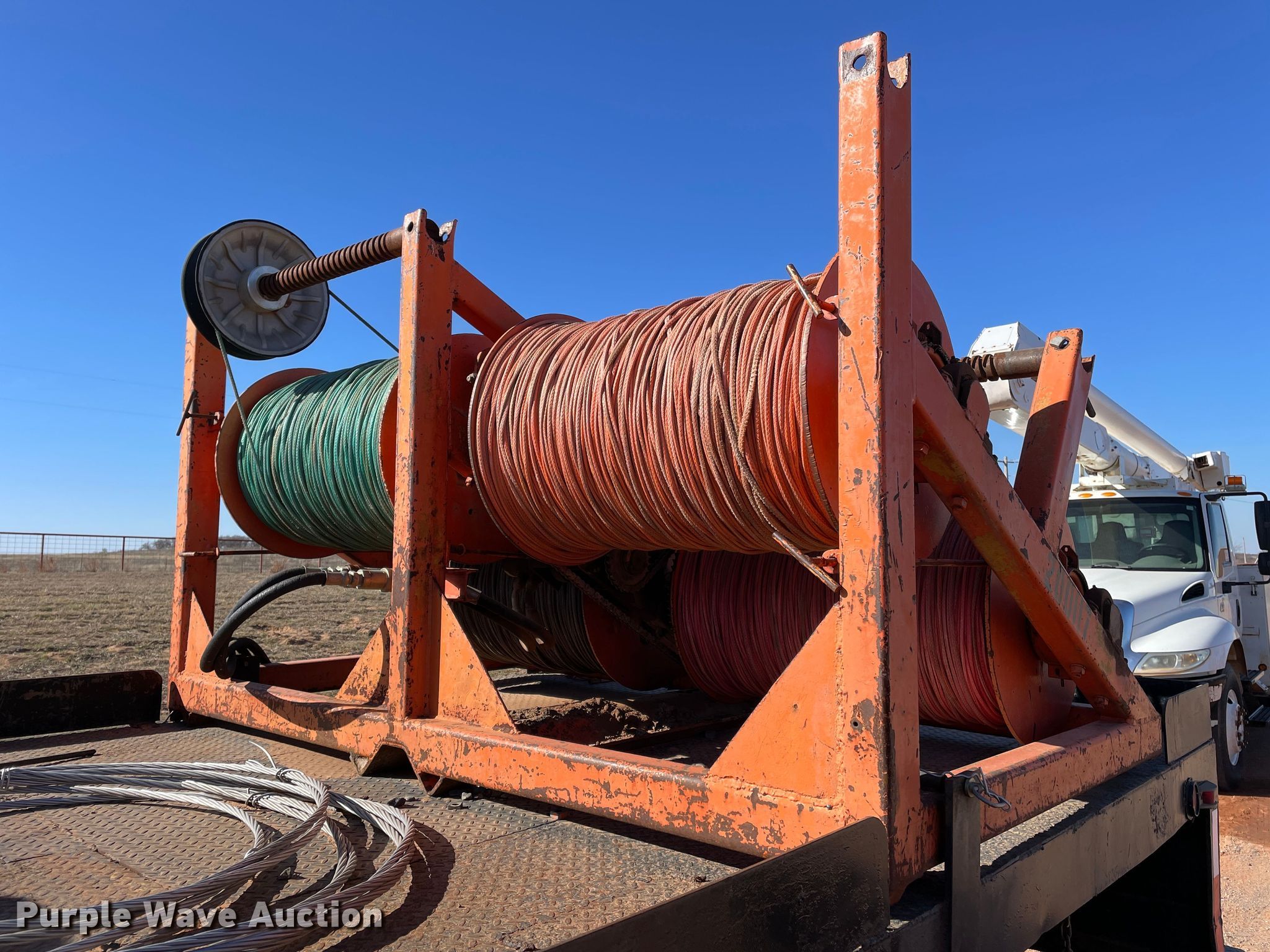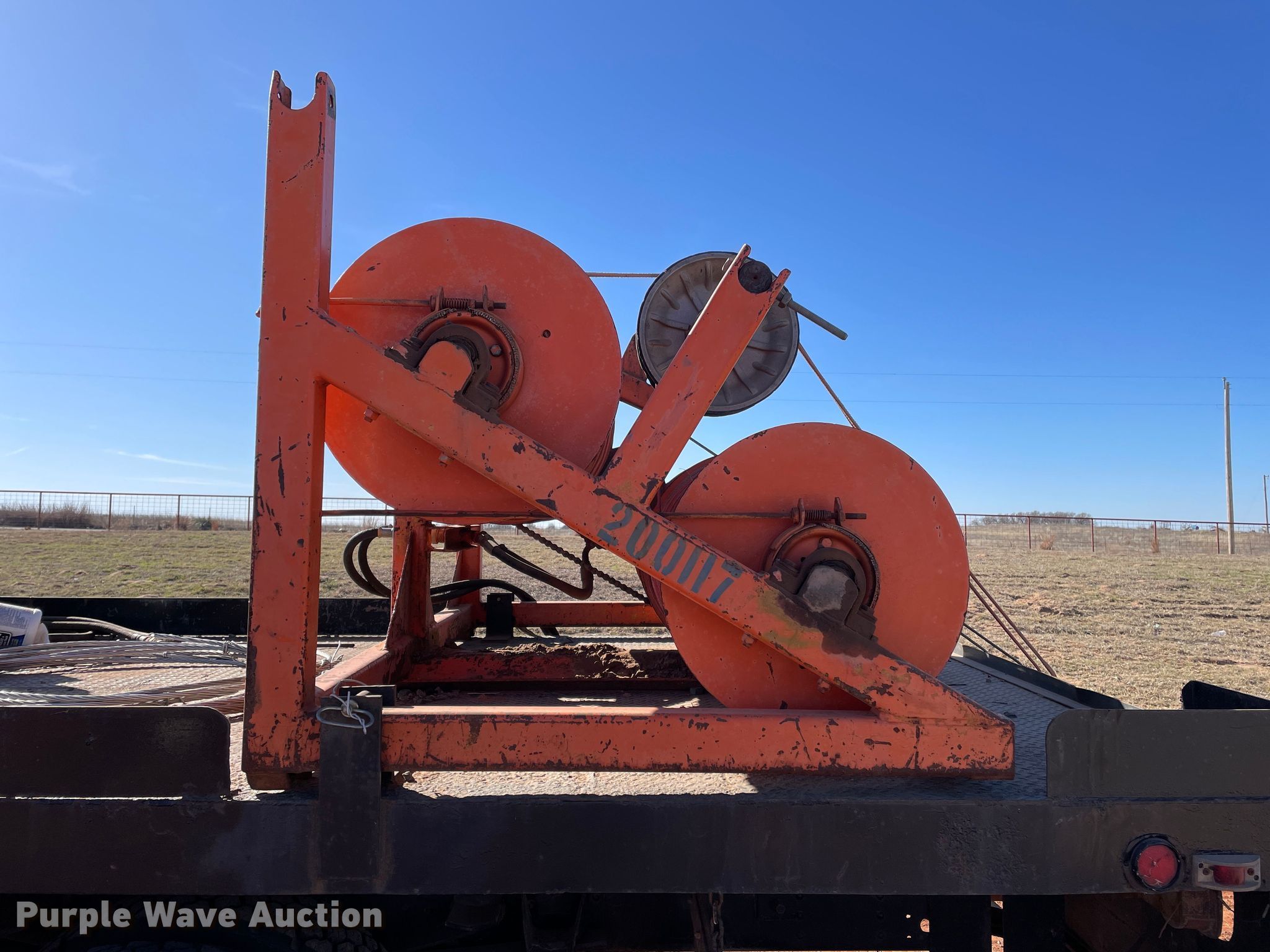 1998 Chevrolet C6500 line tensioner truck. Miles: 61,276 on odometer, Hours: 7,377 on meter, VIN: 1GBK7H1J6WJ103456. Engine Caterpillar, Displacement: 6.6L, Cylinders: 6, Fuel type: Diesel. Transmission Manual, Speed: 6. Chassis Axles: Single, Suspension: Spring, Brakes: Air, PTO, GVWR: 25,300 lbs. Interior Heat. Features Flatbed 15' L x 92.5" W, Reel carrier Capacity: 4. Tires Front: 9.00-20, Rear: 9.00R20. Oklahoma title. Title distribution may be delayed up to 14 days from verification of funds. R&R Powerline Company. 18661 East 1220 Road. Sayre, OK 73662