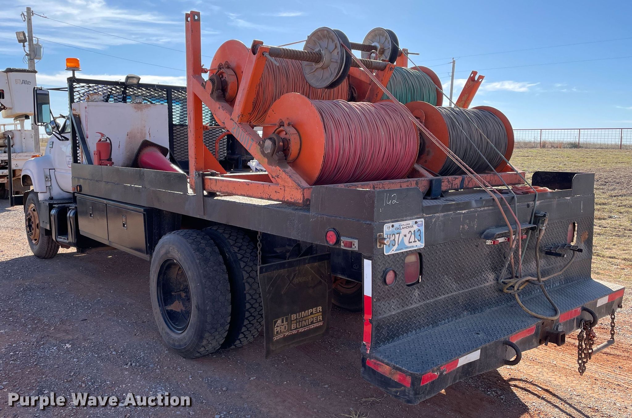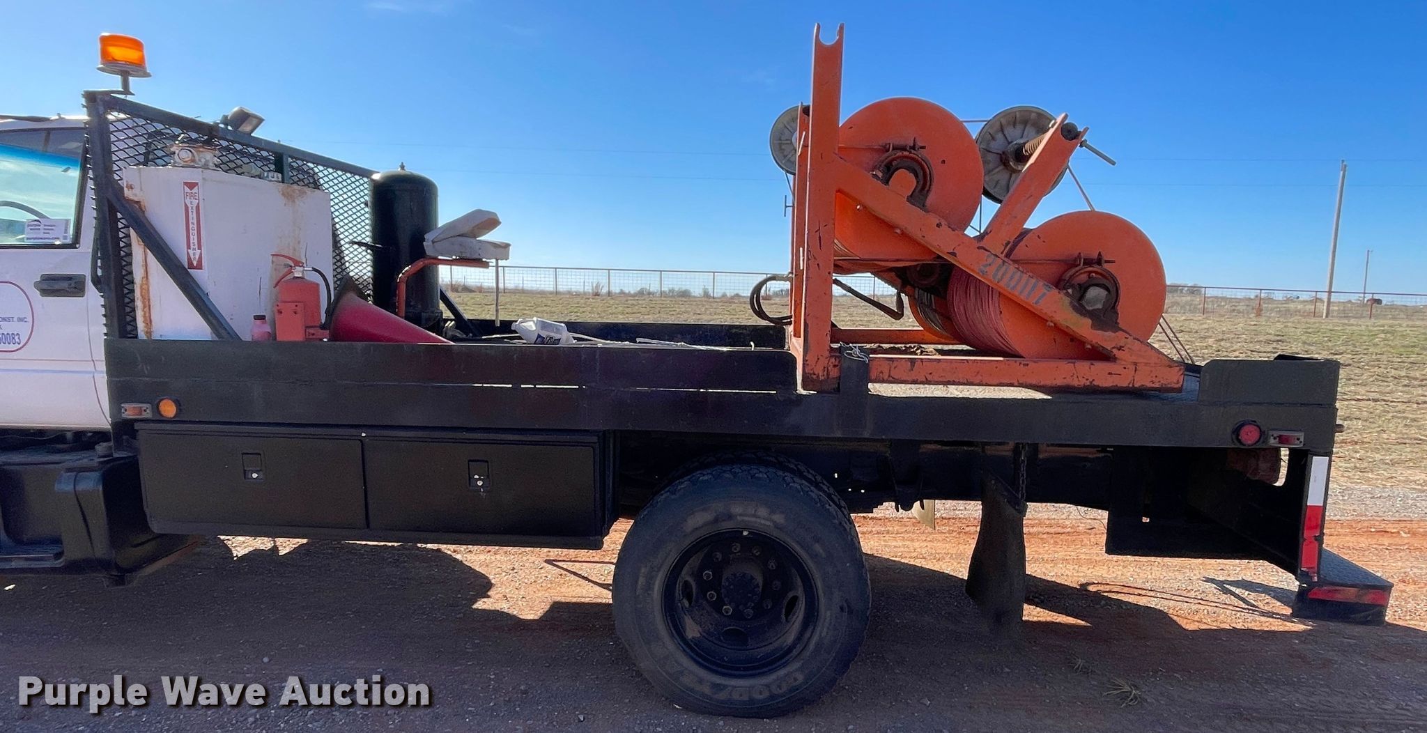 Purple Wave is selling a used Flat Bed Truck in Oklahoma. This item is a 1998 Chevrolet C6500 line tensioner truck with the following: Miles: 61,276 on odometer, Hours: 7,377 on meter, VIN: 1GBK7H1J6WJ103456