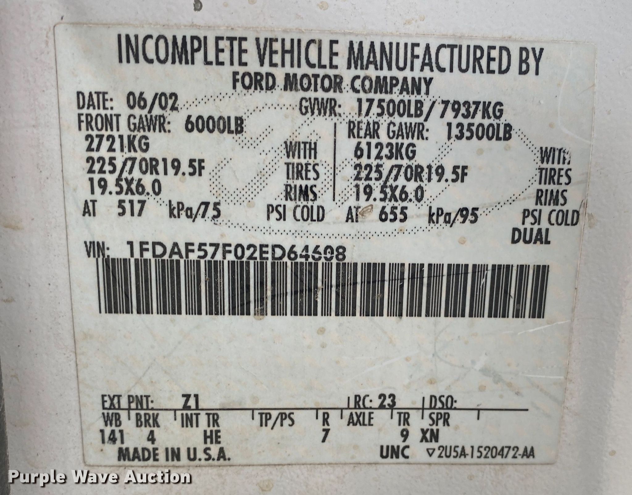 Purple Wave is selling a used Bucket Truck in Oklahoma. This item is a 2002 Ford F550 Super Duty bucket truck with the following: Miles: 156,603 on odometer, VIN: 1FDAF57F02ED64608, Unit #: 304017
