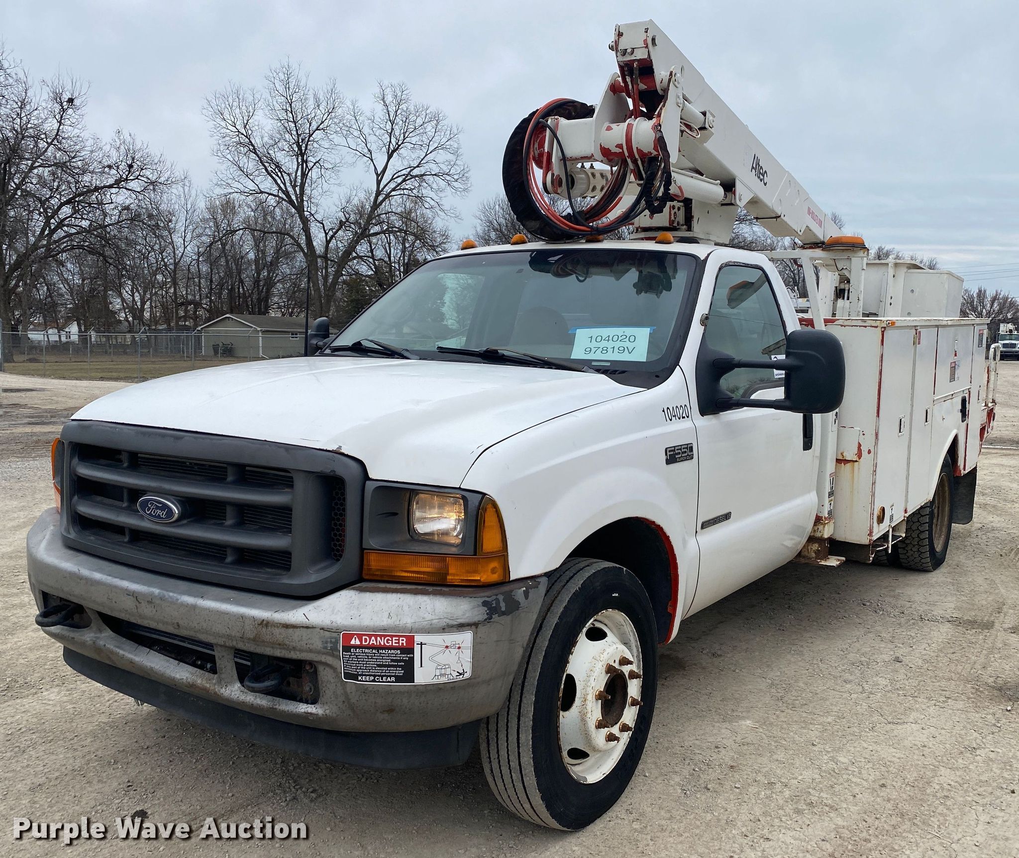 Purple Wave is selling a used Bucket Truck in Oklahoma. This item is a 2001 Ford F550 Super Duty bucket truck with the following: Miles: 250,890 on odometer, Hours: 4,366 on meter, VIN: 1FDAF56F81EC07859, Unit #: 104020