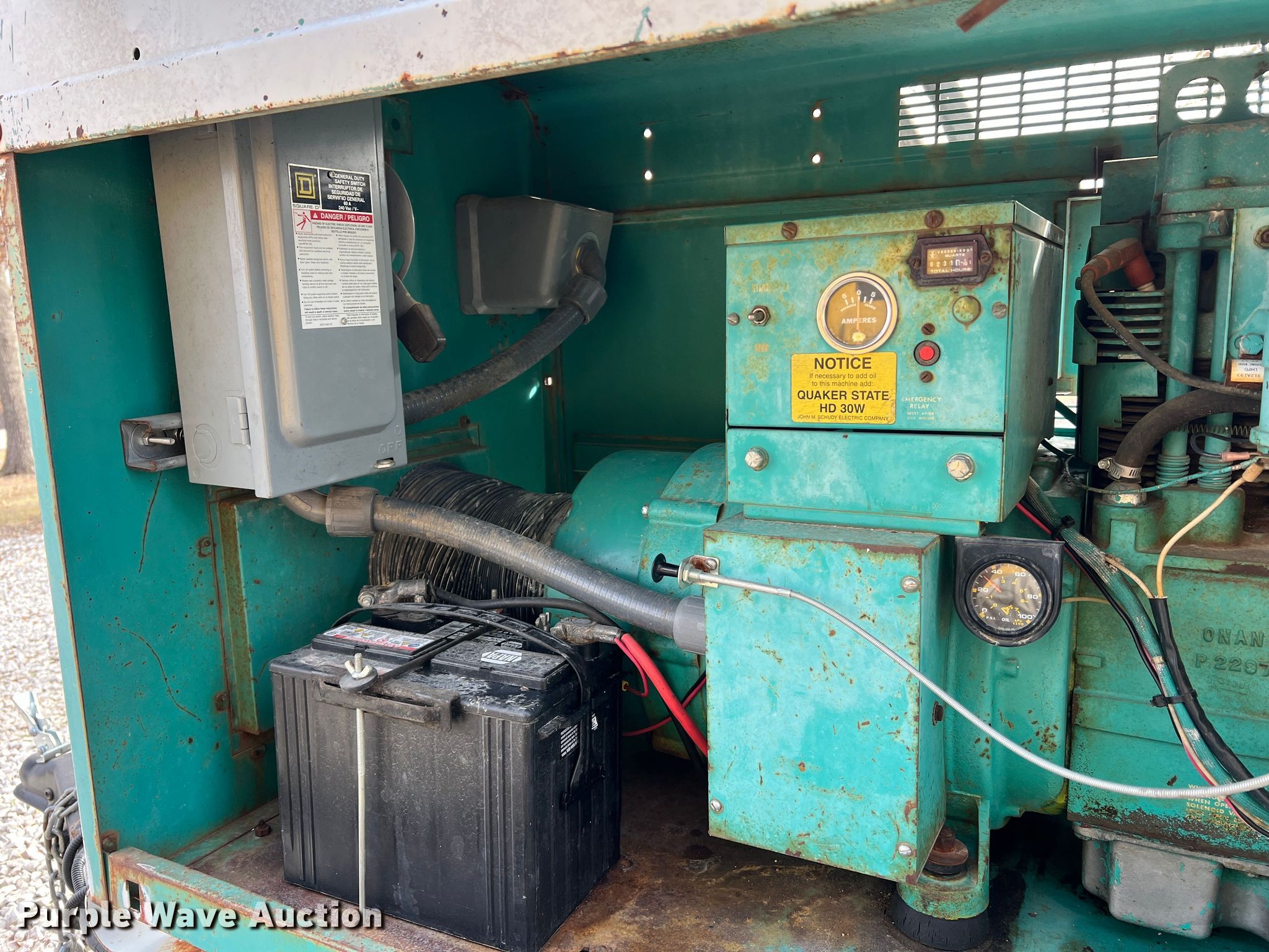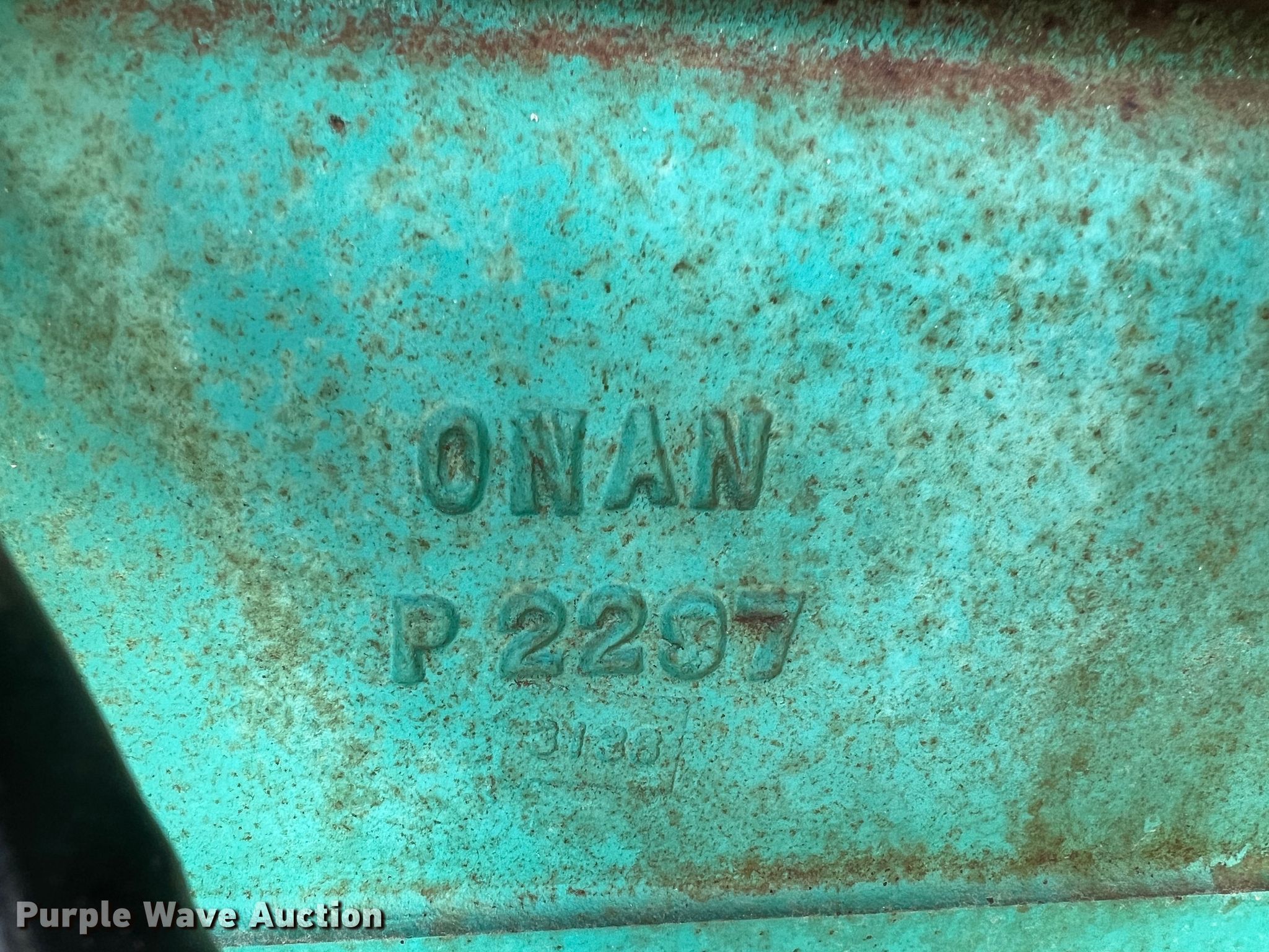 Hutchinson generator. Hours: 232 on meter. Engine Onan P2297, Cylinders: 4, Fuel type: Gas. Features Generator Onan, Watts: 12,500, kVA: 12.5, Phase: Single, Electric start, Fuel tank. Trailer 6' 6" L x 48" W, Ball hitch size: 2", Suspension: Spring, Axles: Single, Tire size: ST225/75R15. Transfer of ownership documentation will be a bill of sale. Vitt Truck and Auto Repair. 24511 US-24. Paris, MO 65275
