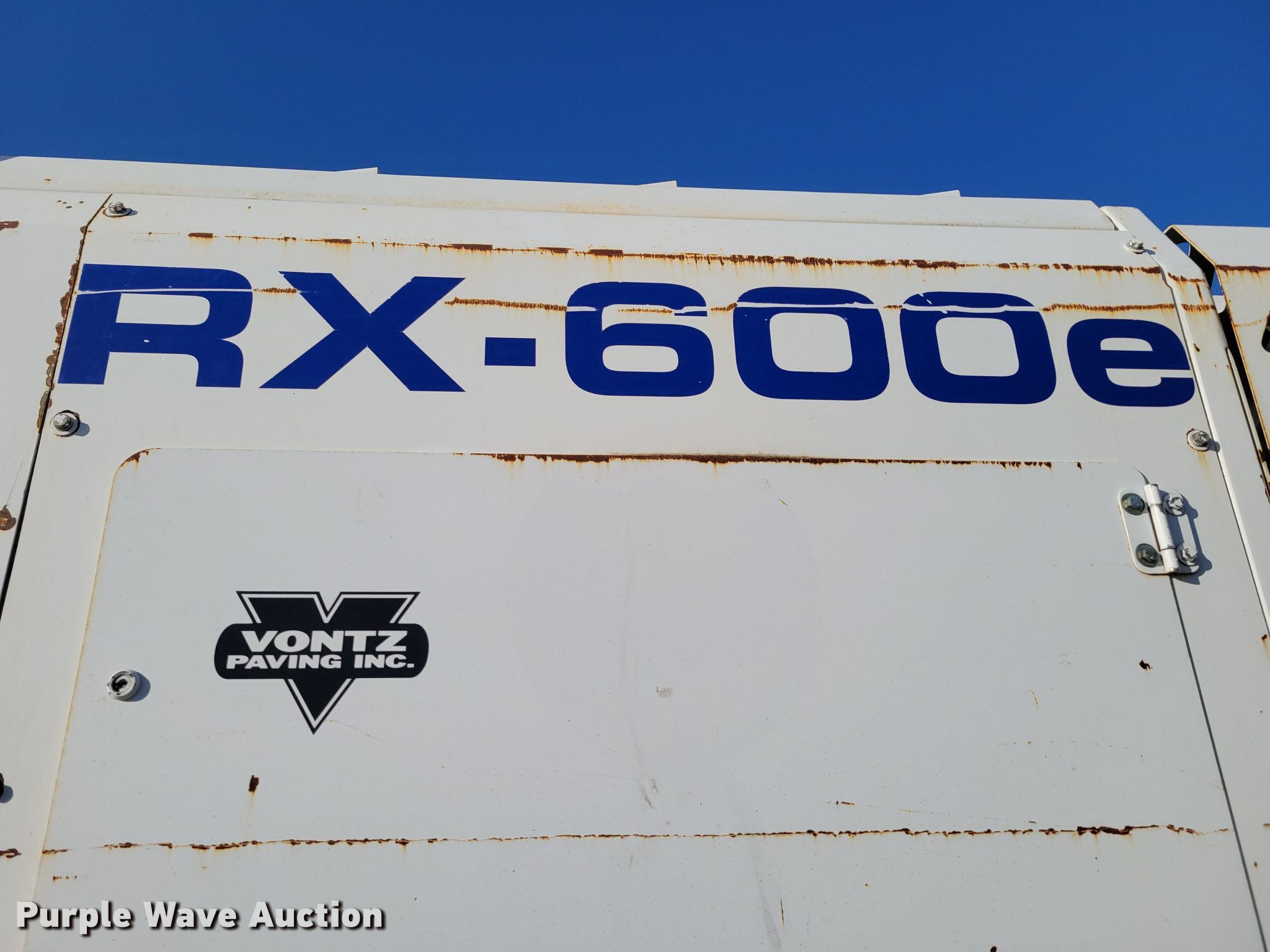 2014 Roadtec RX600E-4 VCS milling machine. Hours: 5,269 on meter, Serial: 2068. Engine Cummins QSX15 T4, Cylinders: 6, Fuel type: Diesel, HP: 600. Transmission Hydrostatic. Features Cutting head Width: 36", Cutting speeds: 1, Teeth, Carbide, Water/emulsion application system, Grade & slope controls, Ground controls, Discharge conveyor 24' 6" L x 32" W. Tracks Width: 12", Rubber, Steel. Notes Additional 7' 2" cutting head, 48" W cutting wheel. Vontz Paving. 2355 U.S. 6. Hastings, NE 68901