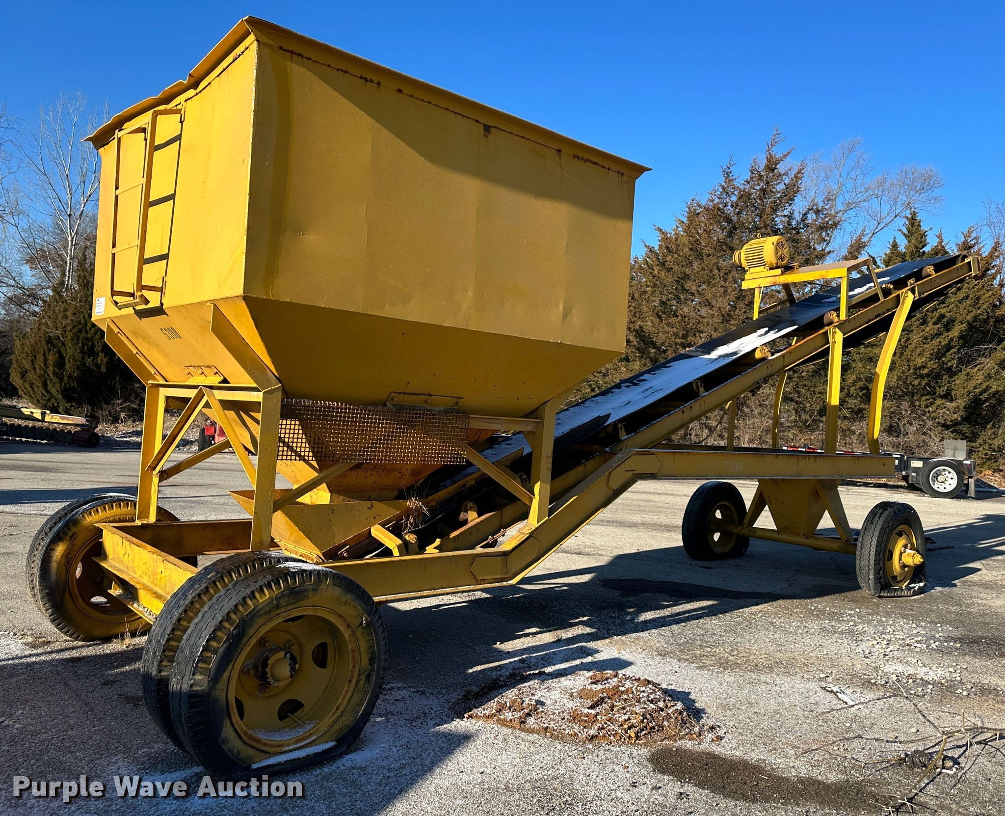Conveyor. Serial: 8801. Electric Motor Phase: Three. Features Conveyor Length: 30', Width: 25", Input hopper Length: 89.5", Width: 89.5", Rock bin. Tires Tire size: 7.50-20. Max Rieke & Brothers Inc.. 15400 Midland Dr. Shawnee, KS 66217