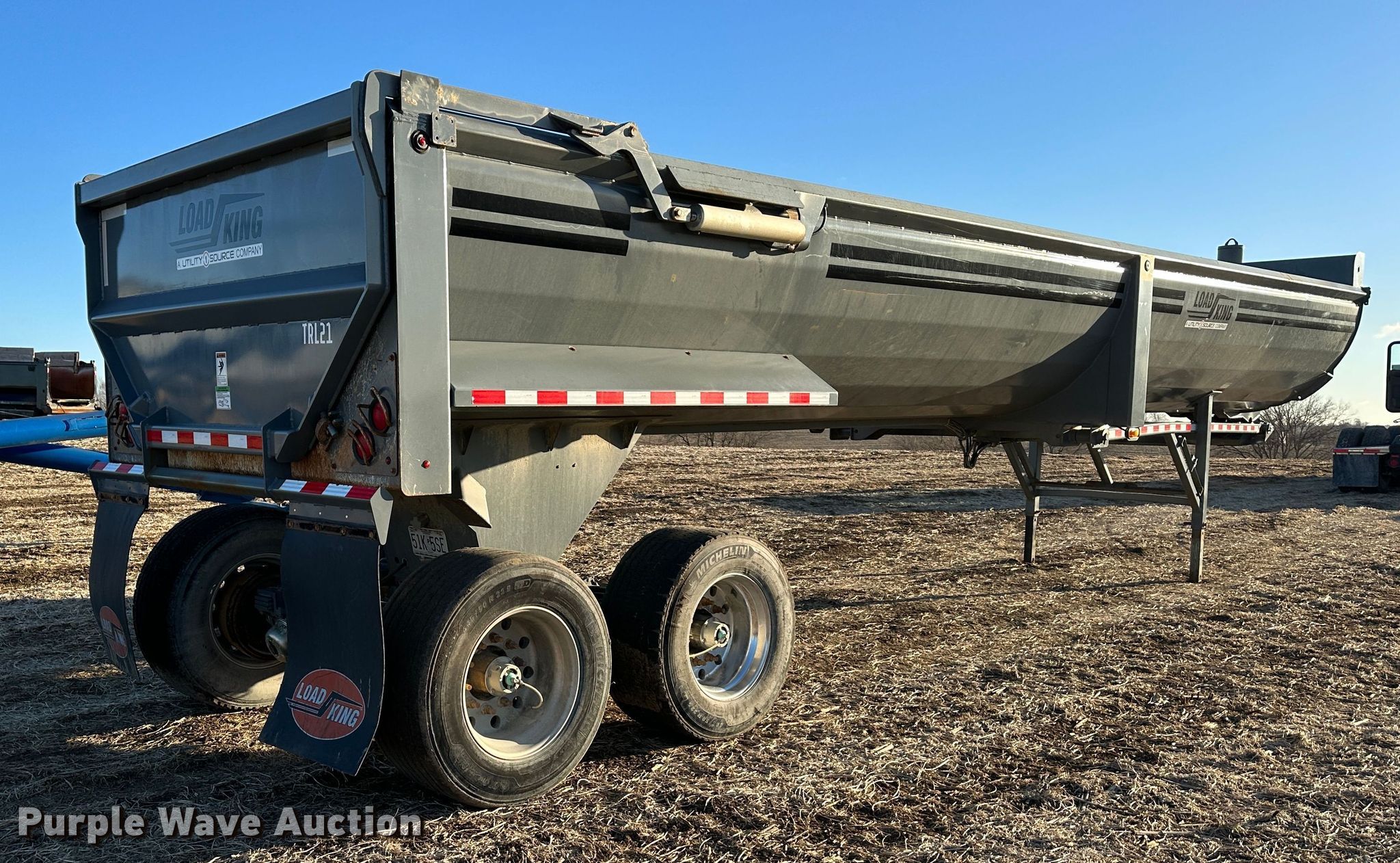2017 Load King RH3532 end dump trailer. VIN: 5LKD37234H1030036, Unit #: TRL21. Dimensions Overall: 37' L x 96" W, Body: 35' L x 96" W, Side height: 40". Features Cu. yd. capacity: 32, Body type: Steel, Ram: Single, End gate: Air operated. Chassis Landing gear: Dual, Suspension: Walking beam, Brakes: Air, Axles: Tandem, GVWR: 34,020 lbs, GAWR: 22,500 lbs. Tires Aluminum wheels, Size: 455/55R22.5. Missouri title. Title distribution may be delayed up to 14 days from verification of funds. JJ Hauling. 7151 Missouri 31. Easton, MO 64443