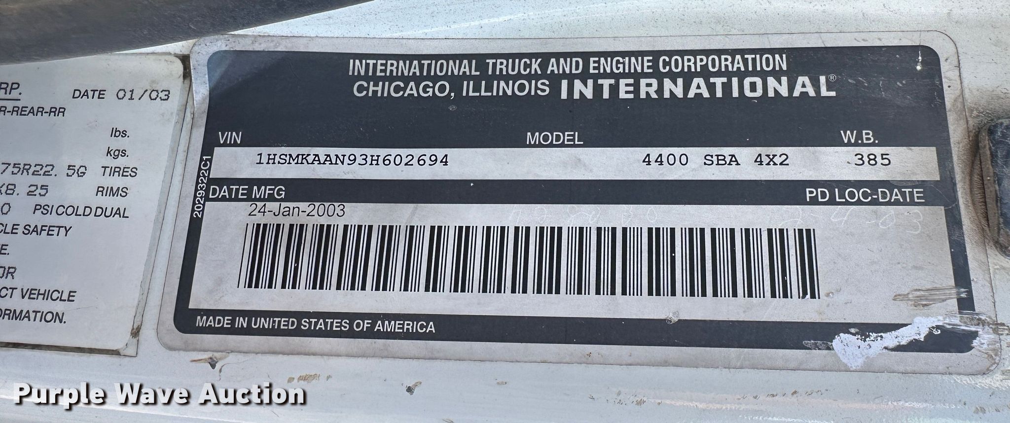 Purple Wave is selling a used Truck Tractor in Kansas. This item is a 2003 International 4400 semi truck with the following: Miles: 455,492 on odometer, Hours: 16,012 on meter, VIN: 1HSMKAAN93H602694
