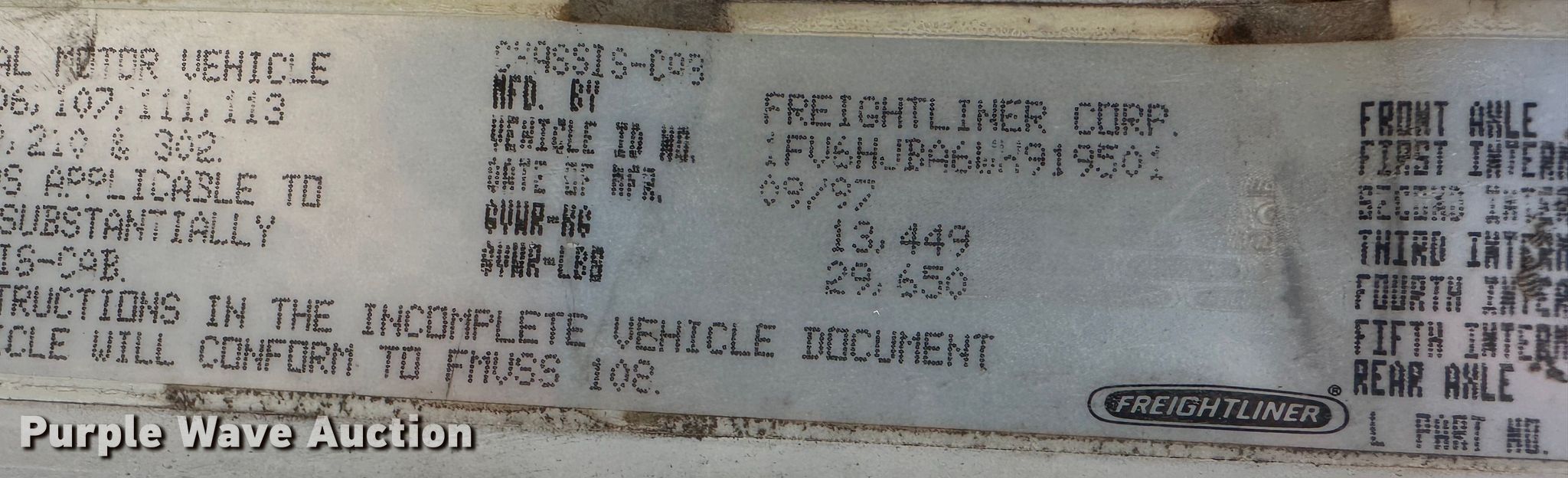Purple Wave is selling a used Construction Dump Truck in Kansas. This item is a 1998 Freightliner FL70 dump truck with the following: Miles: 131,233 on odometer, VIN: 1FV6HJBA6WH919501