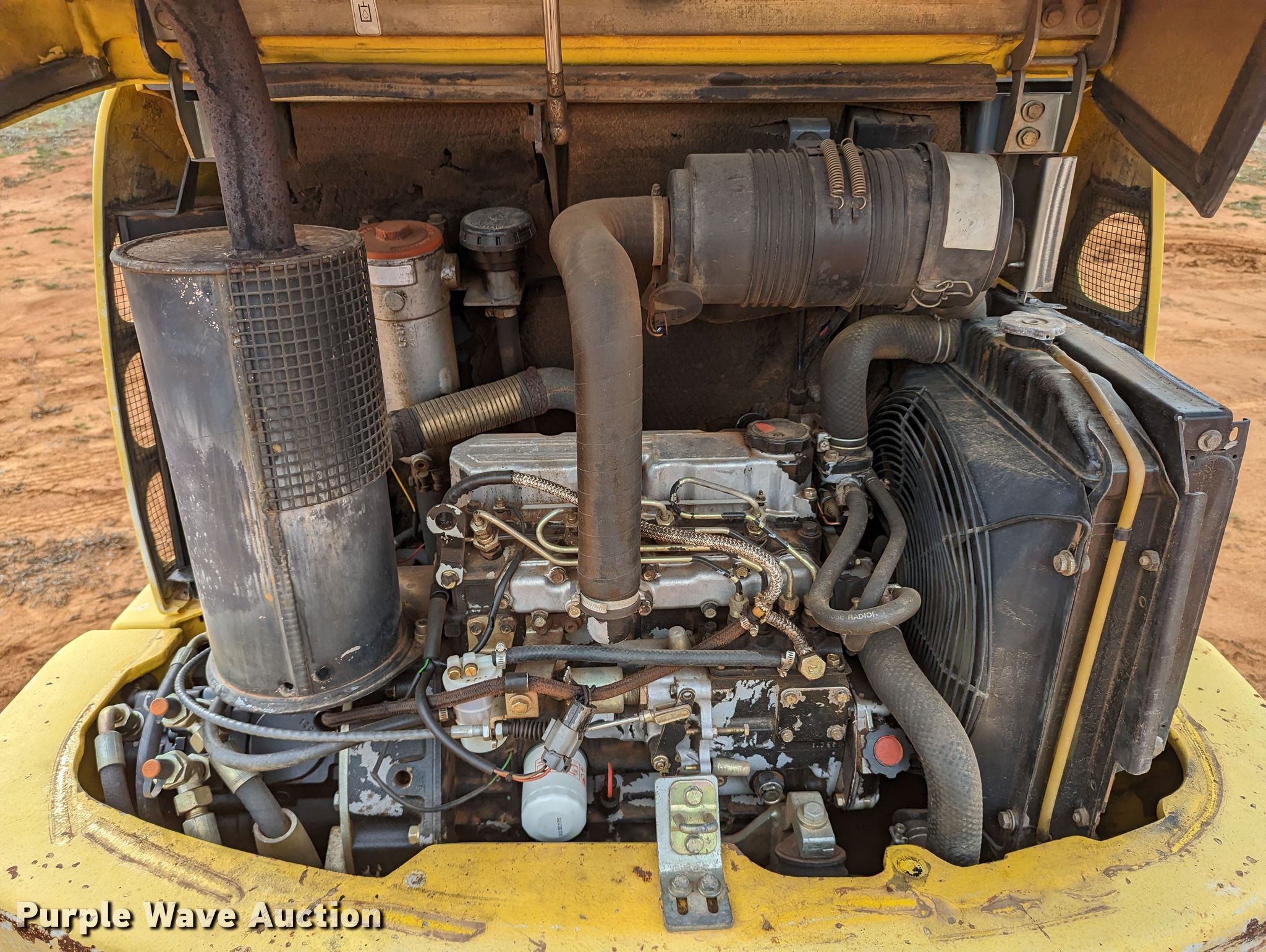 2001 New Holland EC35 mini excavator. Hours: 1,125 on meter, Serial: 2948. Engine Mitsubishi S4L2, Cylinders: 4, Fuel type: Diesel. Transmission Hydrostatic, Two speed travel. Features Auxiliary hydraulics, Backfill blade Width: 60", Boom Swing, Thumb: Hydraulic, Bucket Width: 24", Teeth: 4. Tracks Width: 12", Rubber. 2290 County Road 1240. Blanchard, OK 73010