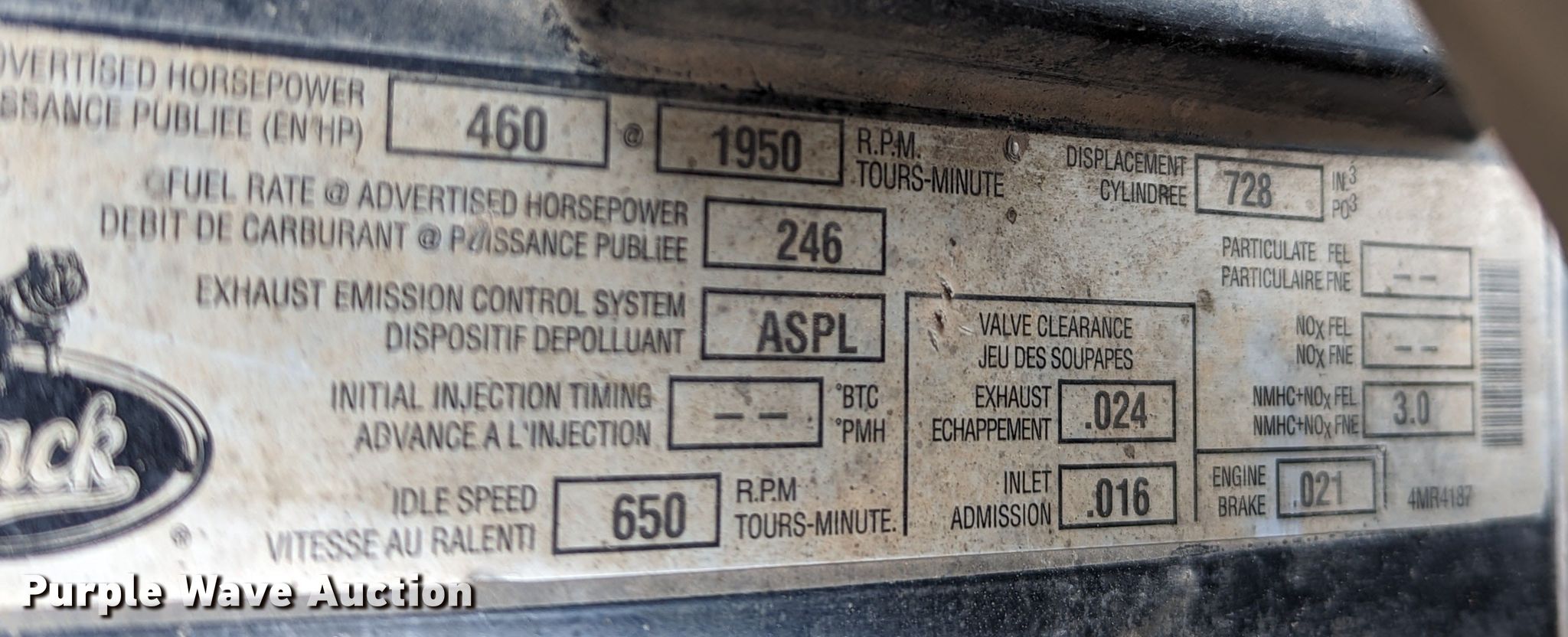 2004 Mack Granite CV713 vacuum truck. Miles: 383,191 on odometer, Hours: 26,631 on meter, VIN: 1M2AG10C04M011090. Engine Mack AI-460, Serial: 301079, Displacement: 12.0L, Cylinders: 6, Fuel type: Diesel, HP: 460. Transmission Eaton Fuller, Manual, Speed: 18. Chassis Axles: Tandem, Suspension: Spring, Brakes: Air, PTO, GVWR: 56,000 lbs, Wheelbase: 230". Interior AC, Heat, Cruise control. Features Tank bed 2008 Largo, Serial: 08-TT403, Capacity: 3,360 gallons, Capacity: 80 barrels, Top hatches: 4, Rear manway, Rear outlet: 4", Vacuum pump Masport H400W, CFM: 400. Tires Size: 11R24.5. Notes Transmission rebuilt April 2022, Vacuum pump rebuilt April 2022. View repairs. Oklahoma title. Title distribution may be delayed up to 14 days from verification of funds. February Environmental LLC. 17650 East Etowah Road. Noble, OK 73068