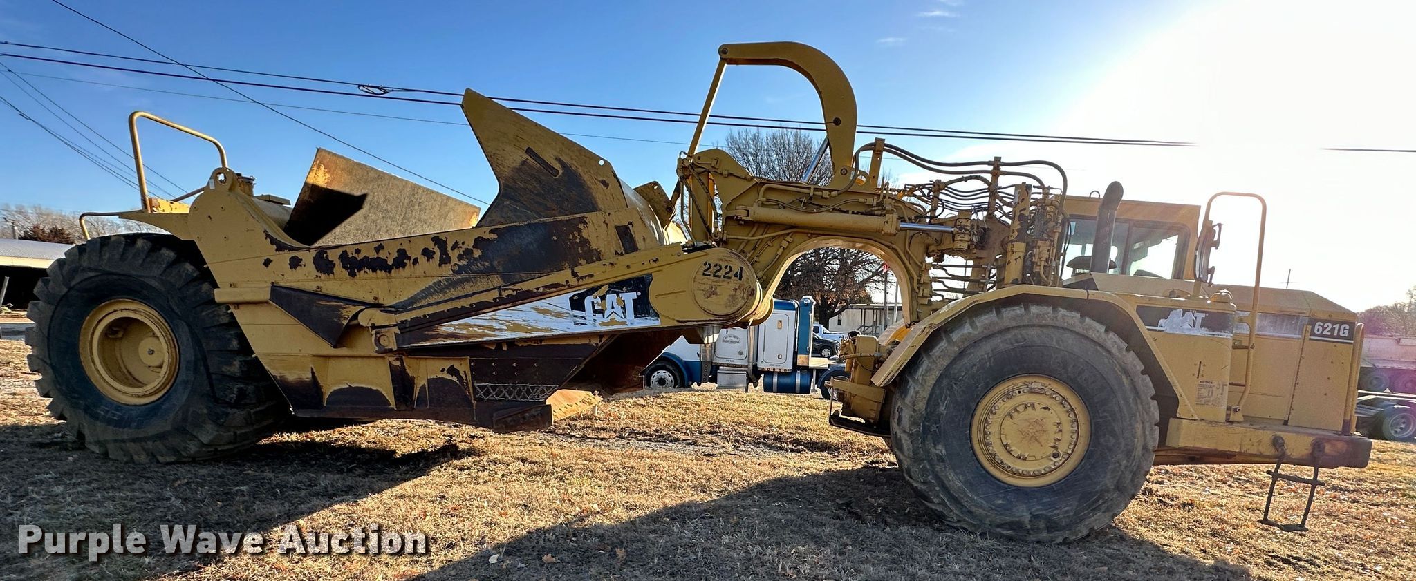 Purple Wave is selling a used Conventional Scraper in Kansas. This item is a 2003 Caterpillar 621G scraper with the following: Hours: 9,907 on meter, Serial: CAT0621GECEN00165