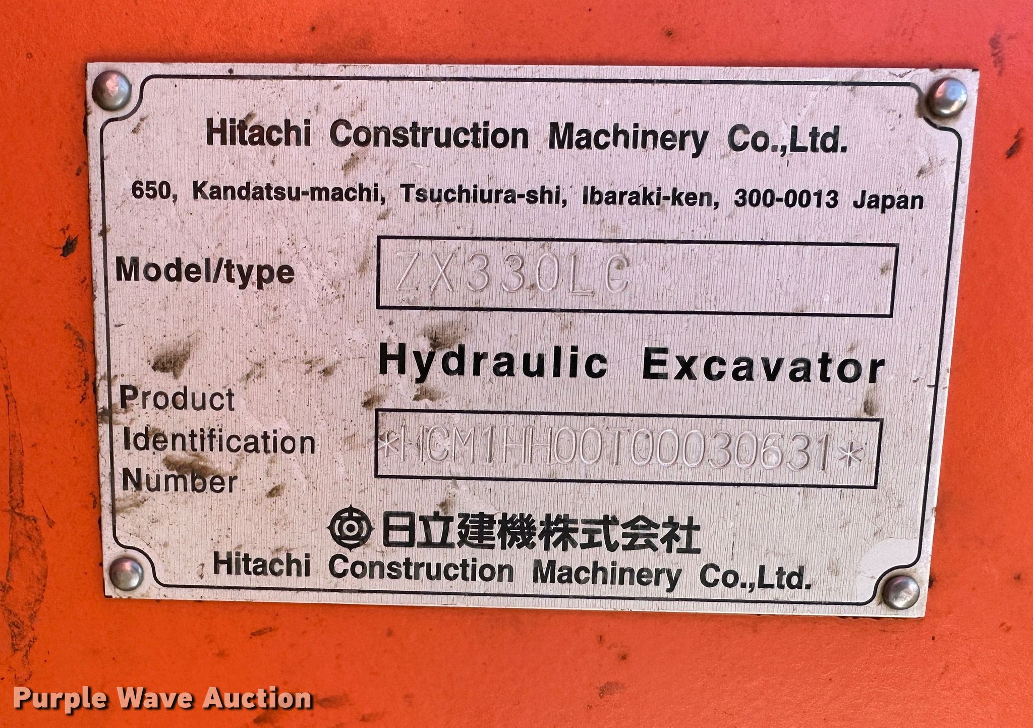 Purple Wave is selling a used Hydraulic Excavator in Kansas. This item is a 2002 Hitachi 330LC excavator with the following: Hours: 14,107 on meter, Serial: HCM1HH00T00030631