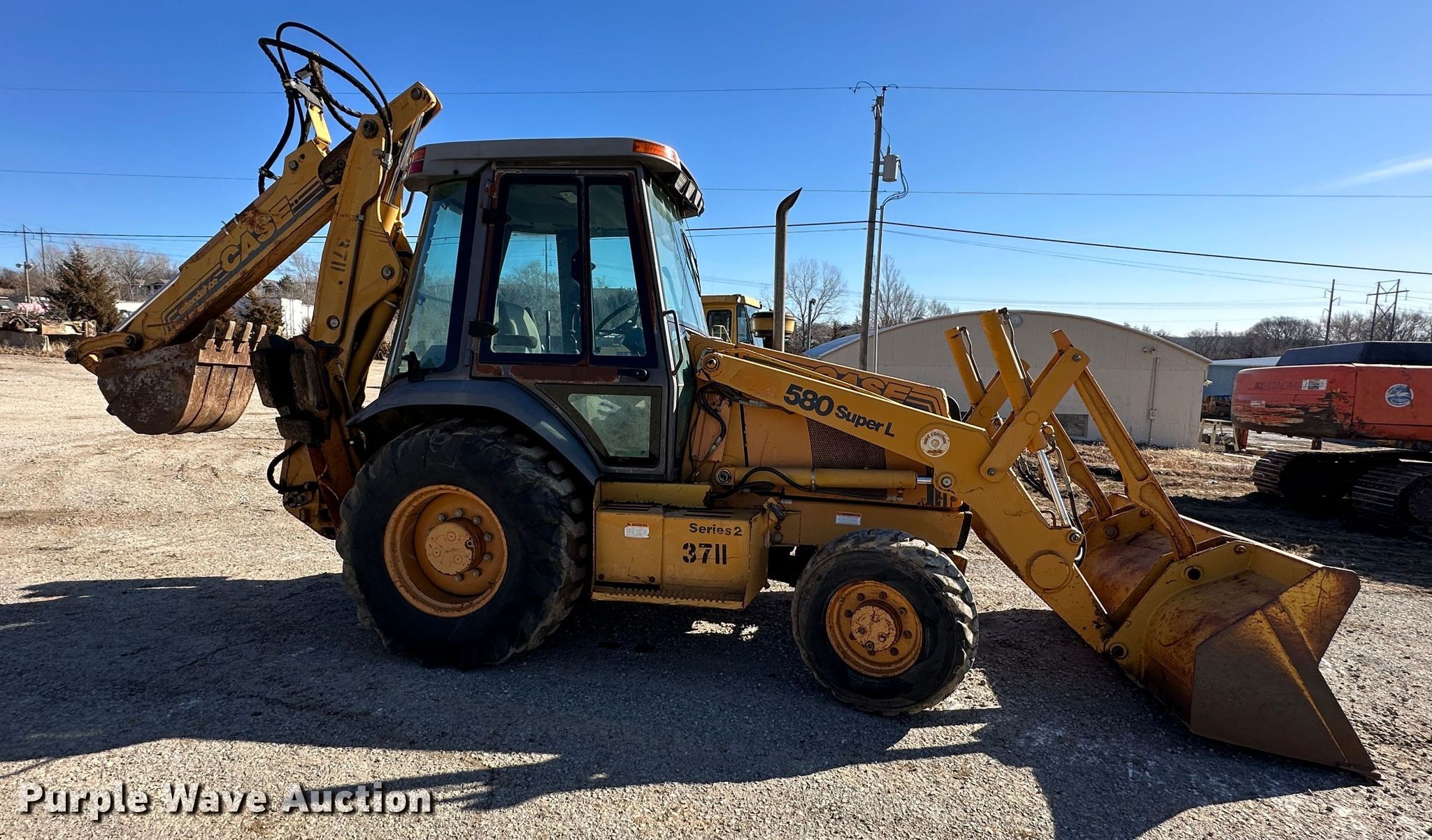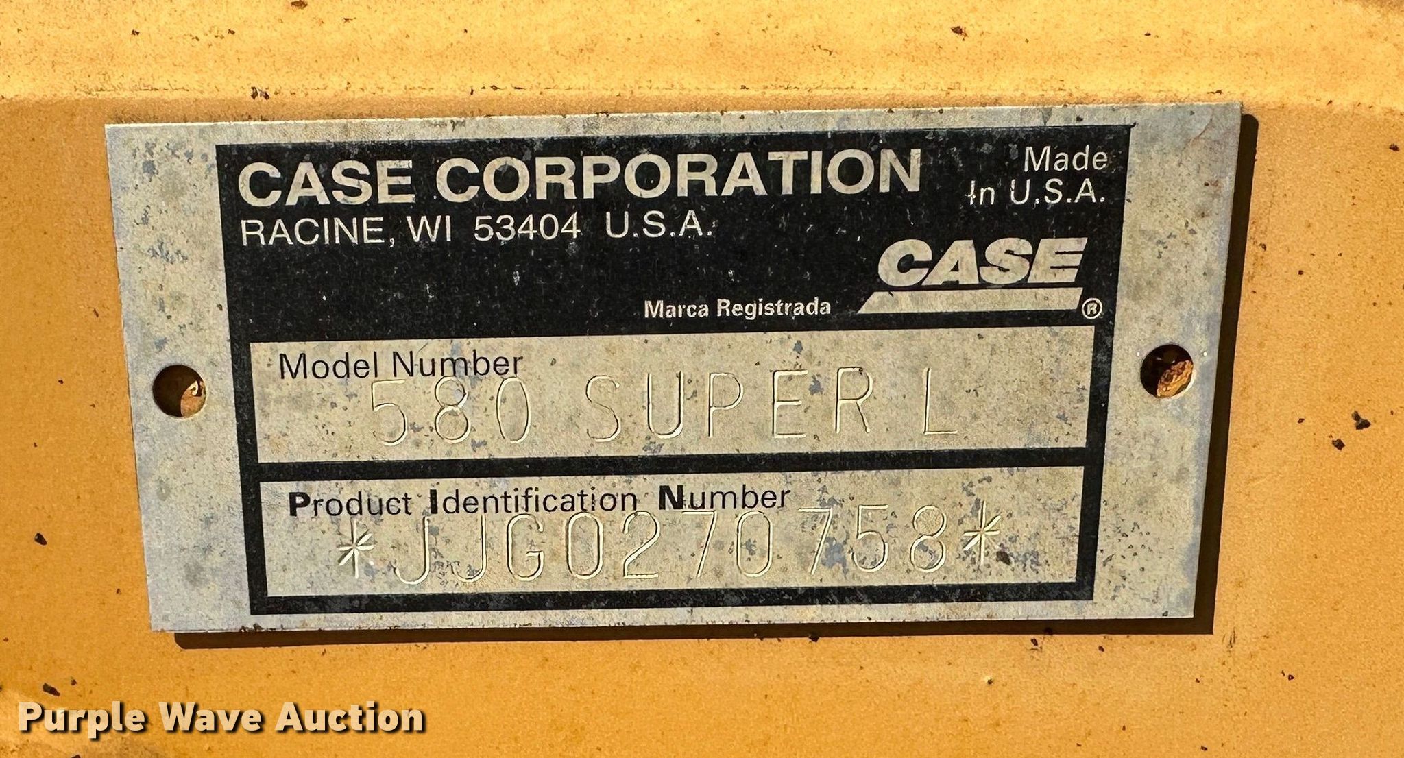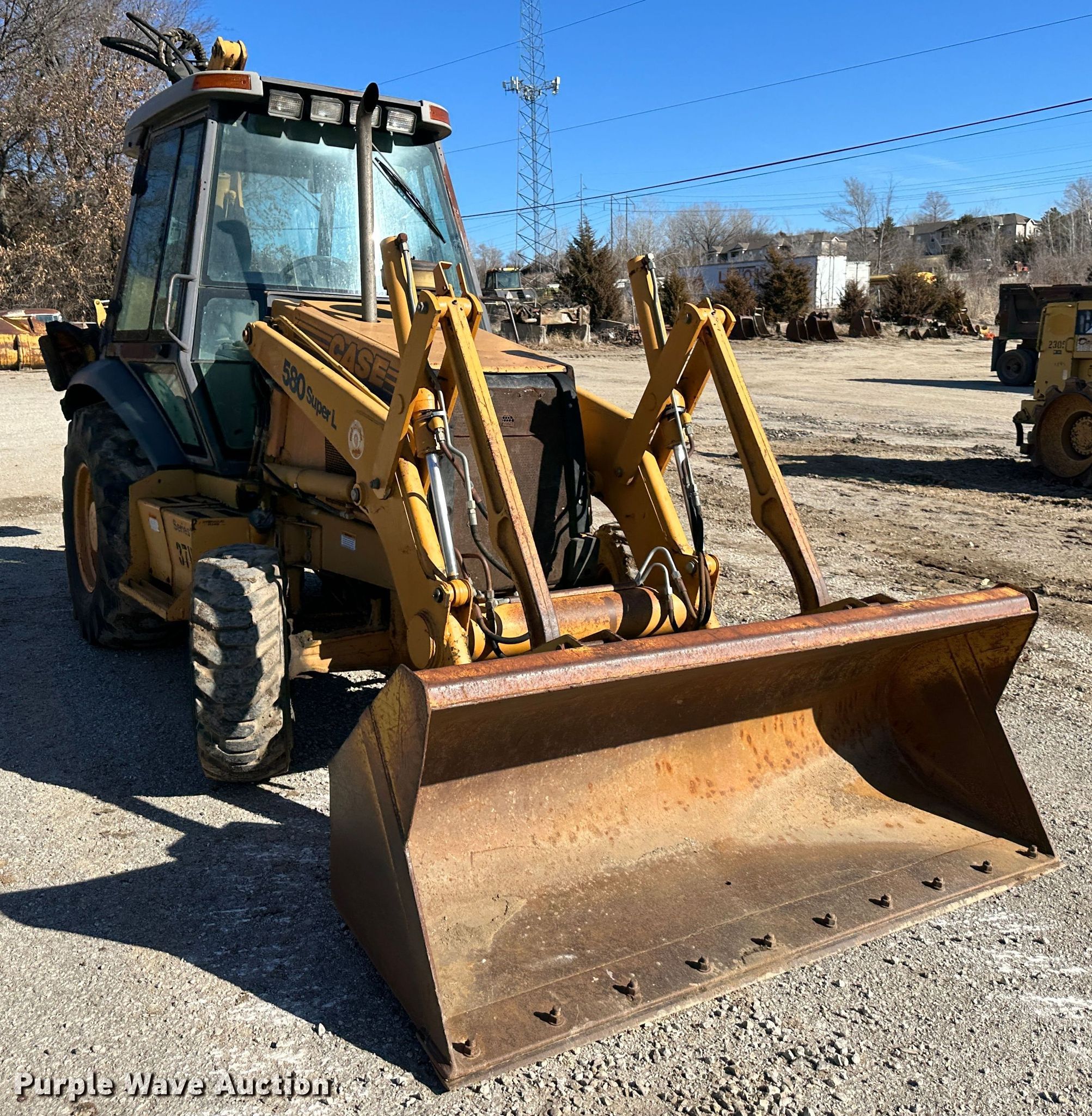 1999 Case 580 Super L II backhoe. Hours: 4,923 on meter, Serial: JJG0270758. Engine Cummins, Cylinders: 4, Fuel type: Diesel. Transmission Shuttle shift, 4F - 4R. Chassis Four wheel drive. Operators station Enclosed cab, AC, Heat, Backhoe controls: Four stick Foot control. Features Loader Bucket Width: 81", Cutting edge: Bolt-on, Backhoe Extendable stick, Auxiliary hydraulics, Bucket Width: 24", Cutting edge: Weld-on, Teeth: 5.. Tires Front: 12x16.5, Rear: 19.5L-24. Max Rieke & Brothers Inc.. 15400 Midland Dr. Shawnee, KS 66217