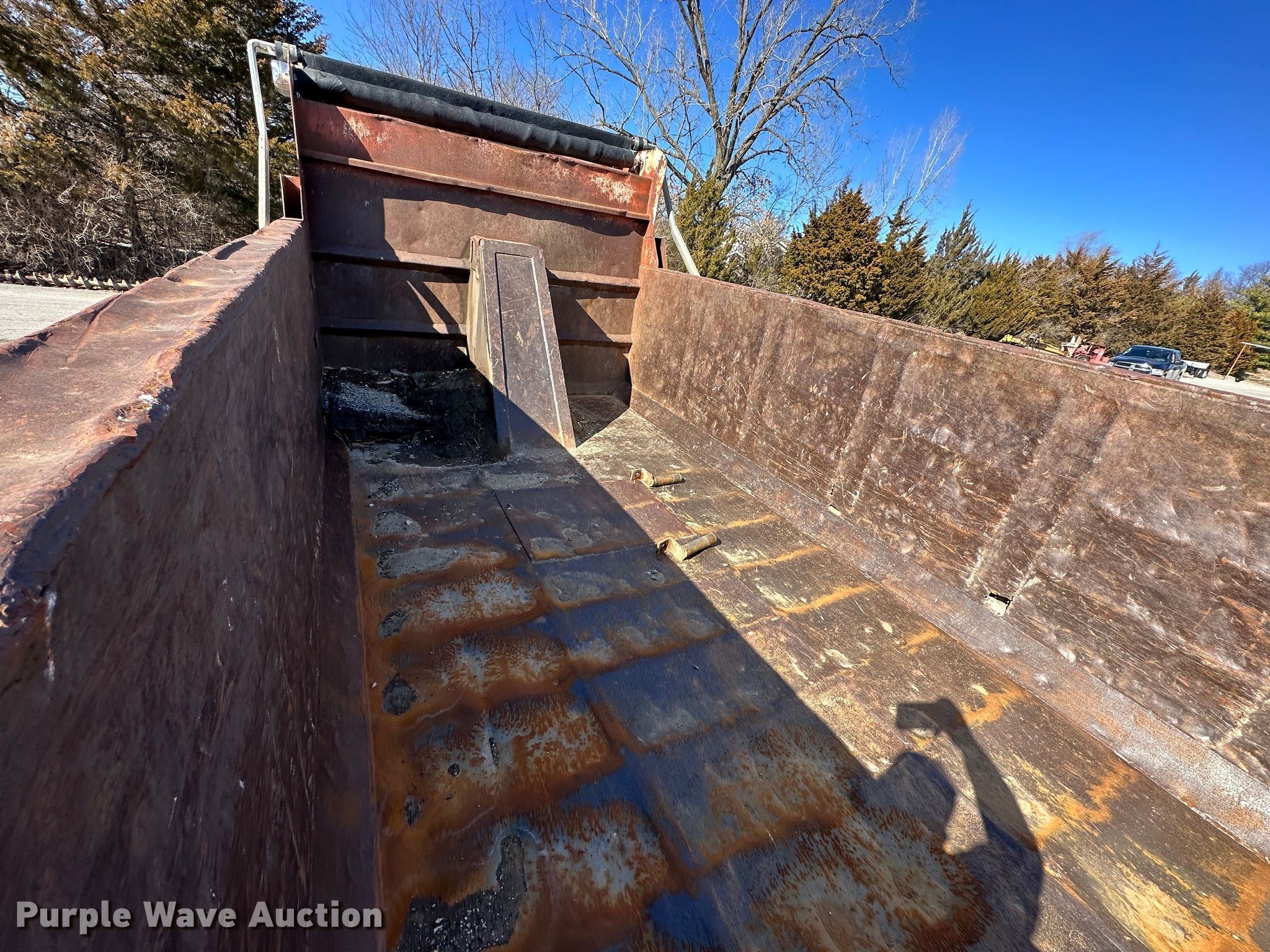 Purple Wave is selling a used Truck Part and Attach. in Kansas. This item is a Ox Bodies dump bed with the following: 17' L x 96" W, Side height: 46", Bed type: Steel, Roll tarp, End gate: Air operated