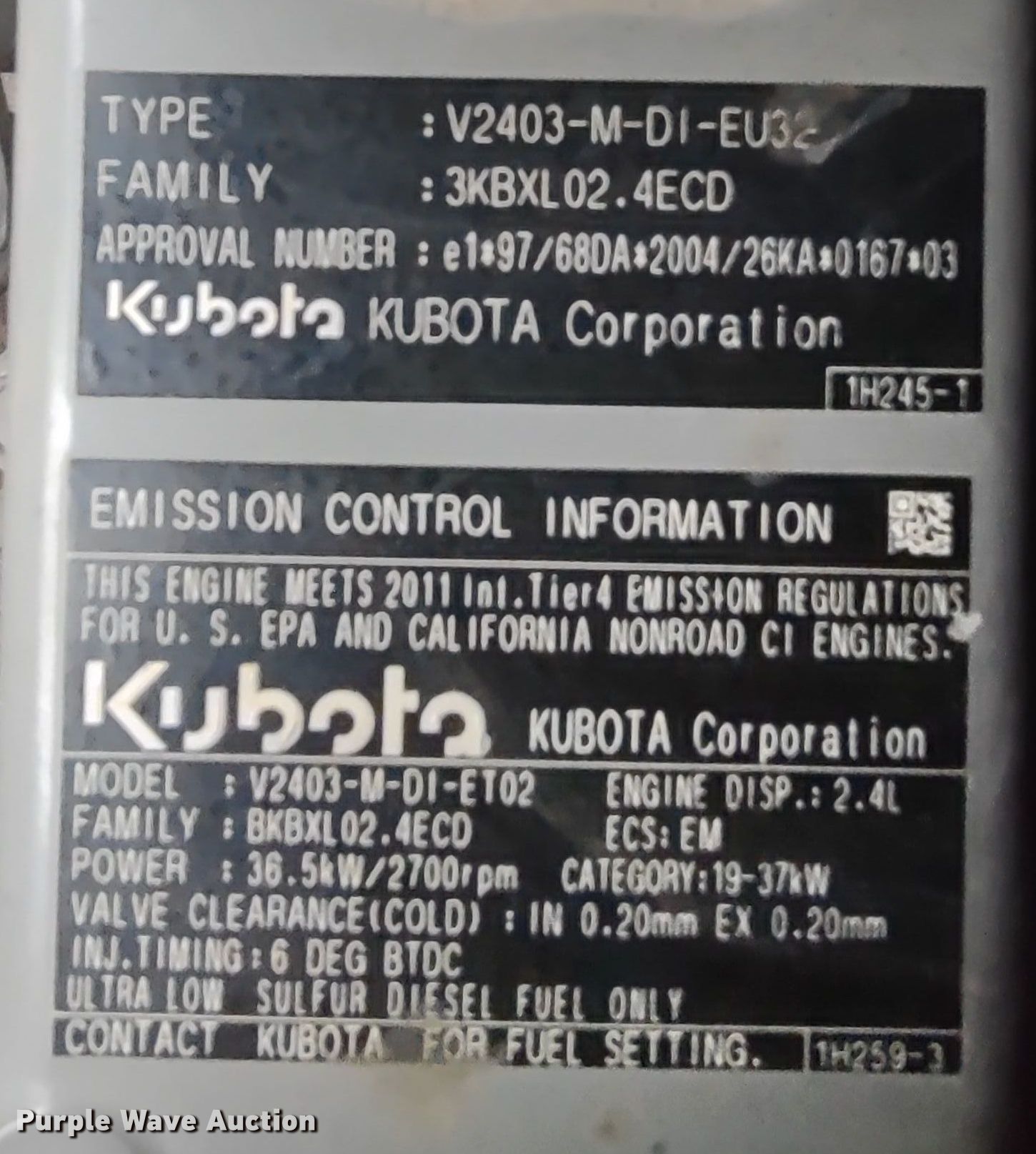 2012 Bobcat S175 skid steer loader. Hours: 2,127 on meter, Serial: A3L539464. Engine Kubota V2403-M-DI-ET02, Displacement: 2.4L, Cylinders: 4, Fuel type: Diesel. Transmission Two speed travel. Operators station OROPS, Bucket control: Hand, Foot, Pattern changer. Features Auxiliary hydraulics, Quick coupler: Manual, Bucket Width: 72", Teeth: Weld-on. Tires Solid. Gerken Rent-All. 31600 Old KC Rd. Paola, KS 66071