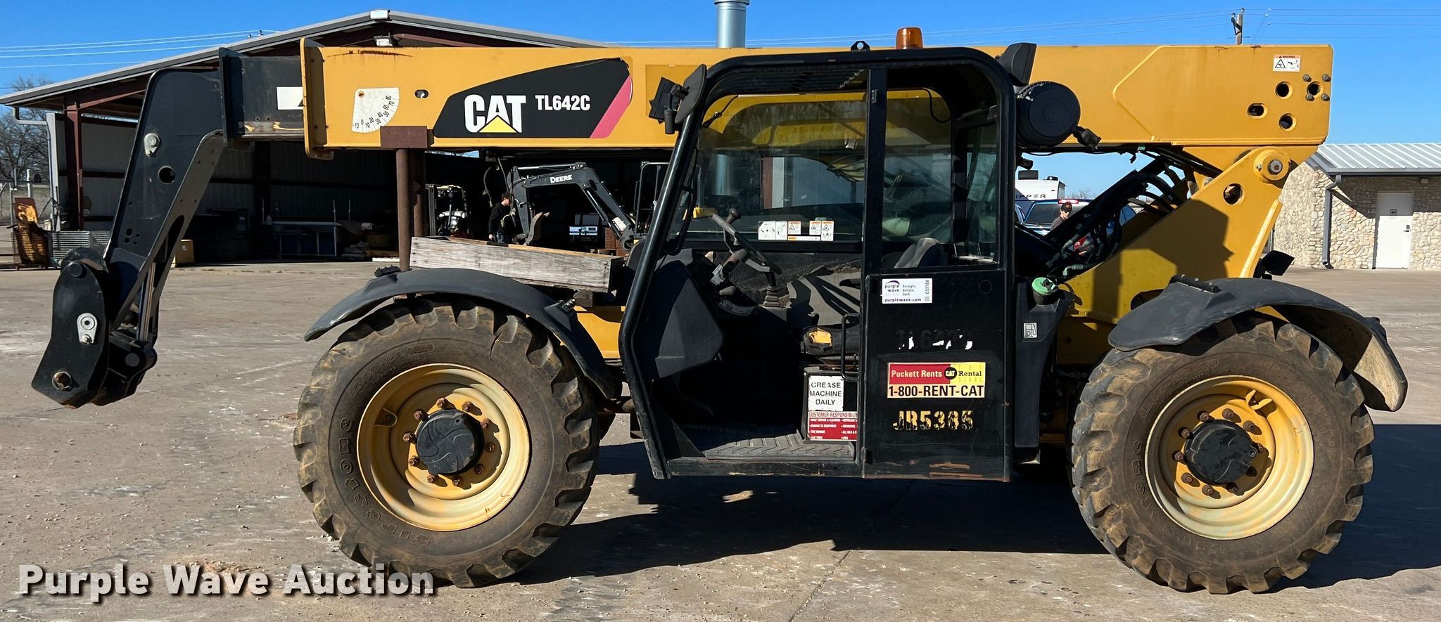 Purple Wave is selling a used Telehandler in Texas. This item is a 2014 Caterpillar TL642C telehandler with the following: Hours: 1,167 on meter, Serial: THG01001