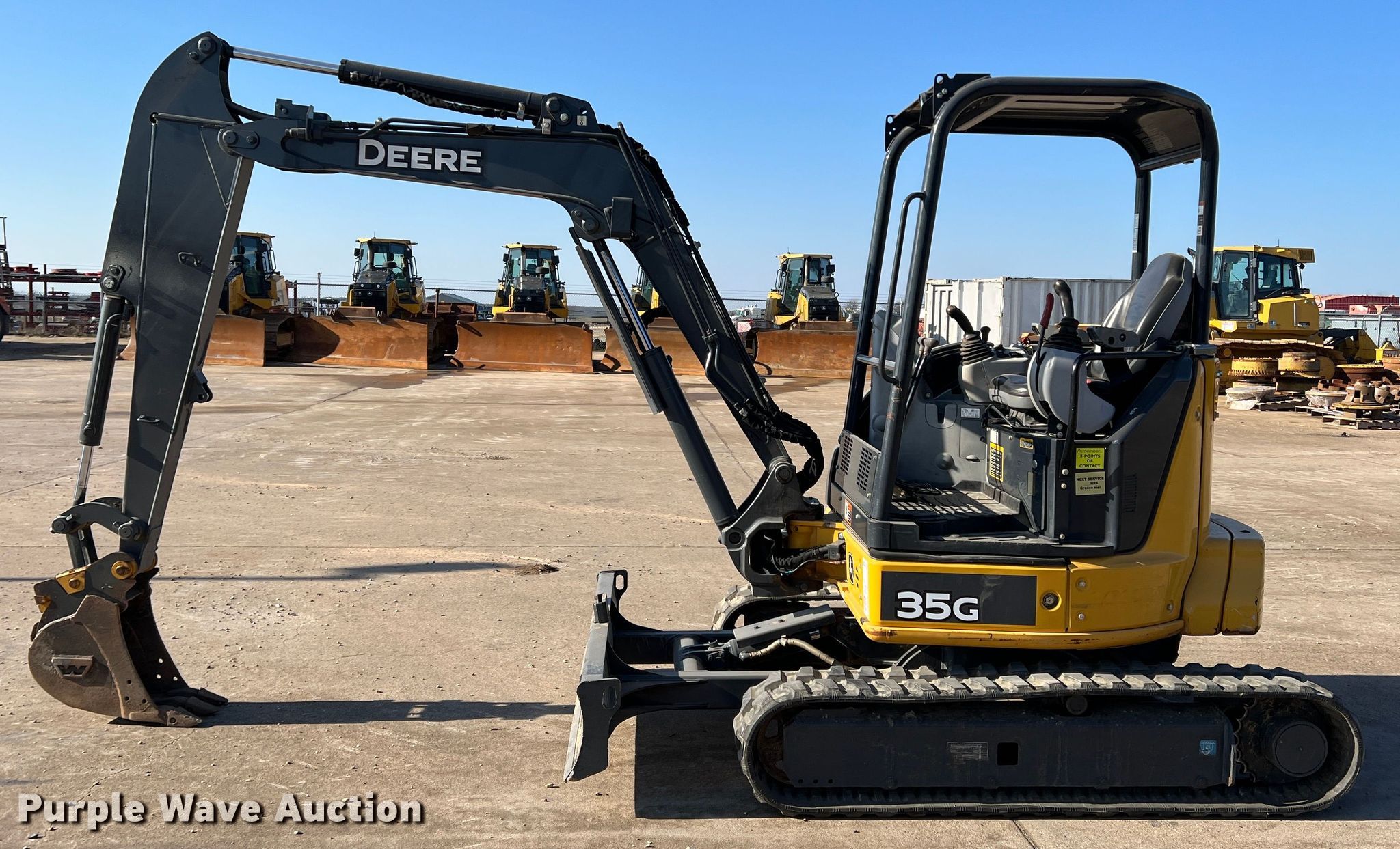 Purple Wave is selling a used Mini Excavator in Texas. This item is a 2019 John Deere 35G mini excavator with the following: Hours: 1,211 on meter, Serial: 1FF035GXKKK285407