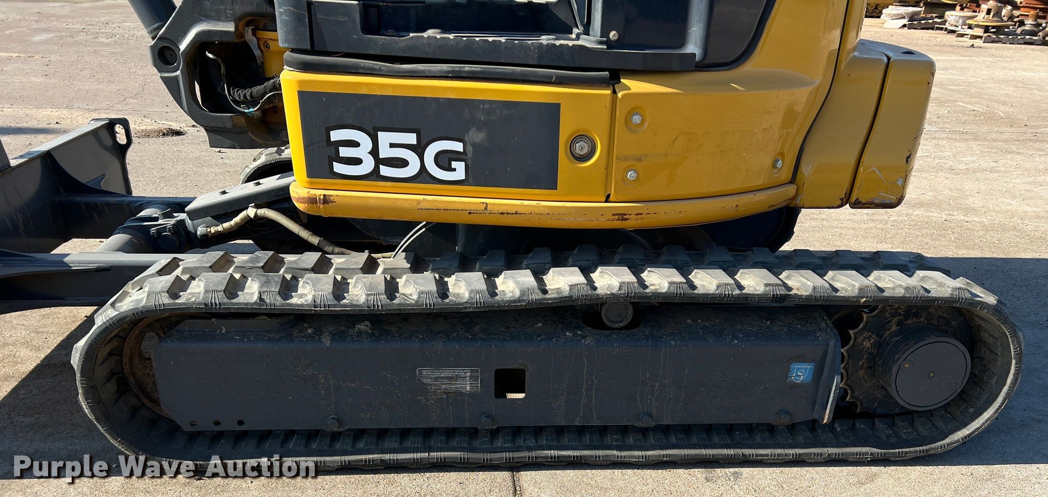 2019 John Deere 35G mini excavator. Hours: 1,211 on meter, Serial: 1FF035GXKKK285407. Engine Yanmar 3TNV88F-EFHB, Cylinders: 3, Fuel type: Diesel. Transmission Hydrostatic, Two speed travel. Operators station OROPS, Pattern changer. Features Auxiliary hydraulics, Counter weights, Backfill blade Width: 68", Boom Swing, Stick Stick length: 62", Quick coupler: Mechanical, Bucket Width: 12", Teeth: 3. Tracks Width: 12", Rubber. Howard Equipment Company. 1310 N Cresson Hwy. Cresson, TX 76035