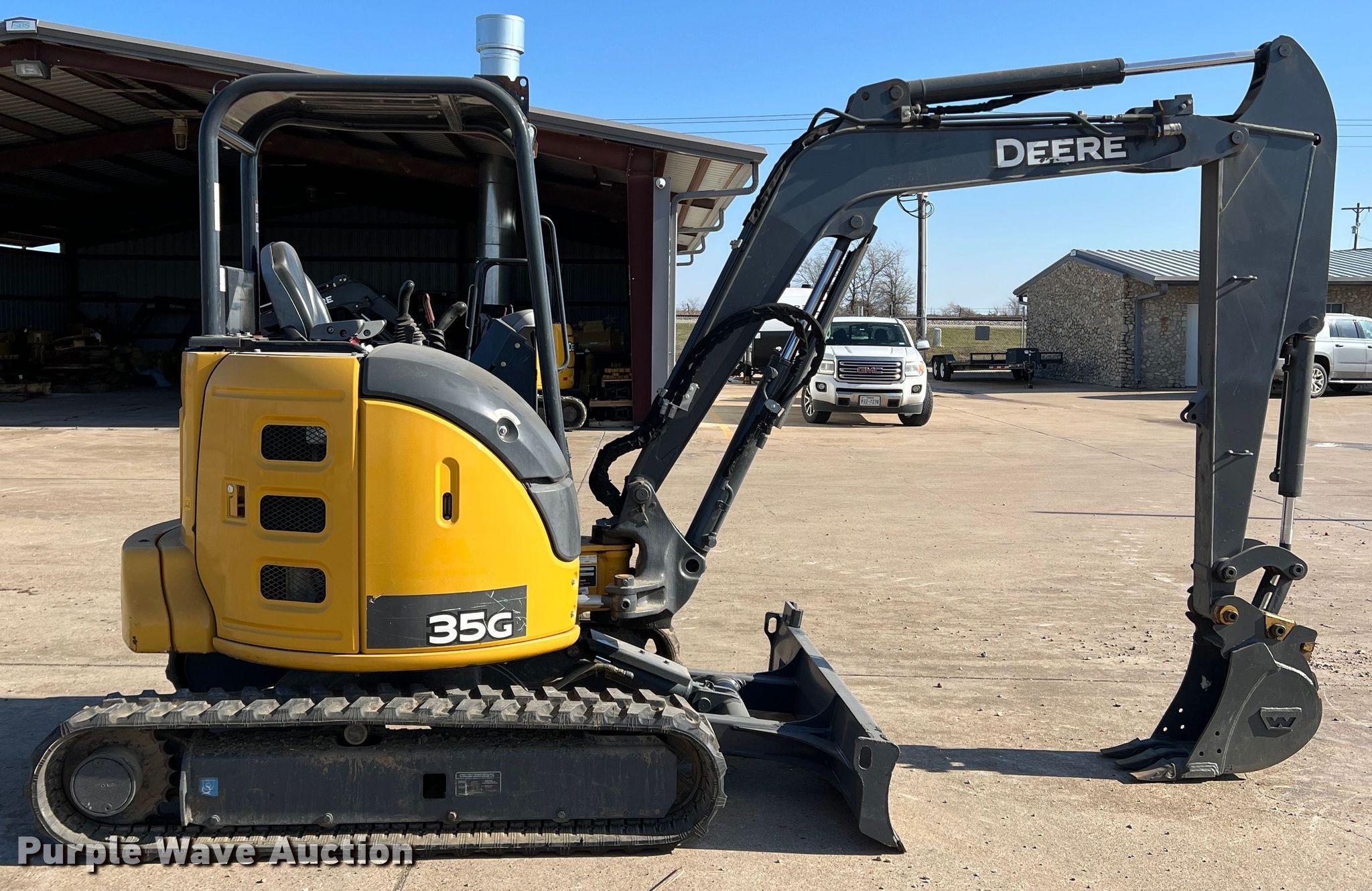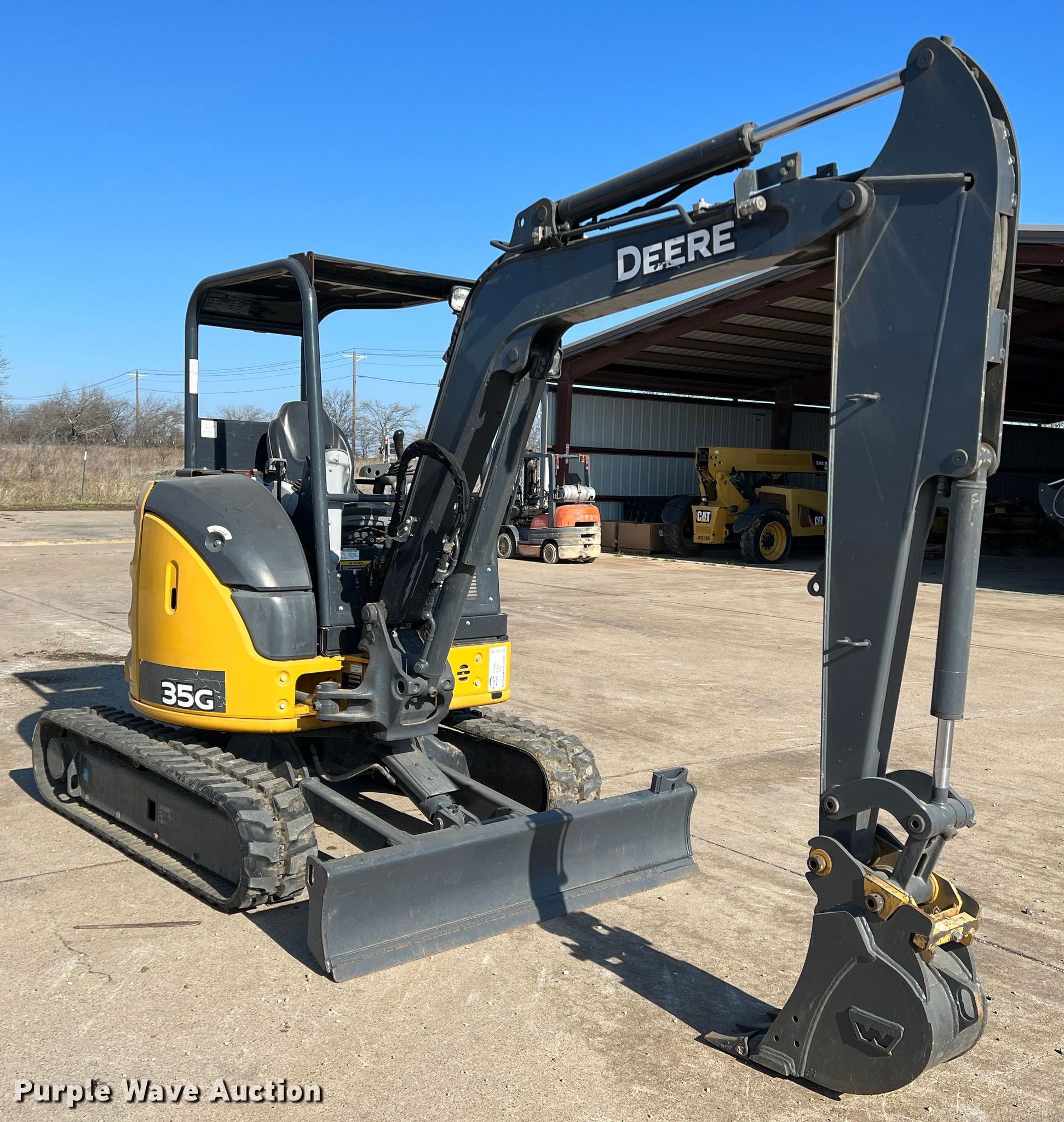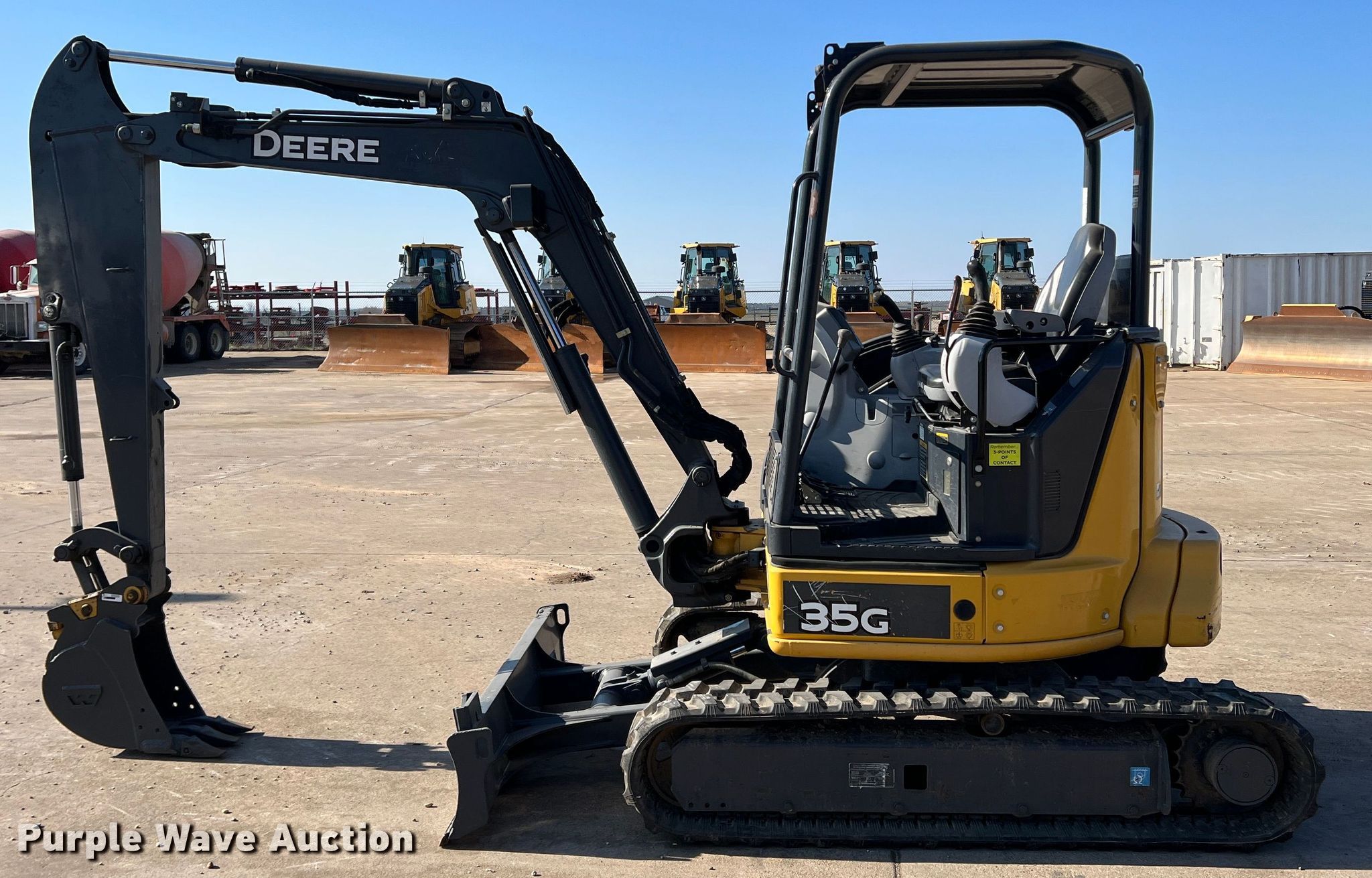 Purple Wave is selling a used Mini Excavator in Texas. This item is a 2019 John Deere 35G mini excavator with the following: Hours: 1,184 on meter, Serial: 1FF035GXCKK285233