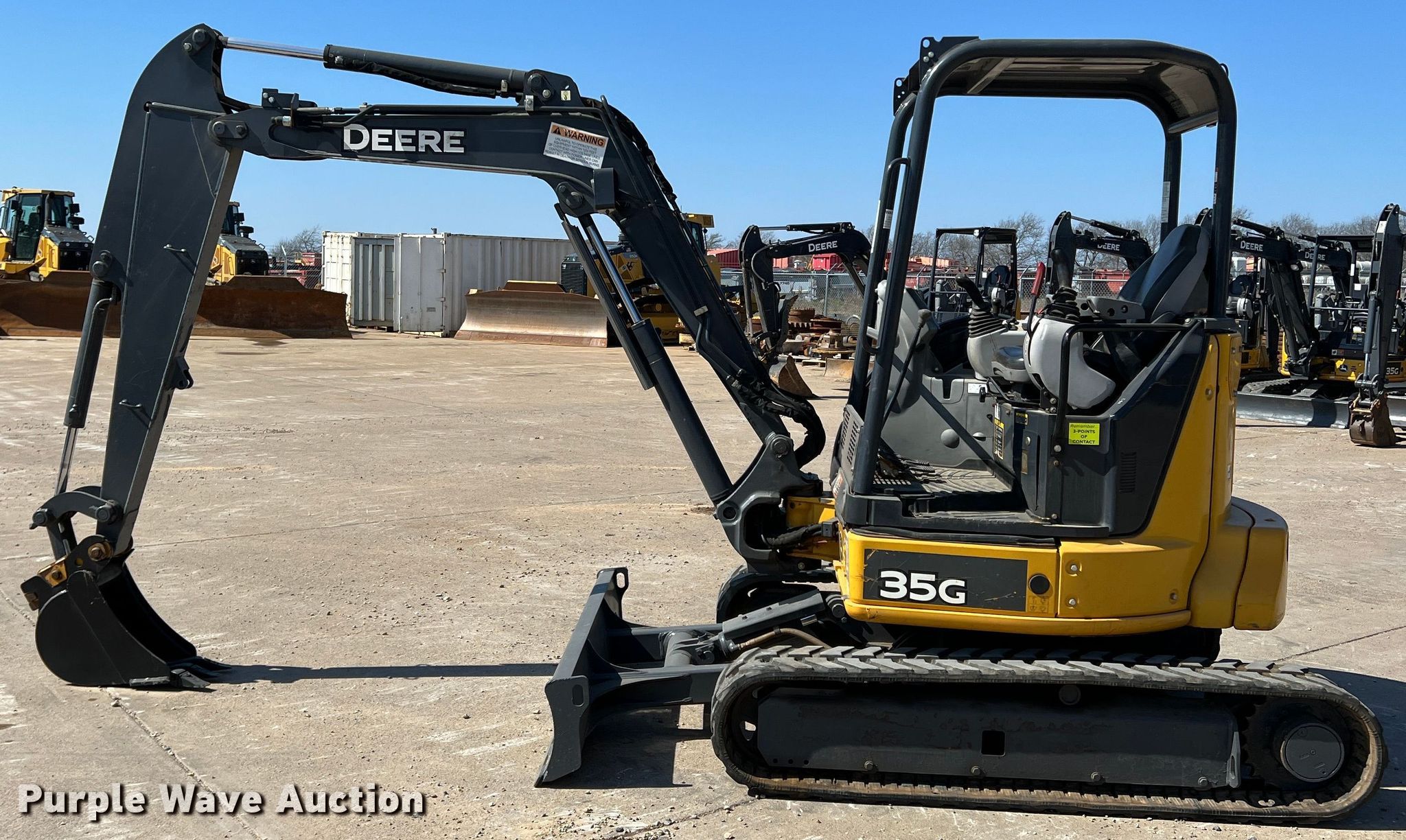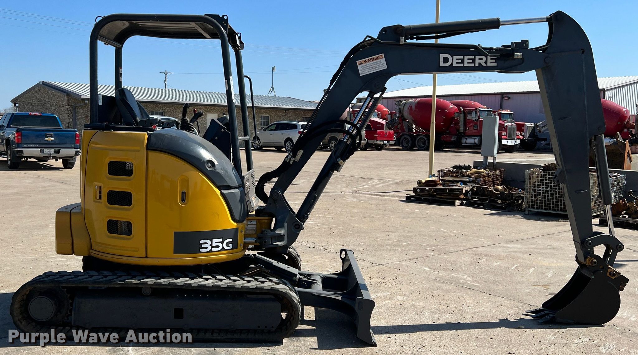 Purple Wave is selling a used Mini Excavator in Texas. This item is a 2019 John Deere 35G mini excavator with the following: Hours: 2,106 on meter, Serial: 1FF035GXEJK284928