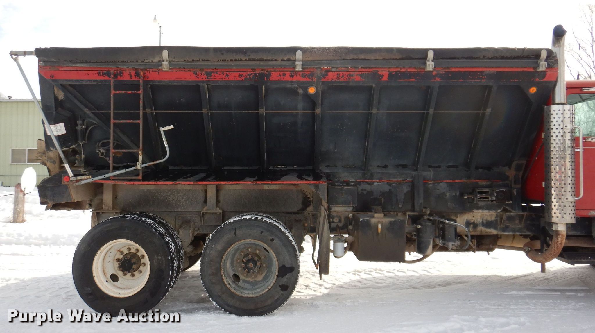 1995 Mack RD688S pothole patcher truck. Miles: 468,329 on odometer, Hours: 34,595 on meter, VIN: 1M2P267C4SM021730. Engine Mack E7-350, Serial: 4U2603, Displacement: 12.0L, Cylinders: 6, Fuel type: Diesel, HP: 350. Transmission Mack Maxitorque, Manual, Speed: 9. Chassis Axles: Tandem, Suspension: Air Dump valves, Brakes: Air, PTO. Interior AC, Heat, Heated mirrors, Power passenger window, Cruise control. Features Asphalt hopper Length: 17', Roll tarp, Conveyor belt Width: 22".. Tires Front: 385/65R22.5, Rear: 11R22.5. Iowa title. Title distribution may be delayed up to 14 days from verification of funds. Blacktop Service Co.. 1648 Hwy 169. Fort Dodge, IA 50501