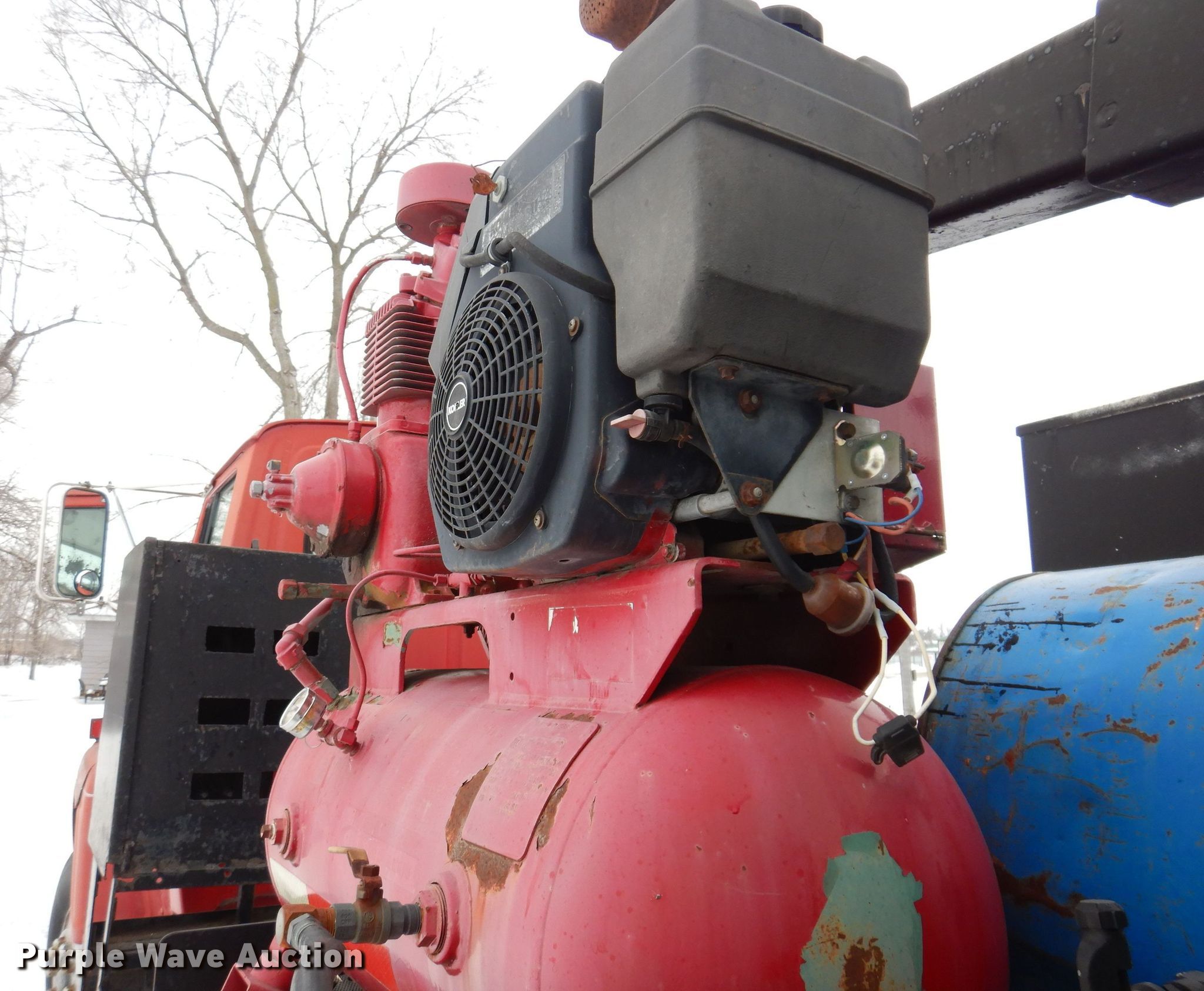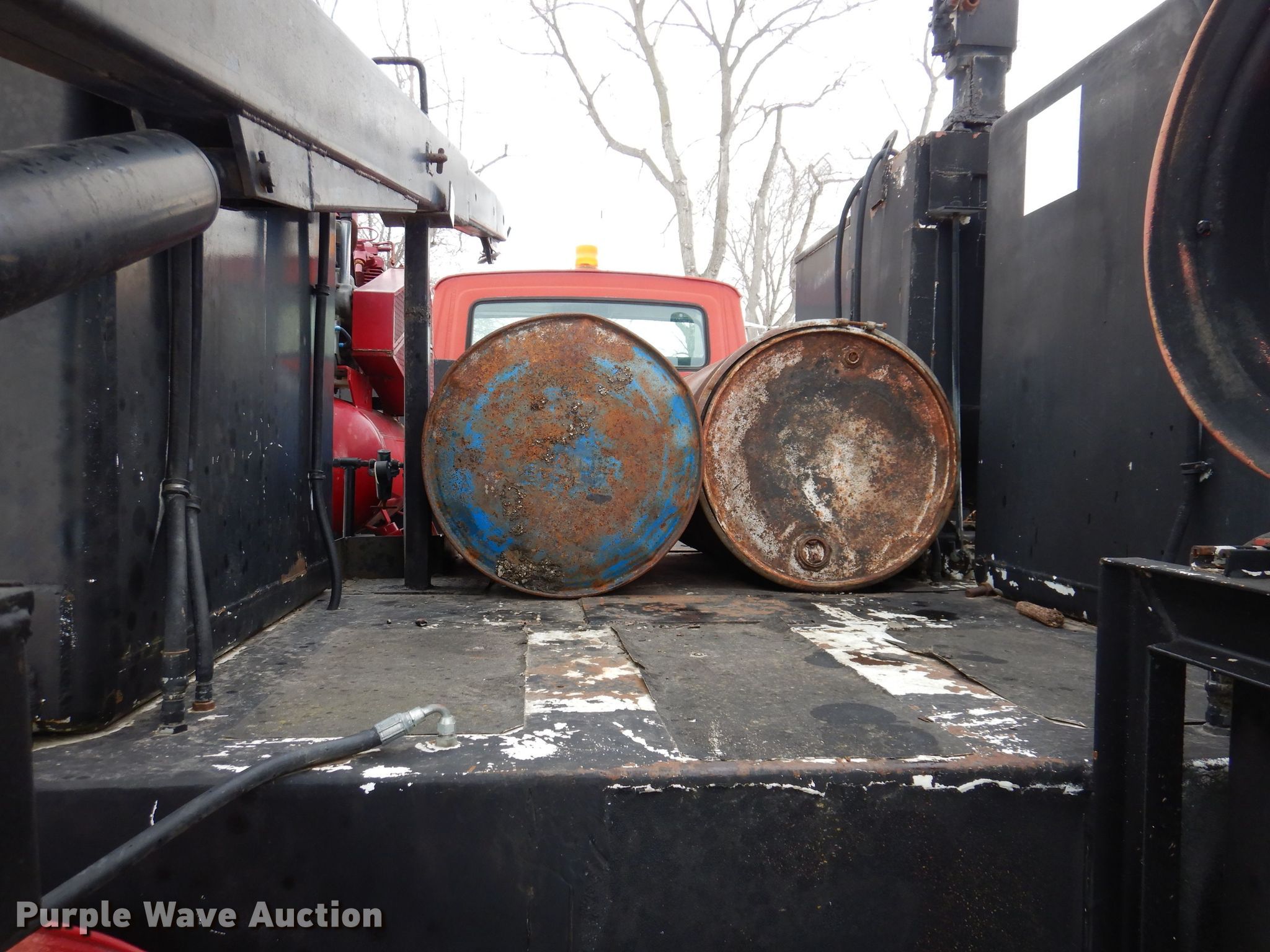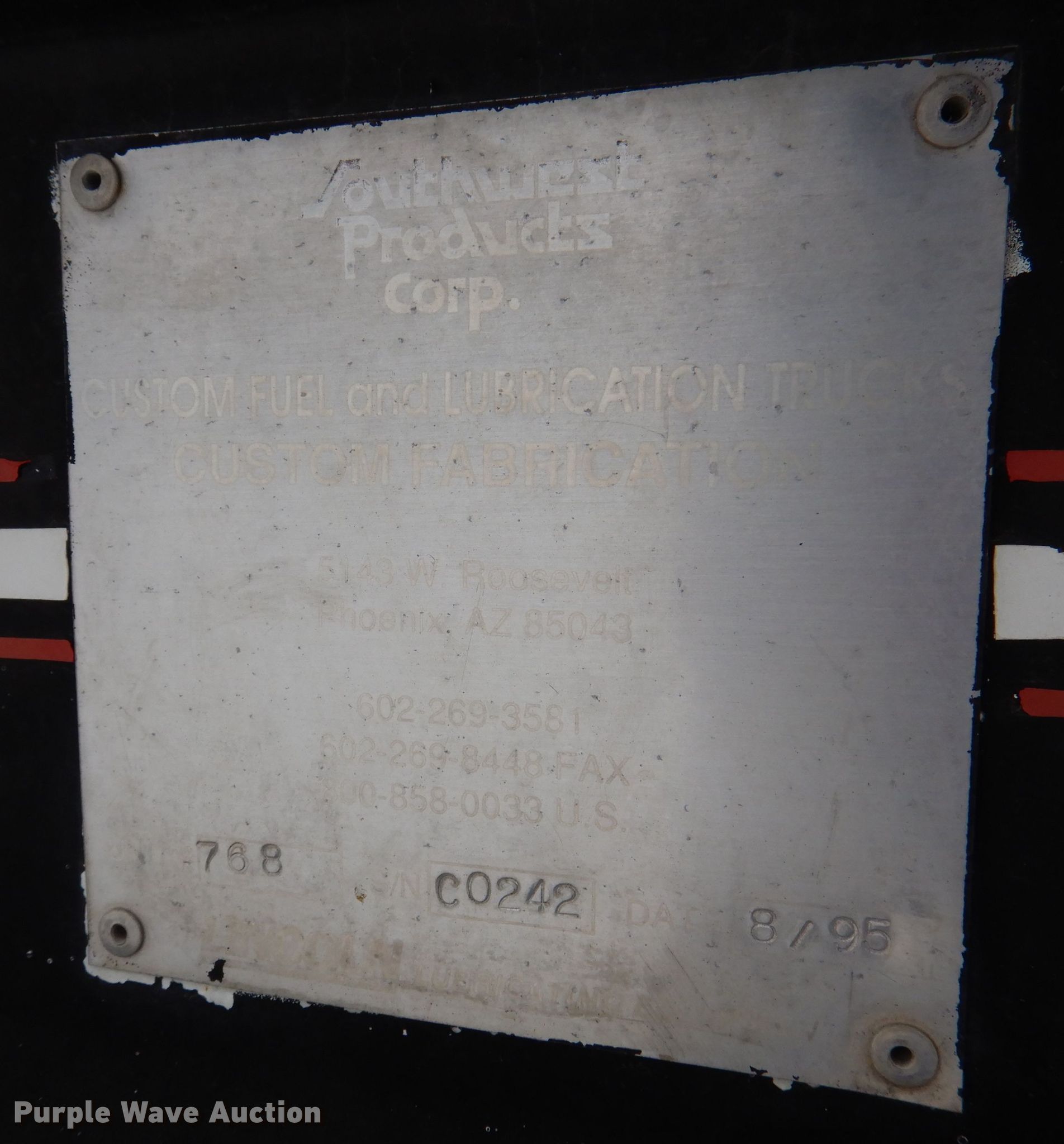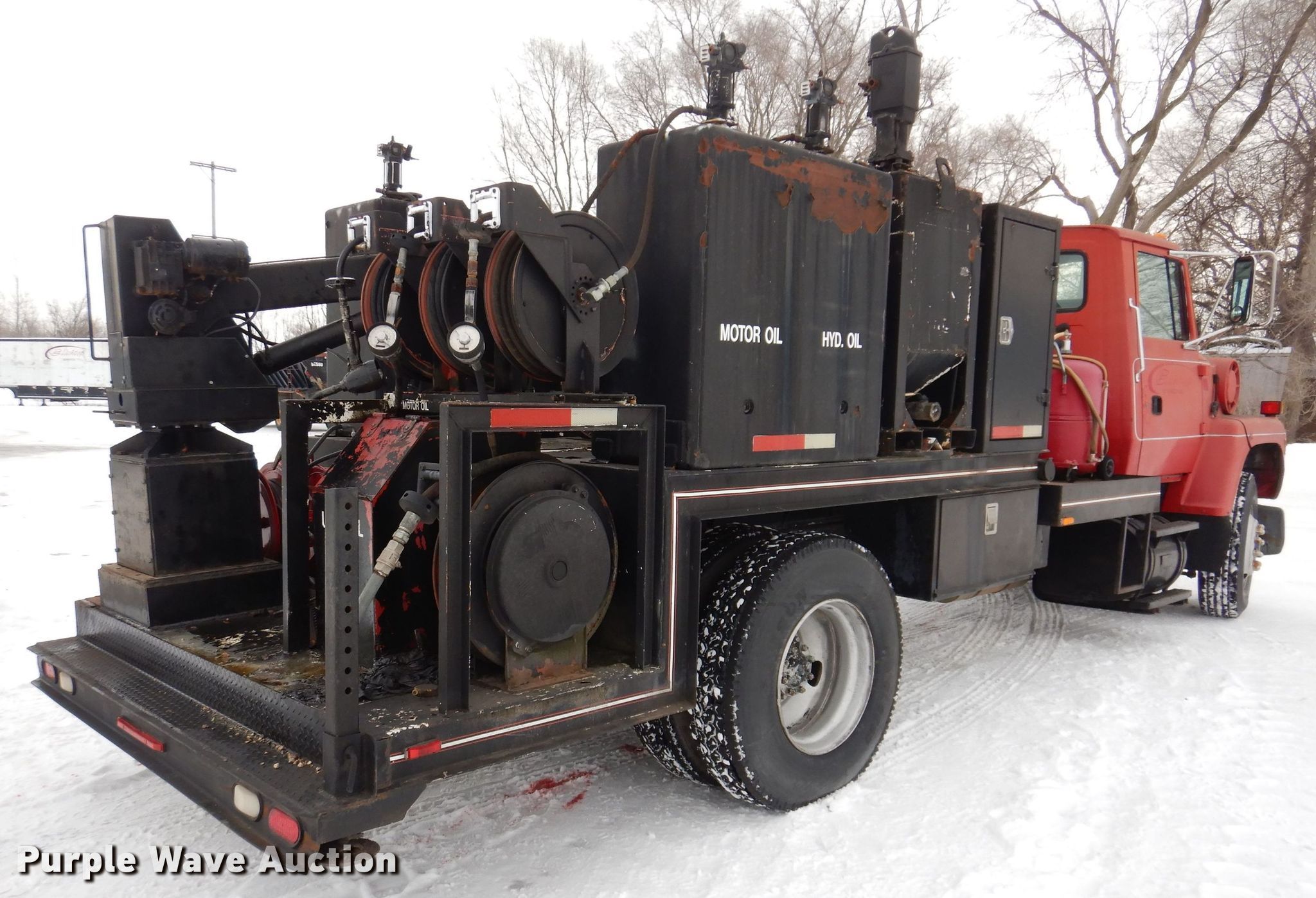1991 Ford L7000 fuel / lube truck. Miles: 428,078 on odometer, VIN: 1FDPR72P9MVA26365. Engine Serial: VX088100, Displacement: 6.6L, Cylinders: 6, Fuel type: Diesel. Transmission Manual, Speed: 6. Chassis Axles: Single, Suspension: Spring, Brakes: Hydraulic, GVWR: 30,000 lbs, Wheelbase: 246". Interior AC, Heat, Brake controller. Features Bed / tank Southwest Products Corp. 768, Serial: C0242, 12' L x 96" W, Compartments: 4, Hose reels: 4, Nozzles, Oil/lube reservoirs Hydraulic fluid, Motor oil, Used oil, Champion air compressor Kohler Command 11 single cylinder gas engine, Hose reels: 2, Crane, Sand blaster, Torch rack. Tires Size: 11R22.5. Notes Unknown operating condition of air compressor, Dash warning indicator: Brake, Rear end leak, Unknown operating condition of sand blaster. Iowa title. Title distribution may be delayed up to 14 days from verification of funds. Blacktop Service Co.. 1648 Hwy 169. Fort Dodge, IA 50501