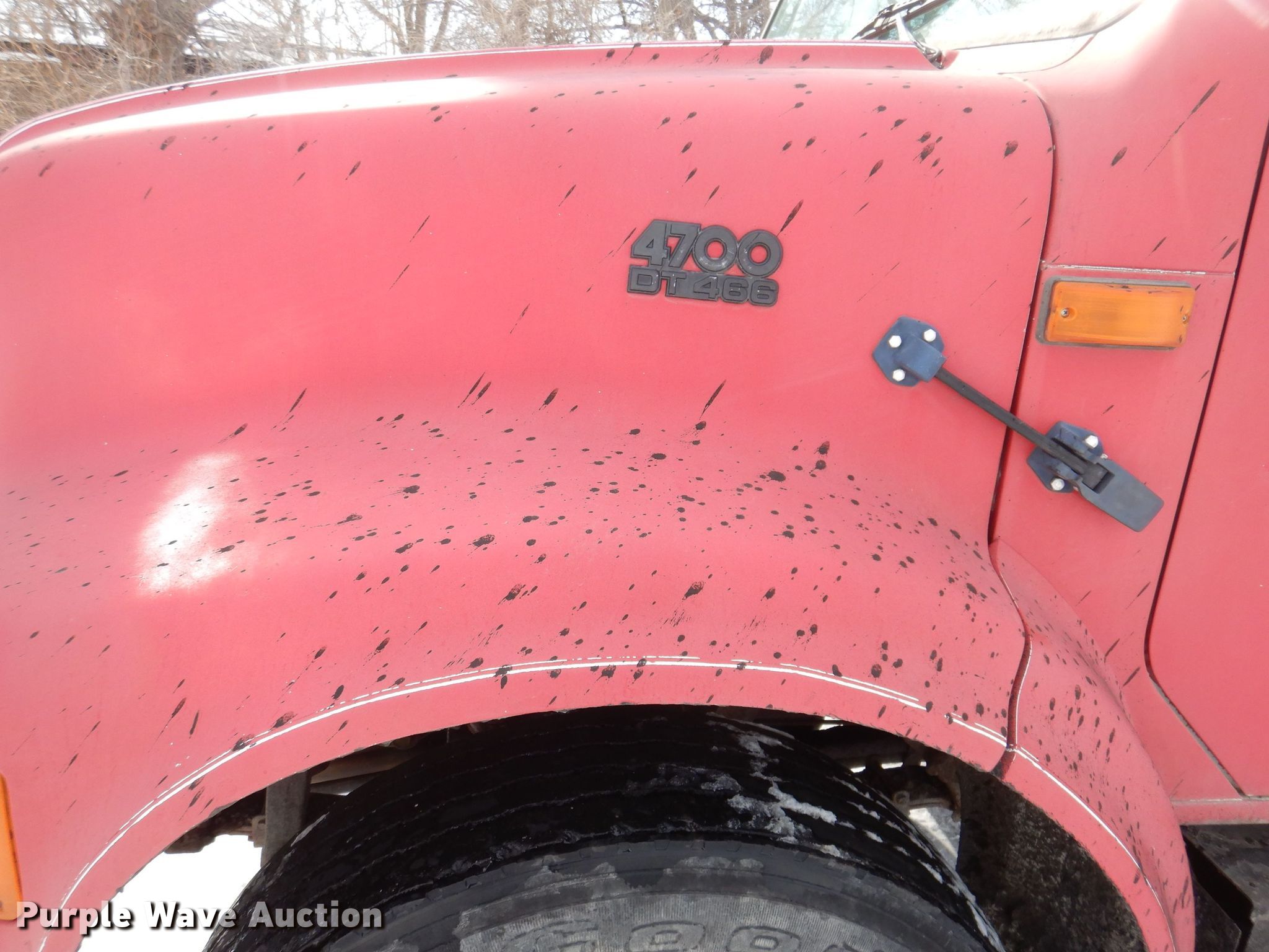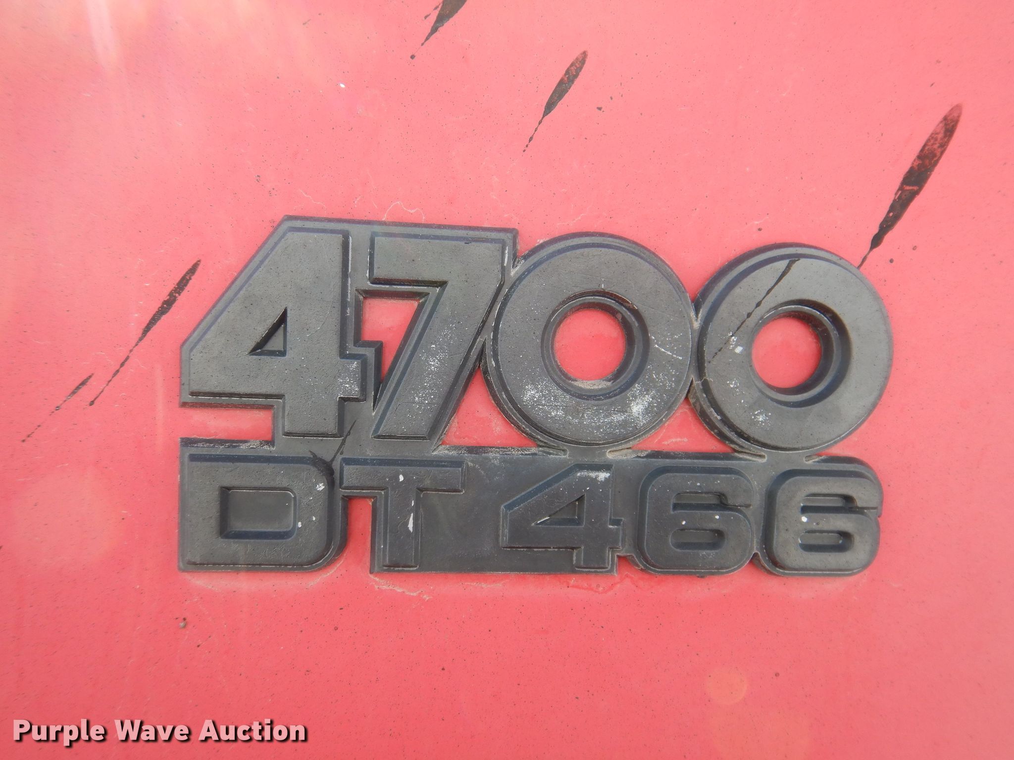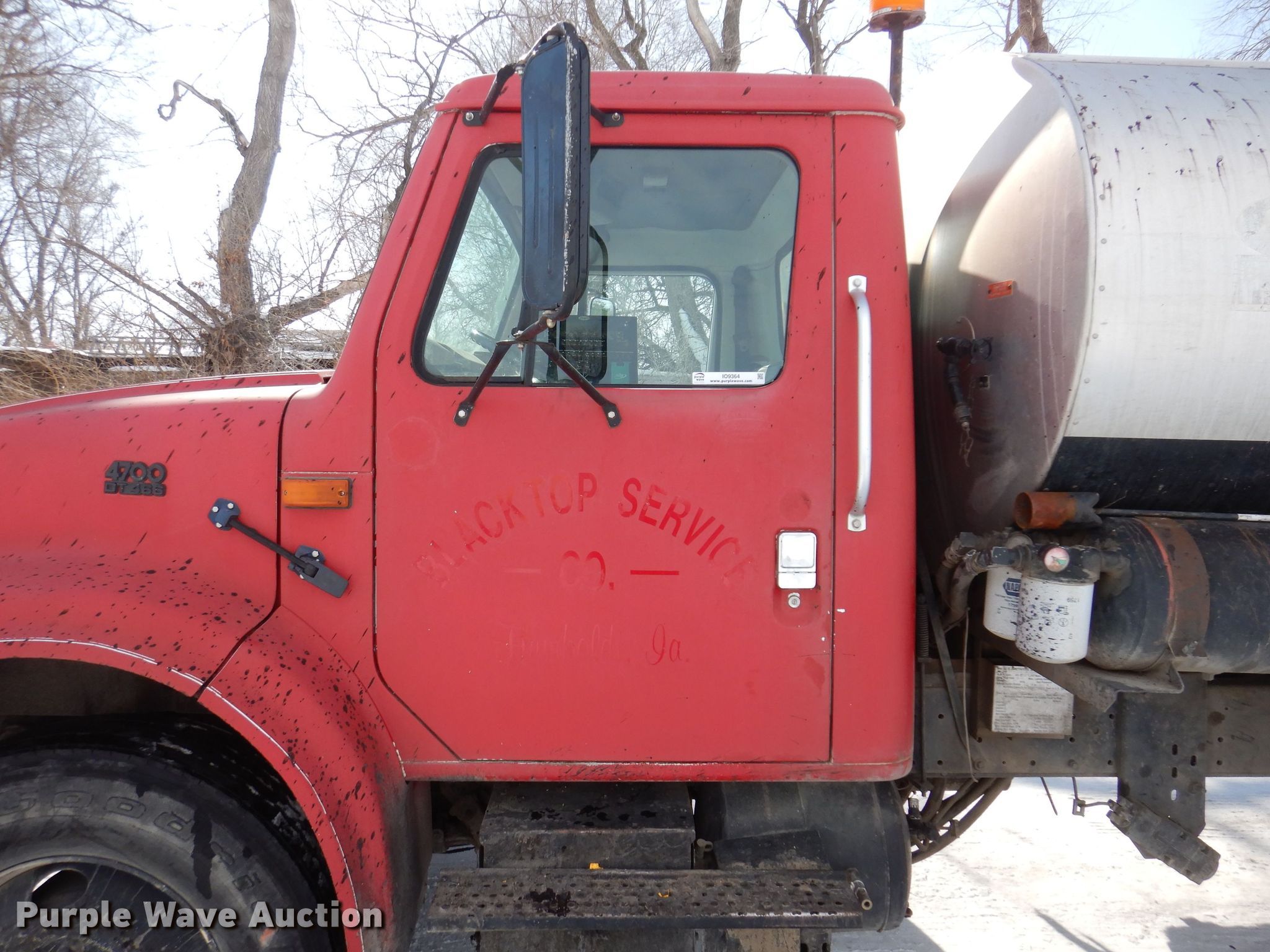 1996 International 4700 oil distributor truck. Miles: 16,367 on odometer, VIN: 1HTSCAAN1TH308111. Engine International DT466, Displacement: 7.6L, Cylinders: 6, Fuel type: Diesel. Transmission Spicer, Manual, Speed: 5, plus 2. Chassis Axles: Single, Suspension: Spring, Brakes: Air, PTO, GVWR: 33,000 lbs, Wheelbase: 188". Interior Heat, Auxiliary controls. Features Bed / tank Etnyre 8-2000, Serial: S-1738, Capacity: 2,000 gallons, 17' L x 96" W, Burner: LPG, Heat rating: 500 degrees, In-cab controls, Spray wand, Spray boom Width: 12', Folding, Nozzles: 36.. Tires Size: 11R22.5. Notes Air leak. Iowa title. Mileage has not been verified. Exempt will be written in the odometer disclosure on the title. Title distribution may be delayed up to 14 days from verification of funds. Blacktop Service Co.. 1648 Hwy 169. Fort Dodge, IA 50501