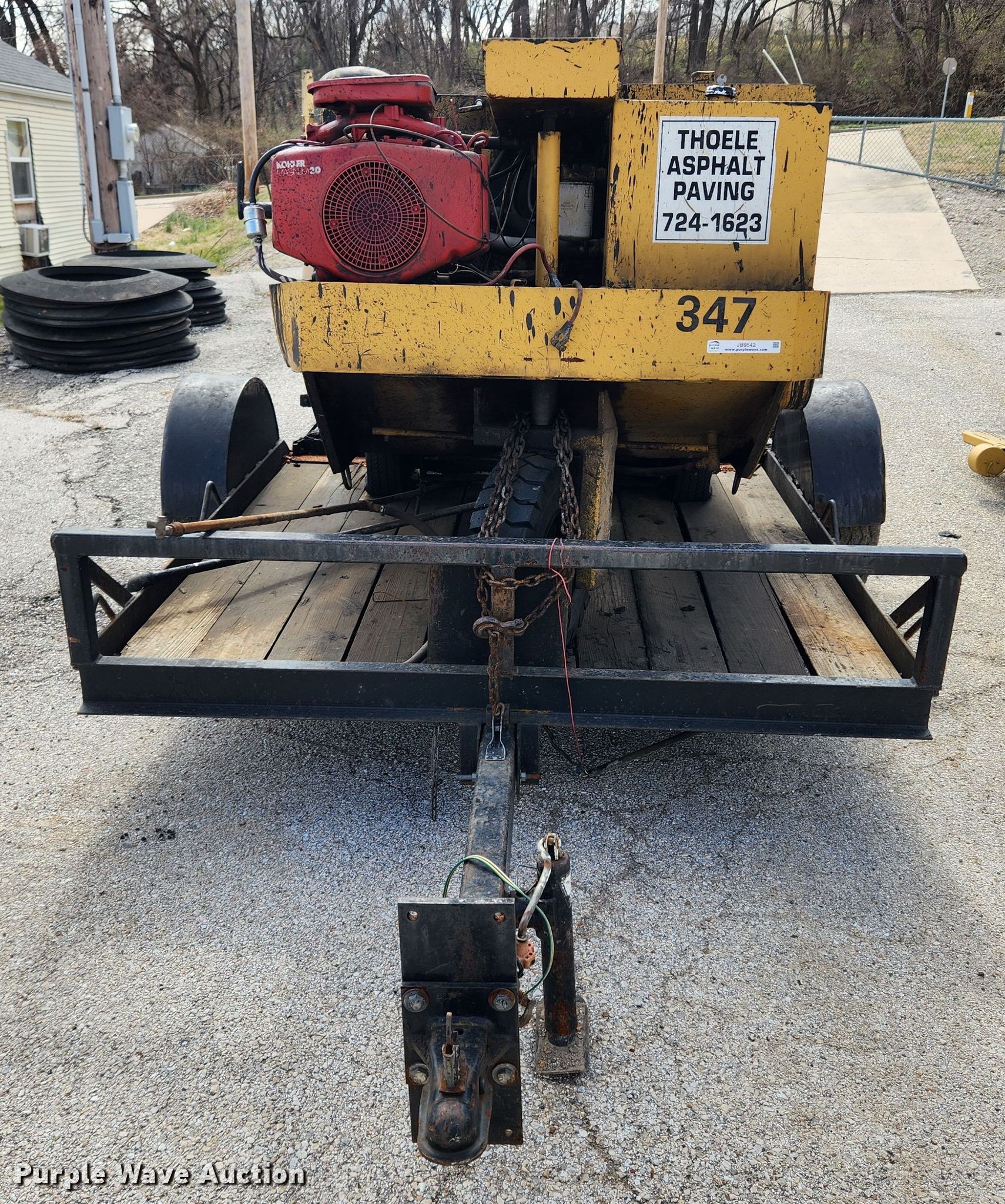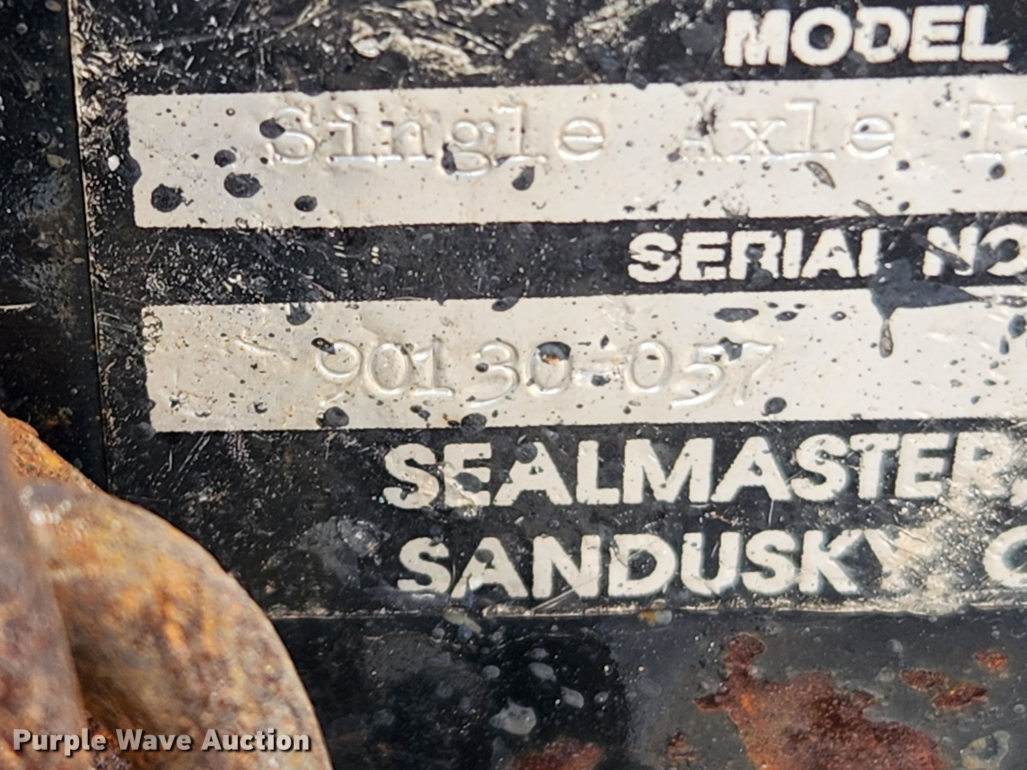 Seal Master sealcoat squeegee machine. Engine. Kohler Magnum20, Cylinders: 2, Fuel type: Gas. Transmission Hydrostatic. Features Squeegee width: 7'. Tires Front: 6.00-9, Rear: 5.70-8. Notes Flat tires, Unknown operating condition. Trailers Overall: 16' L x 95" W, Deck: 12' L x 75" W. Features Deck type: Wood. Chassis Landing gear: Single, Suspension: Spring. Tires Steel wheels, Size: 8-14.5LT. Thoele Inc.. St. Charles, MO 63301