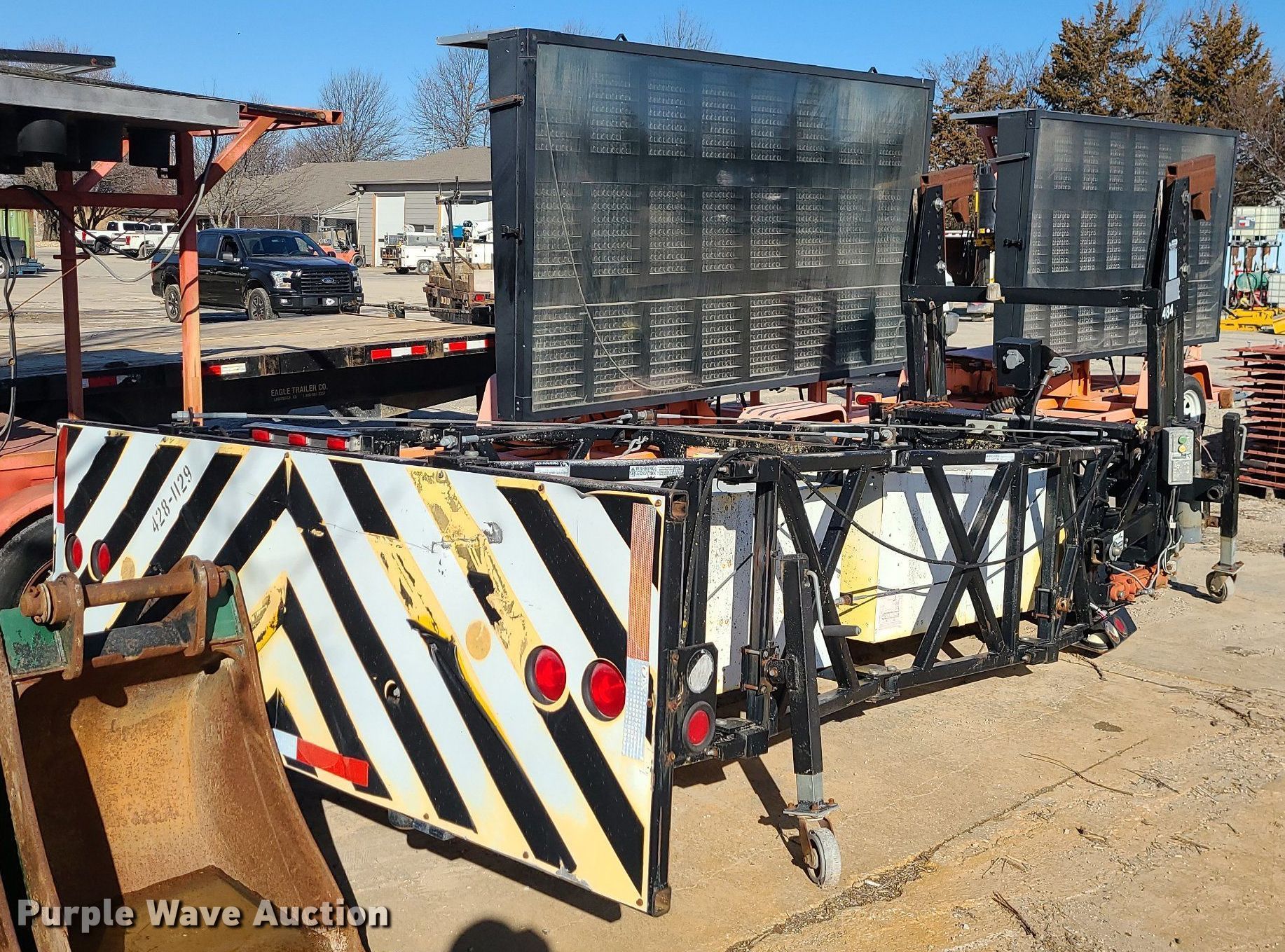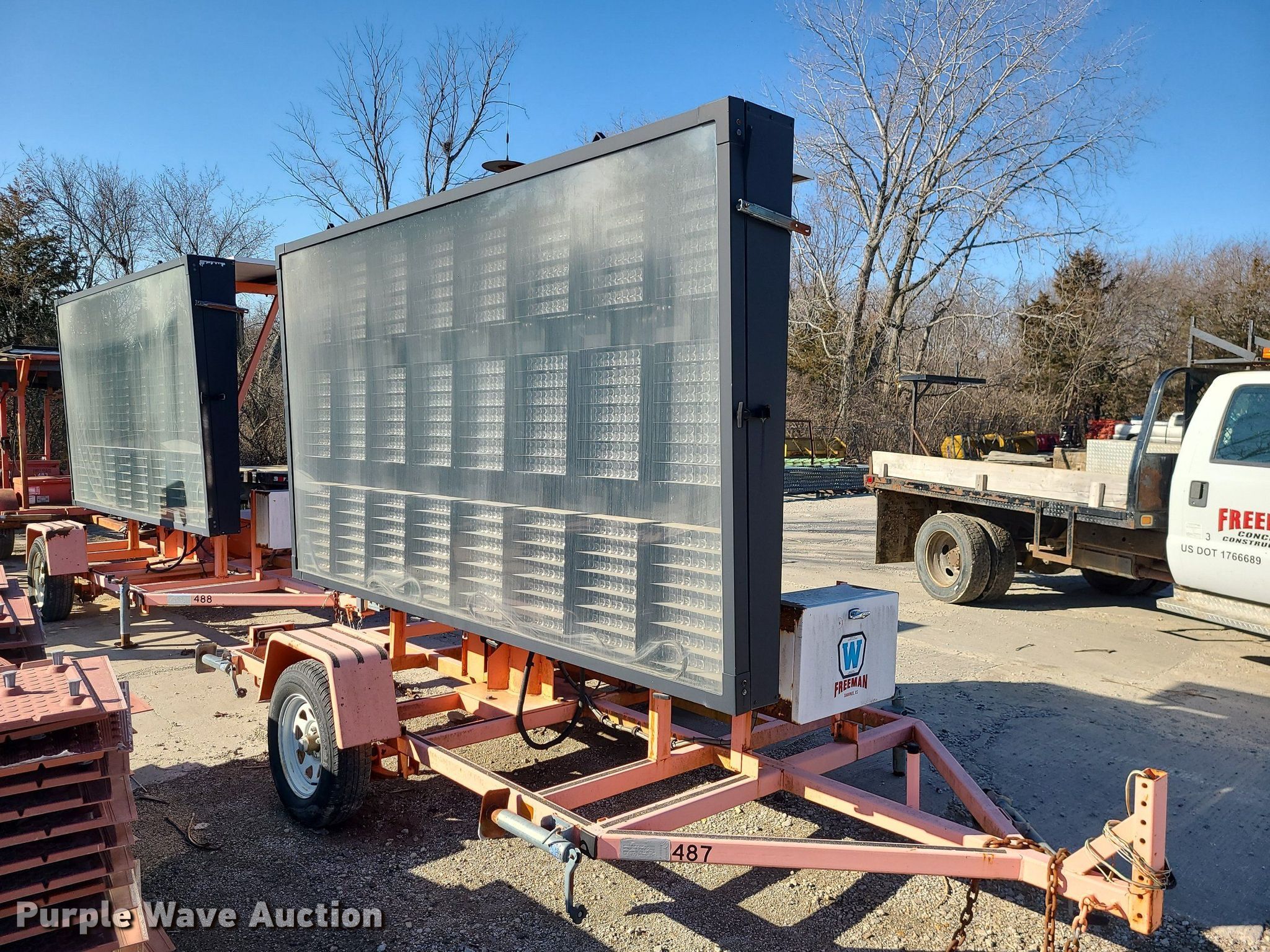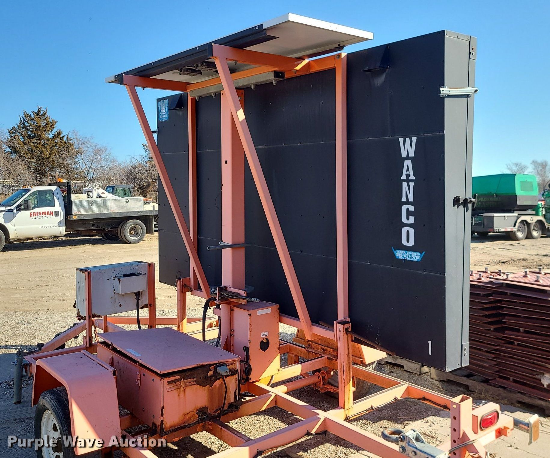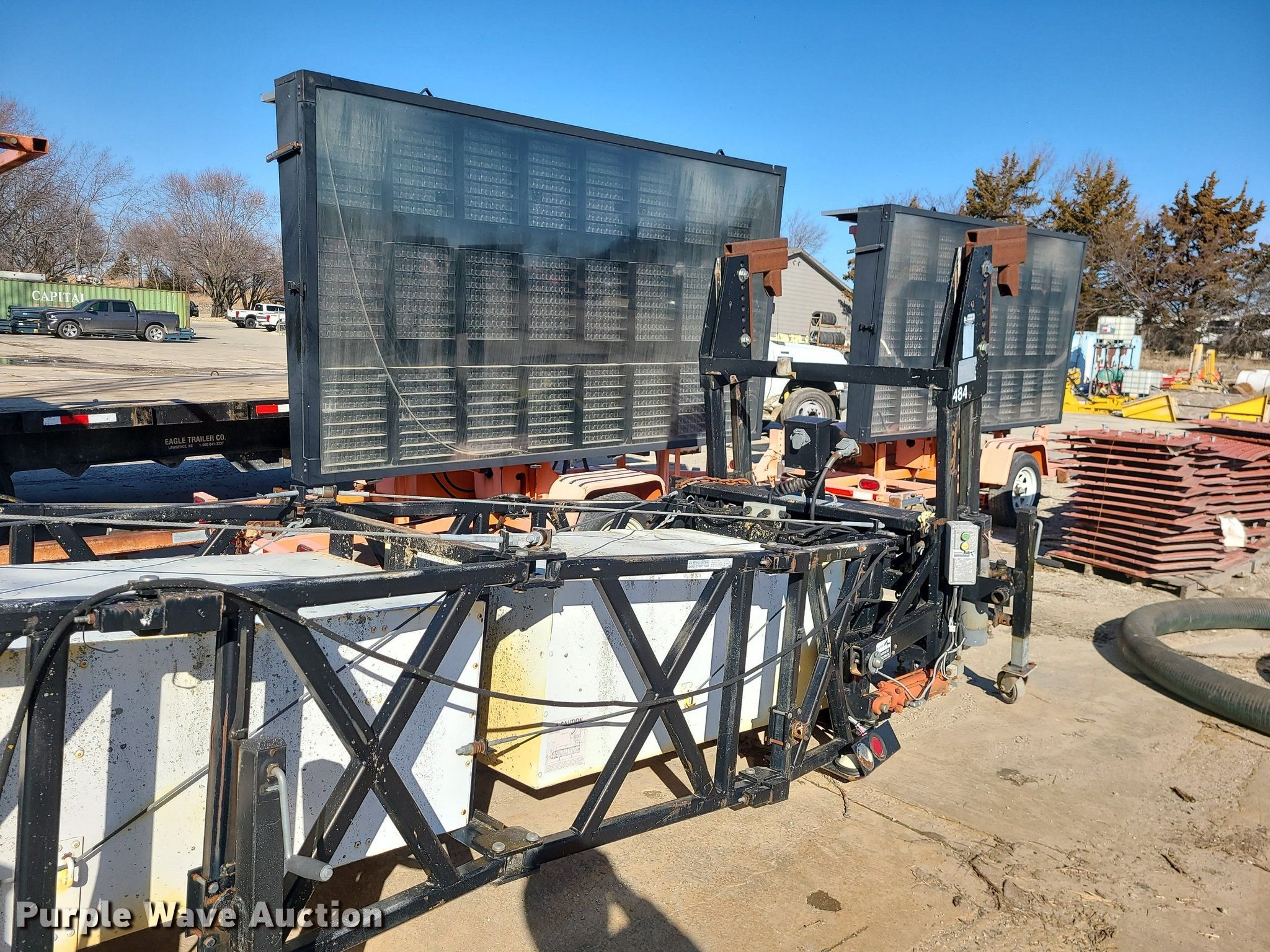 Purple Wave is selling a used Road Safety Equip. in Kansas. This item is a Road safety equipment with the following: (2) Wanco message board trailers, 15' x 8', (2) Ver-Mac 4825ST arrow board trailers, 10' x 68", Tailgate-mounted crash attenuator, 14' x 93"
