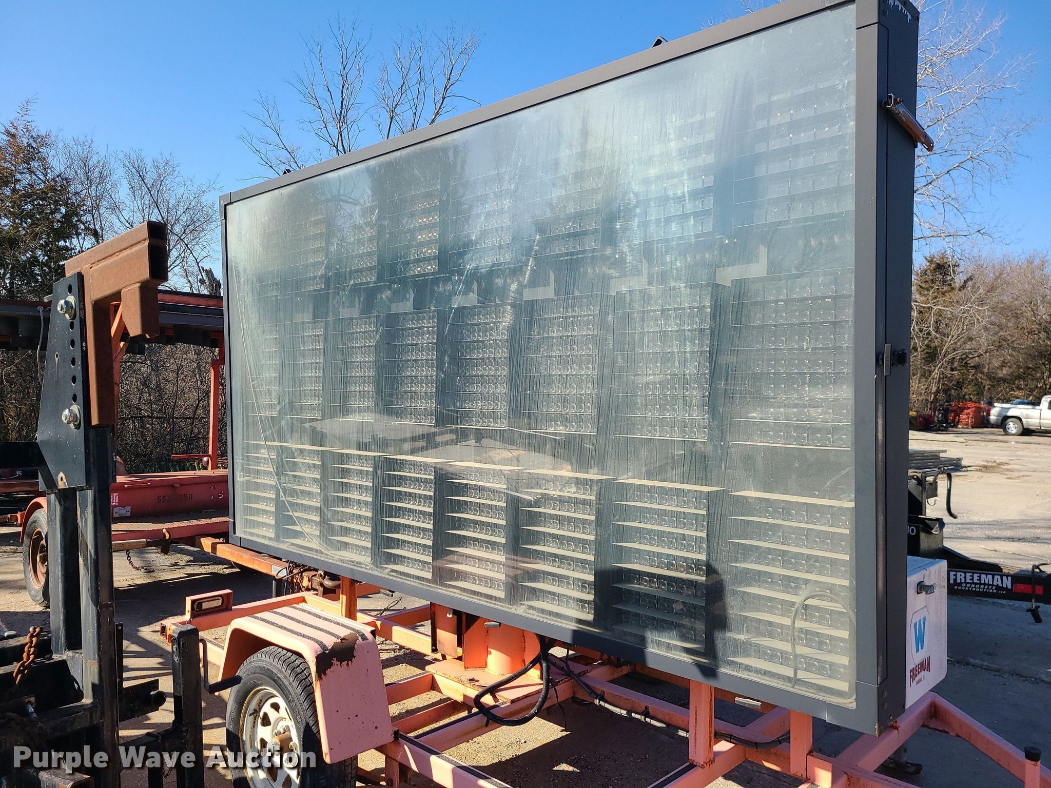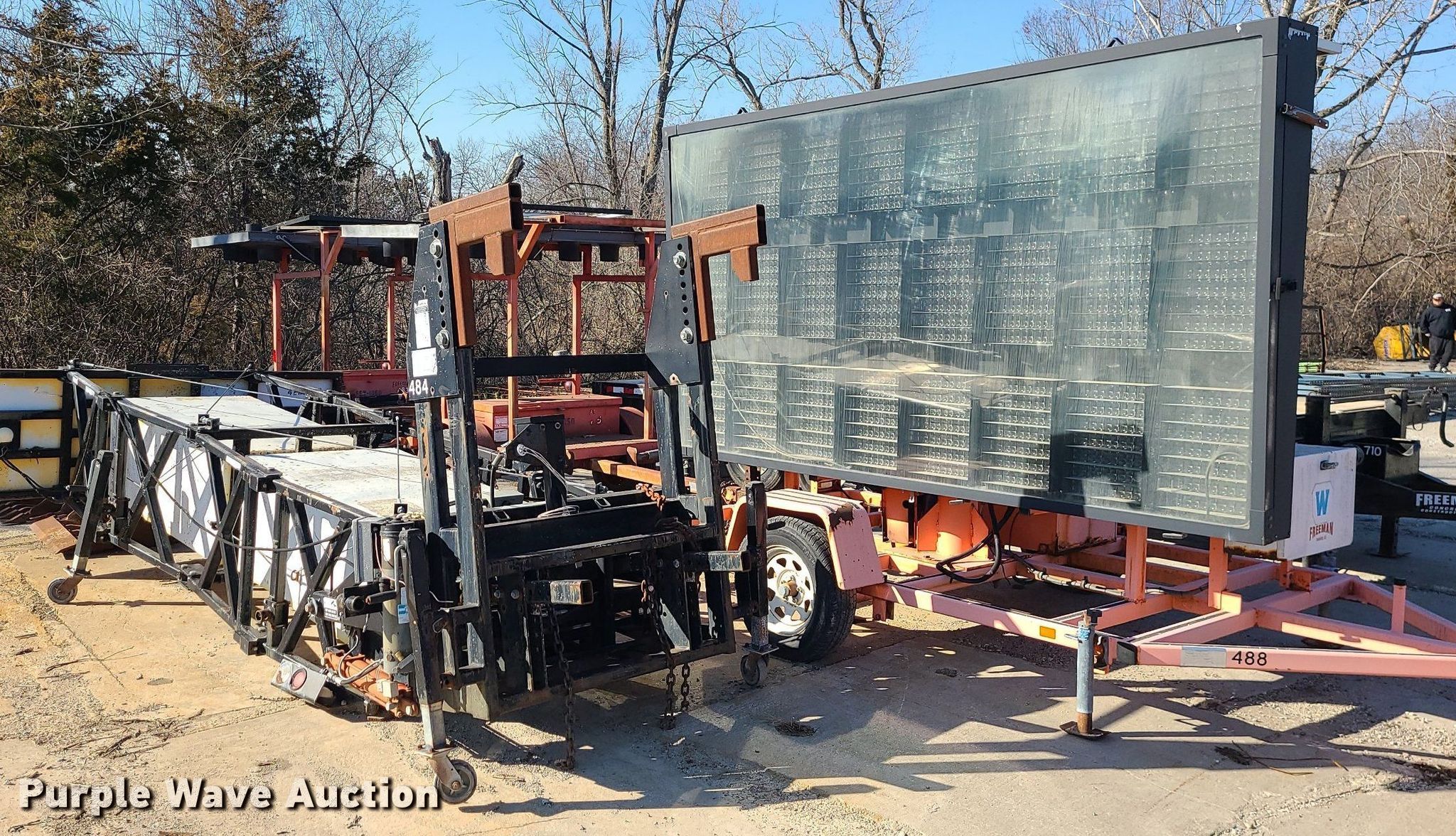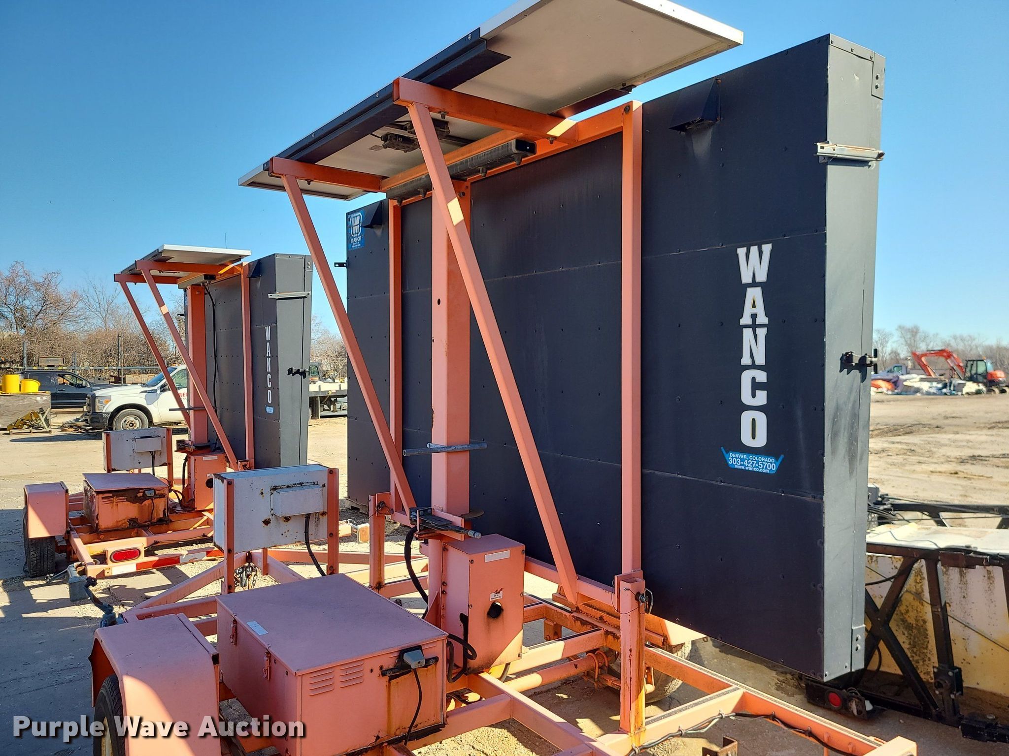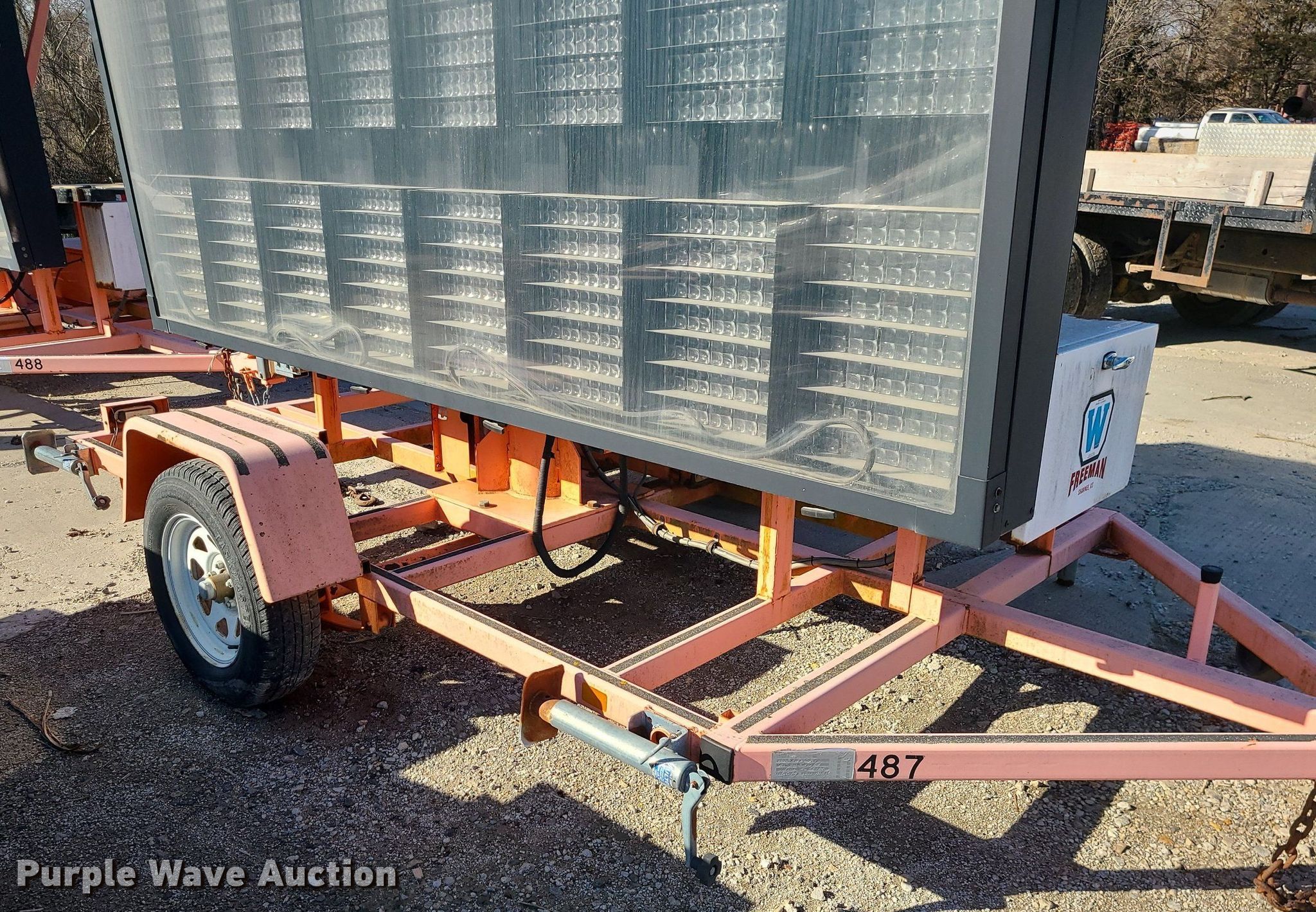 Purple Wave is selling a used Road Safety Equip. in Kansas. This item is a Road safety equipment with the following: (2) Wanco message board trailers, 15' x 8', (2) Ver-Mac 4825ST arrow board trailers, 10' x 68", Tailgate-mounted crash attenuator, 14' x 93"